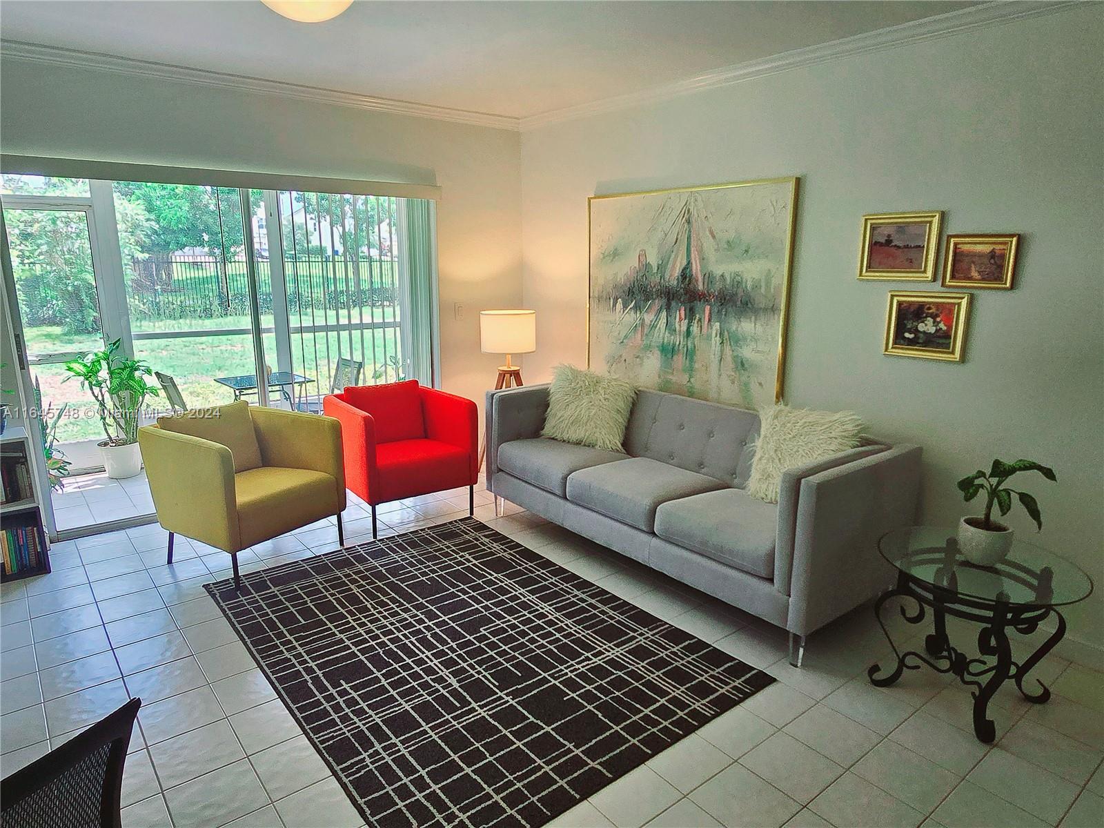 BEAUTIFUL, well cared for condo in HILLCREST COUNTRY CLUB APTS, Beautiful, clean, and FURNISHED! one bedroom, one bath, first floor unit. Located at the end of the culdesac. Very quiet and peaceful, 55+ communiy! Large screen-porch with access to the backyard. Beautiful peacfull views of the gardens and the new walking path in a gated area. No carpet and tile floor throughout; Spacious bedroom with ample closet space. Conveniently located near Publix, Target, the Hard Rock Casino, Downtown Hollywood, Young circle, shops and dining and Hollywood Beach & Boardwalk. The community offers you a gym, heated pool, grill area, tennis, pickle ball, shuffleboard and more. Looking for FURNISHED? Here it is! Fantastic move in Opportunity! Low monthly fee.
