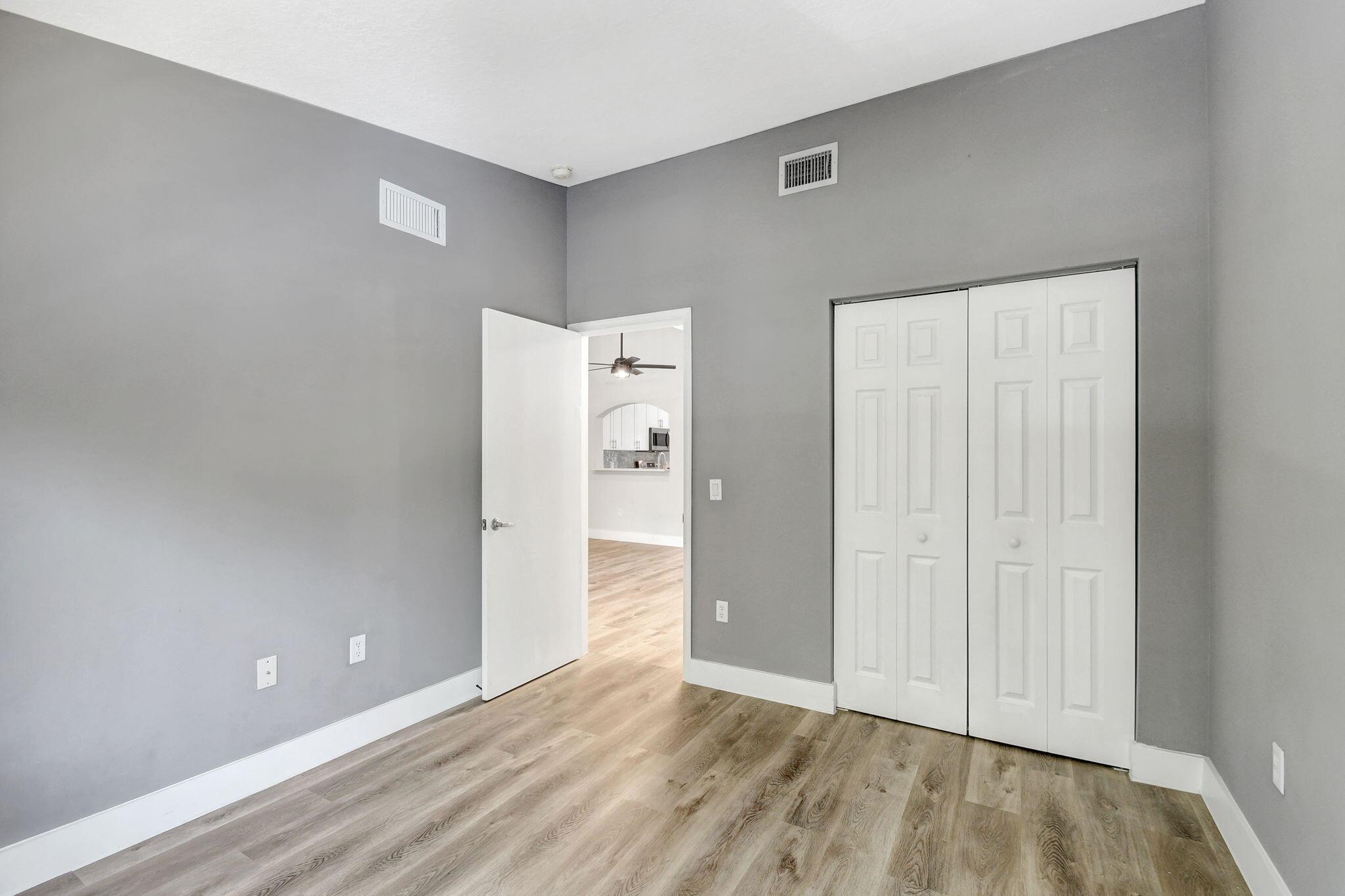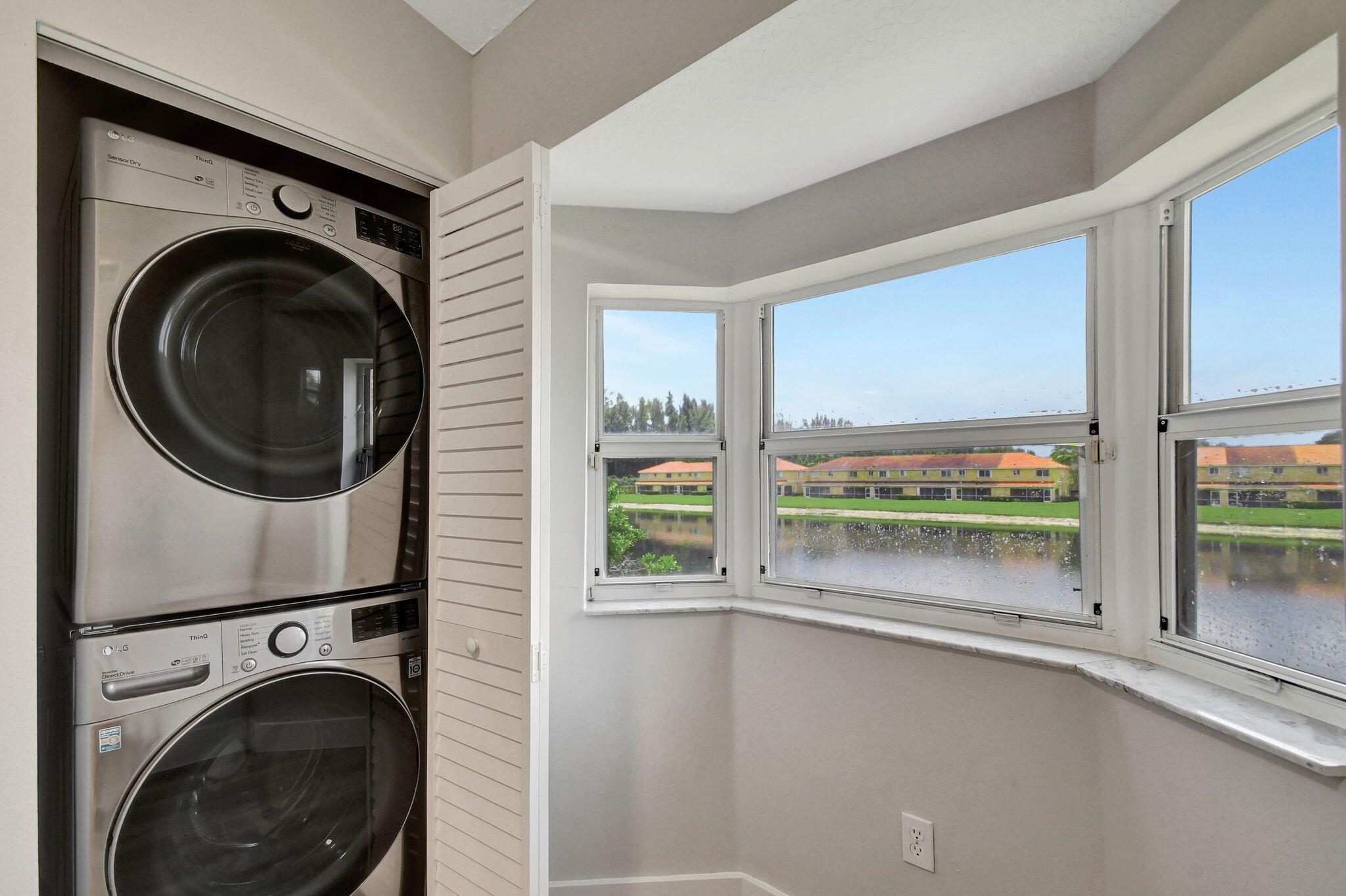 This beautiful 2/2 second-floor unit offers amazing water views, high ceilings and is light and bright. Kitchen has been recently updated with white cabinets, stainless steel appliances and full-size washer/dryer. Gated and pet friendly community with 1 assigned parking spot right outside your door and plenty of quest parking. New roof, A/C 2019, water heater 2023. Condo fee includes water. Rent after one year!