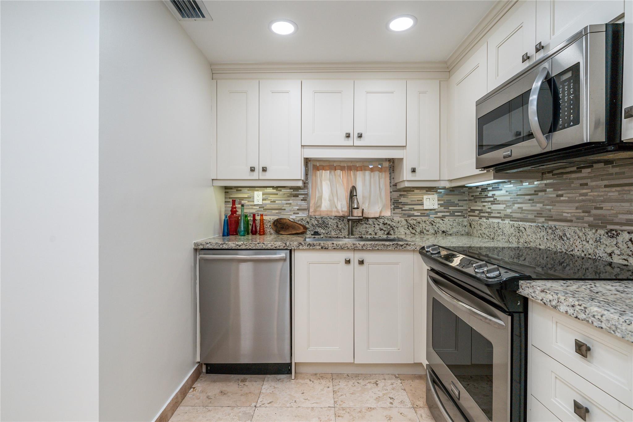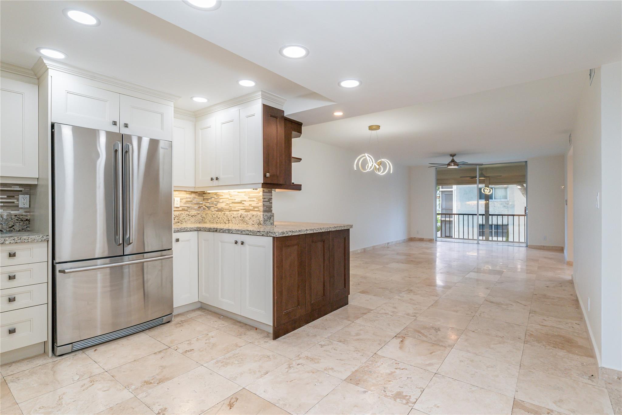 COMPLETELY RENOVATED! LIKE NEW! BRIGHT 2ND FLOOR CORNER, FULL 2BR & 2 BEAUTIFULLY UPDATED BATHS. IMPACT GLASS WINDOWS & FRONT DOOR! SPECTACULAR OPEN KITCHEN features high ceilings, new bright LED lighting, Stainless Steel Appliances, Granite Countertops, designer backsplash, EXTRA LGE added countertop. NEW WASHER/DRYER! Recreation Lease PAID IN FULL! Durable TRAVERTINE flooring throughout! PAR 3 Green view. FREE golf (except cart fees) on two 18 hole courses (PGA & Par3); Amenities include Restaurant, Billiard Room, BBQ-Picnic Area, Clubhouse, Courtesy Bus, Exercise Room, Heated Pool, Library, Putting Green, Sauna, Shuffleboard, Tennis, Pickle Ball, Vehicle Wash Area, Electric Car Charging Station. Close to shopping, dining & 15 MIN TO BEACH. Association says 55+ age required; SPECIAL!