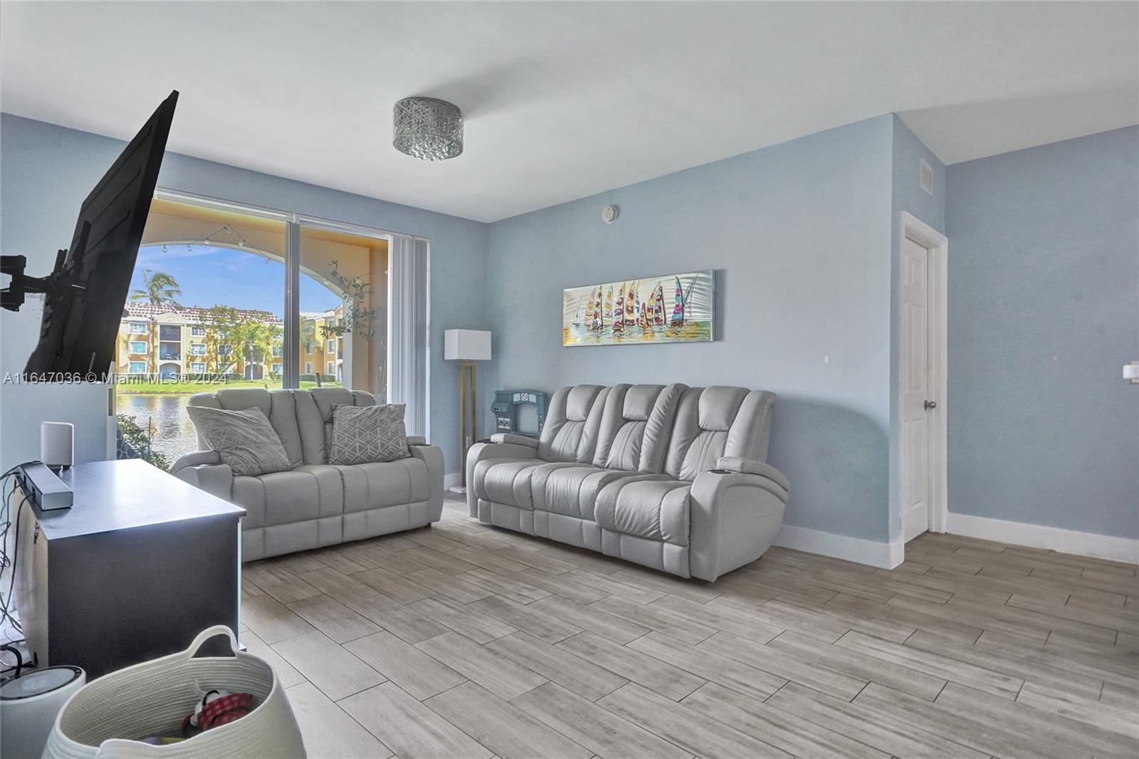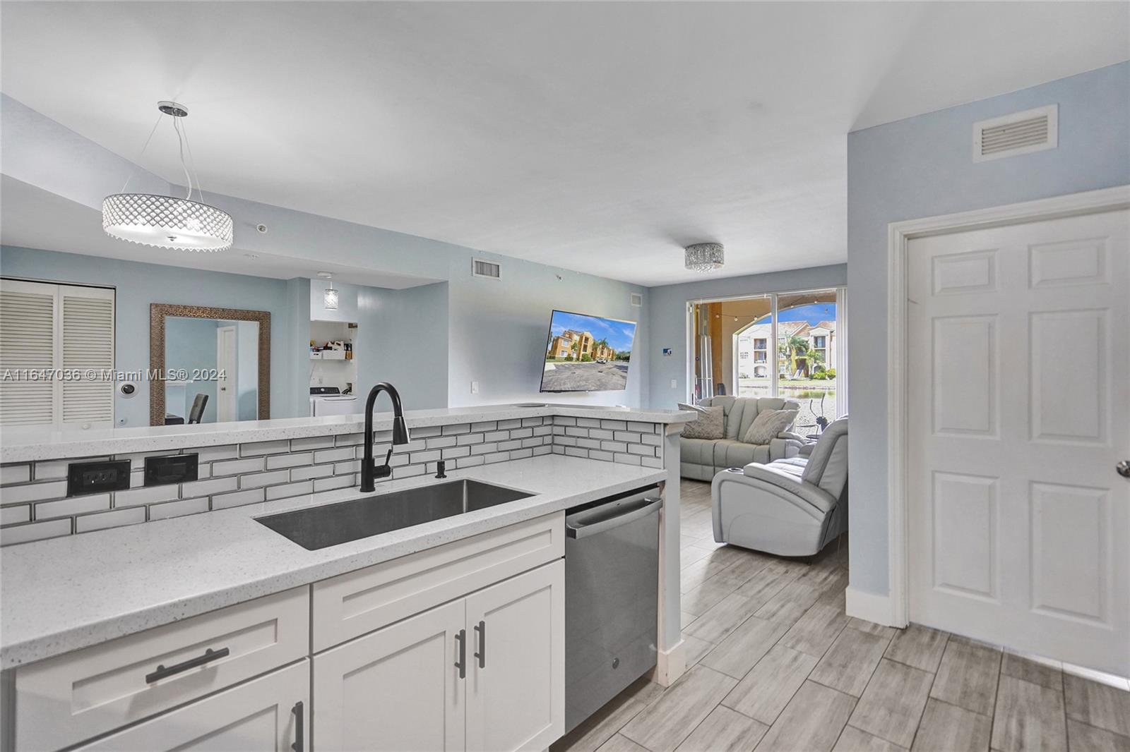 Welcome to your private oasis by the water! Nestled near Miramar Town Center and Ansin Park, this spectacular 2 bedroom, 2 bathroom residence presents a harmonious blend of location, comfort, and convenience. Crafted to exceed your expectations, this beautifully updated kitchen boasts stainless steel appliances, sleek counter space and privacy to prepare for entertaining guests. The light, airy bedroom, dining + living room have views to the water to help you unwind. With an array of amenities - sparkling pool, children's area, tennis, clubroom, and landscaped grounds, you'll be ready to make your decision! Water heater 2020; AC Air Ducts with Air Purification 2021; Kitchen Upgraded April 2024. 2 week approval is feasible, FHA and VA sales in past. It's our pleasure to WELCOME YOU HOME!