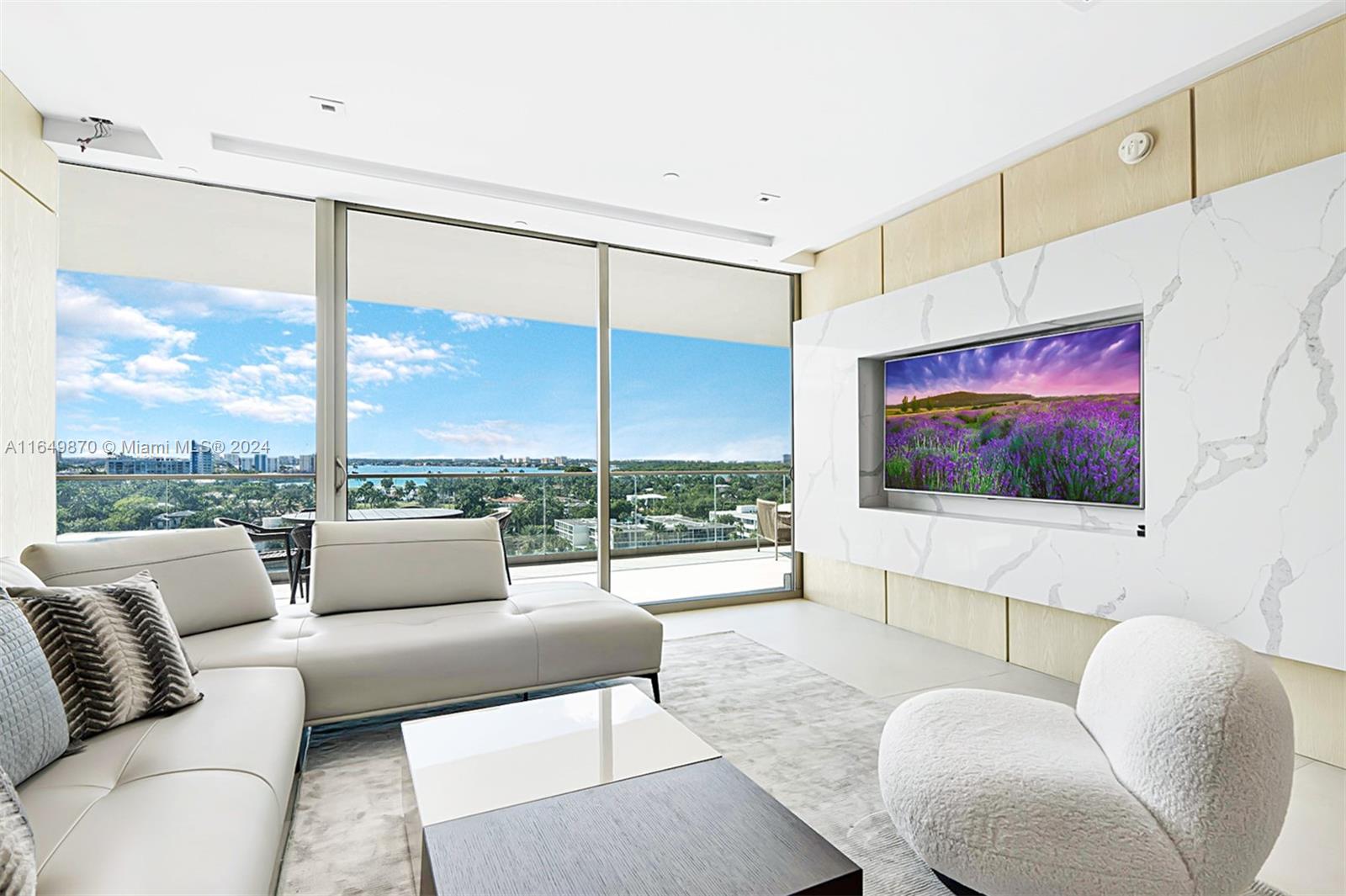 Move right in & enjoy this beautifully hi-end apt designed w/ luxurious architectural details & built ins. Upon arrival, enter a private elevator to the exclusive foyer entrance of this one-of-a-kind unit, offering spectacular sunsets & stunning city & bay views from every room, w/ its expansive 465 SF terrace. Featuring a gourmet kitchen w/ ultra-luxe cabinetry & Gaggenau appliances incl. a fully automated coffee machine. The elegant limestone flrs throughout the unit will lead you to the bedrooms w/ unique custom-built-in design features, the closets - with “showcase” lighting, & to the Master Bath w/ spa-like features. A state-of-the-art built-in Smart TV & home automation system proves that no expense was spared to set this unit apart. Unit includes 3 parking spots(2 self park+1 Valet)
