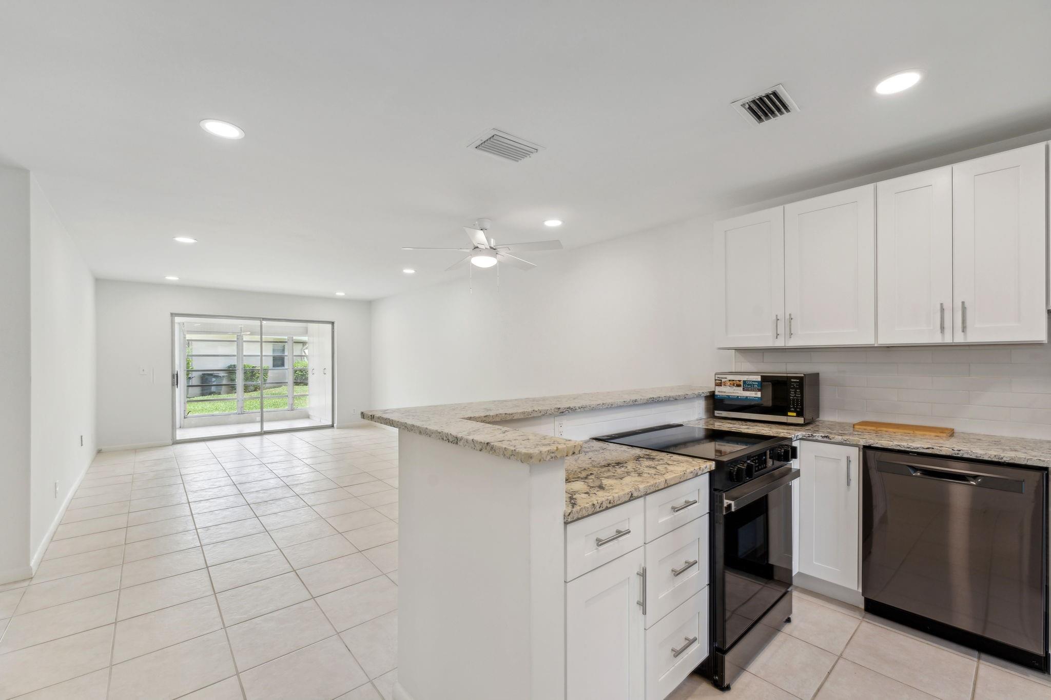 Discover your dream home in this beautifully renovated 55+ villa corner unit. This oversized, turn-key home features 2 spacious bedrooms, 2 full baths, and an open-concept kitchen. Enjoy a brand-new chef's kitchen featuring granite countertops, all new appliances, and an open concept that’s light, bright, and open to the rest of the home. With a washer and dryer conveniently in-unit, modern living is a breeze. Plus, no popcorn ceilings! This villa combines comfort and style, offering a serene retreat within a gated community. With a newer roof and an attentive association, this turn-key villa is perfect for someone looking for low maintenance living. Don’t miss out on this exceptional opportunity in the heart of Boca Raton—schedule your tour today!