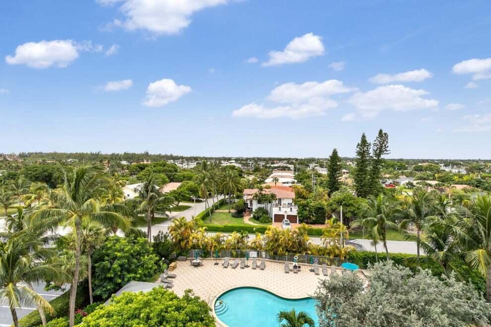 Enjoy Resort style living in this spacious 1712 sq ft Penthouse on A1A in Boca Raton. This Tastefully semi renovated 3 Bedroom, 2,5 Bath apartment overlooks the pool and city. For Ideal entertaining and expansive picturesque sunset views, the 3rd bedroom was converted to a Den. Thus, easily converted back for new owners' preferences. The PATRICIAN, a hidden Jem, underwent a 40 yr Certification and concrete restoration. It offers a heated pool, fitness center, upgraded lobby, concierge, on-site management, A/C, bike storage, barbecue area, and storage lockers. Hotwire cable, Water, & internet part of HOA. Conveniently located within walking steps to the Ocean, the Deerfield Pier, Restaurants, Shops and airport. Buy now, A condo in Paradise!