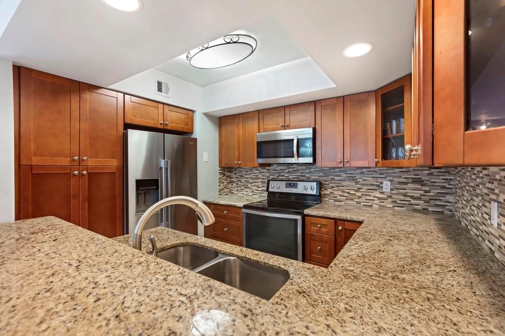 PENTHOUSE - A dream retreat. Nestled in this rustic environment of S Falls of Inverrary. This split level condo features 3-bed, 2.5 bath. The modern open kitchen boasts upgraded granite countertops, stainless steel appliances, wood cabinetry and 2 bar seating spots. Formal dining room and spacious living room leading to open fourth-floor balcony. Ceramic tile in common areas & wood in bedrooms. Spacious primary bedroom upstairs with ensuite bathroom and balcony. Large 2nd bedroom upstairs & attached bathroom with tub. The third bedroom on first floor includes French doors, offering versatility as a bedroom, office, or media room. Covered garage space next to storage conveniently located underneath building. "Falls of Inverrary" is a secure, gated community with 24/7 gate security