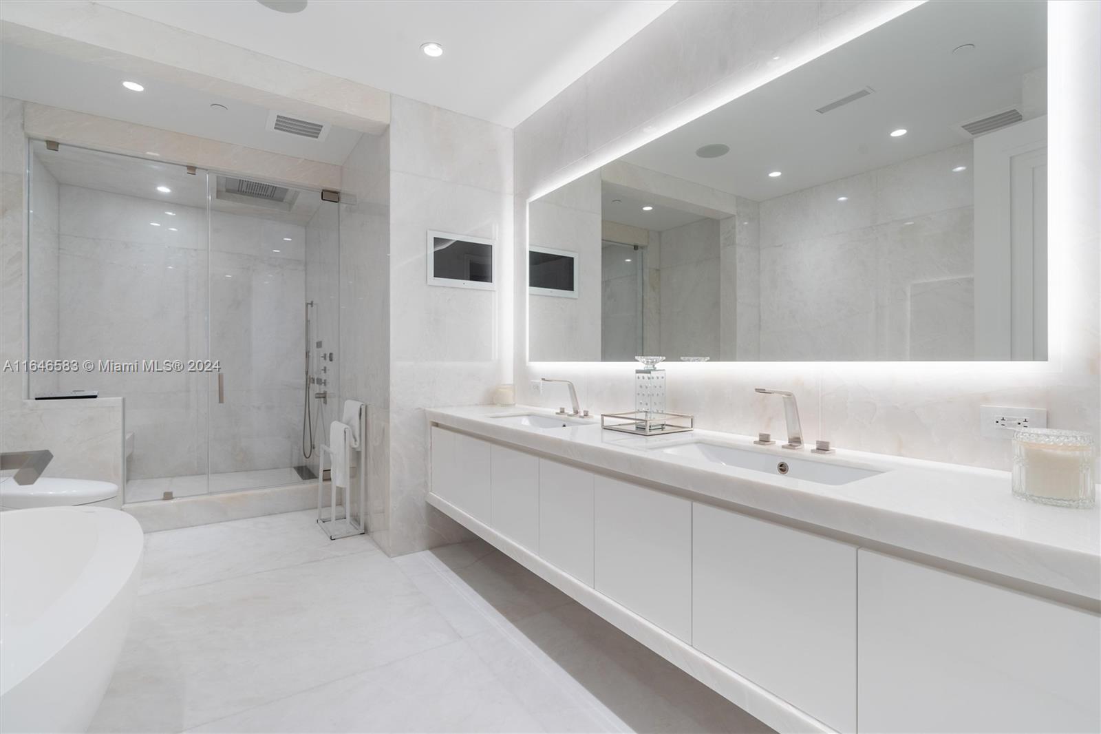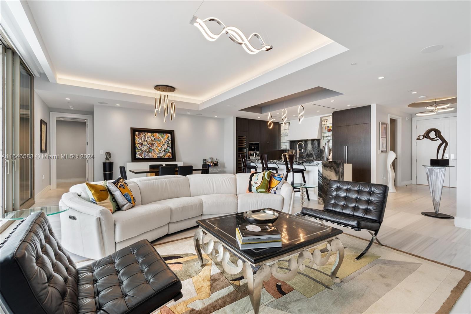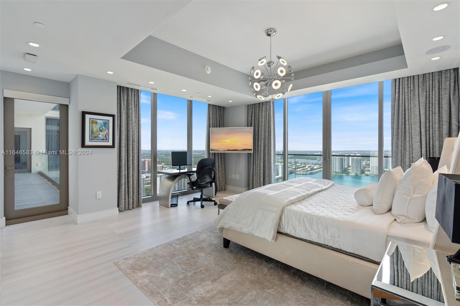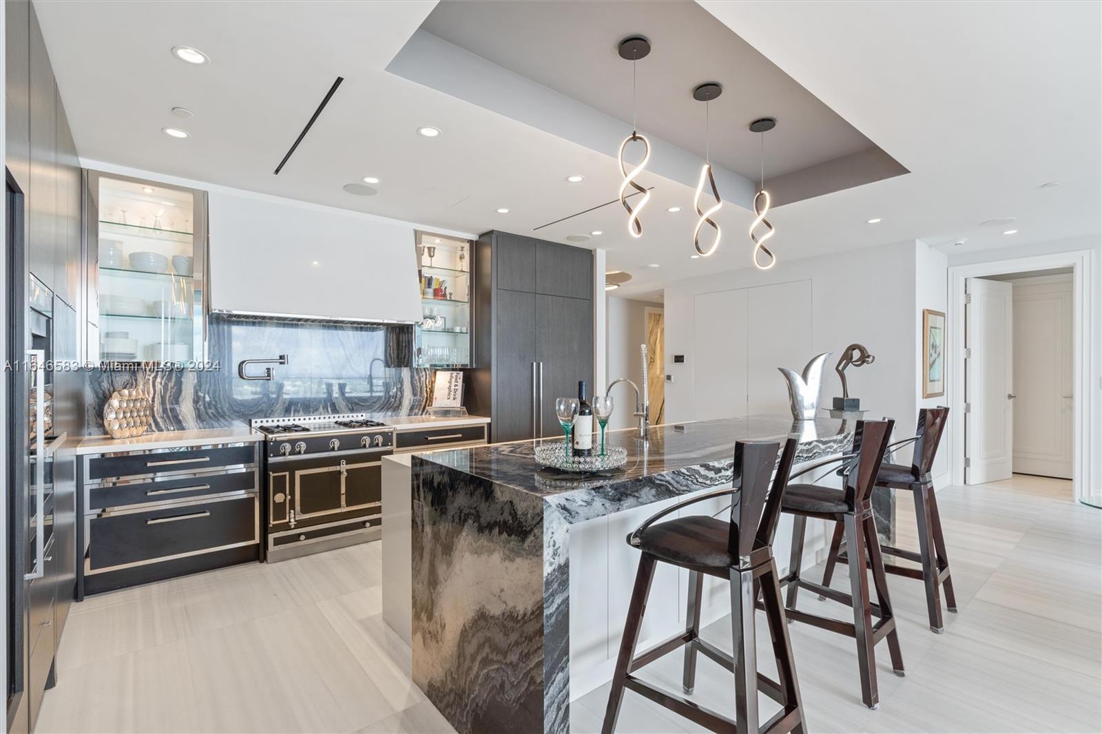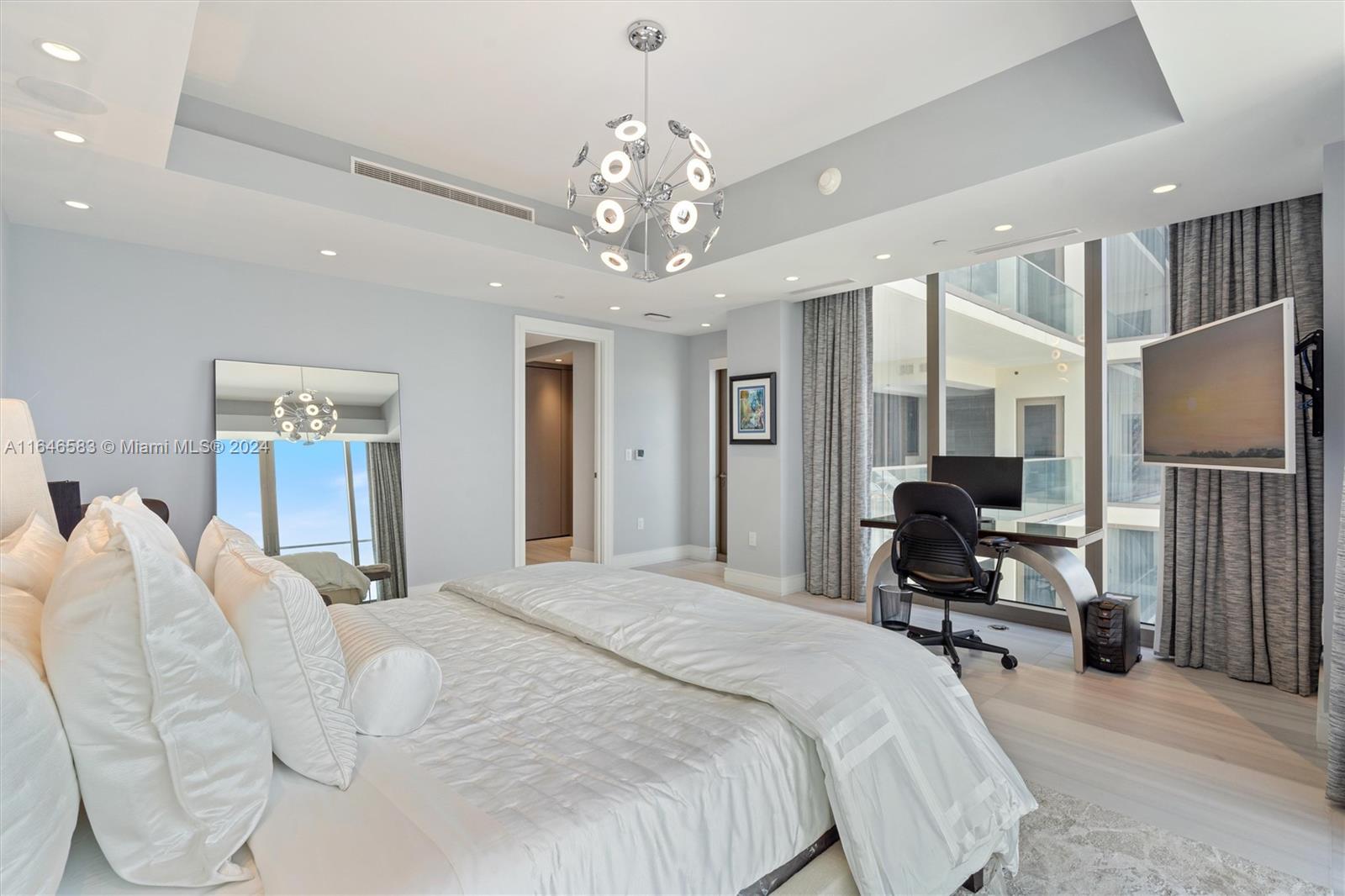 Stunning ultra-luxury modern residence at the Estates at Acqualina. 3 spacious bedrooms + den & 4.5 baths, 2,616 sq feet, high-end finishes & marble floors. State-of-the-art automation system: manages AV equipment, lighing, window shades, climate control & cameras. Master Suite w/sitting area, Italian built out closets,Miele beverage bar & sink; bathroom has dual sinks, large walk-in shower. Chef’s kitchen w/La Cornue gas range, wine refrigerator, marble backsplash & quartz countertops. Large terrace w/summer kitchen, jacuzzi, spectacular intracoastal & sunset views. 2 valet parking spaces. World-class amenities:5 restaurants, daily complimentary breakfast, Rolls Royce house car, 3 pools, fitness center, spa, cinema, golf simulators, bowling, soccer, basketball, skating rink, 2 dog parks.