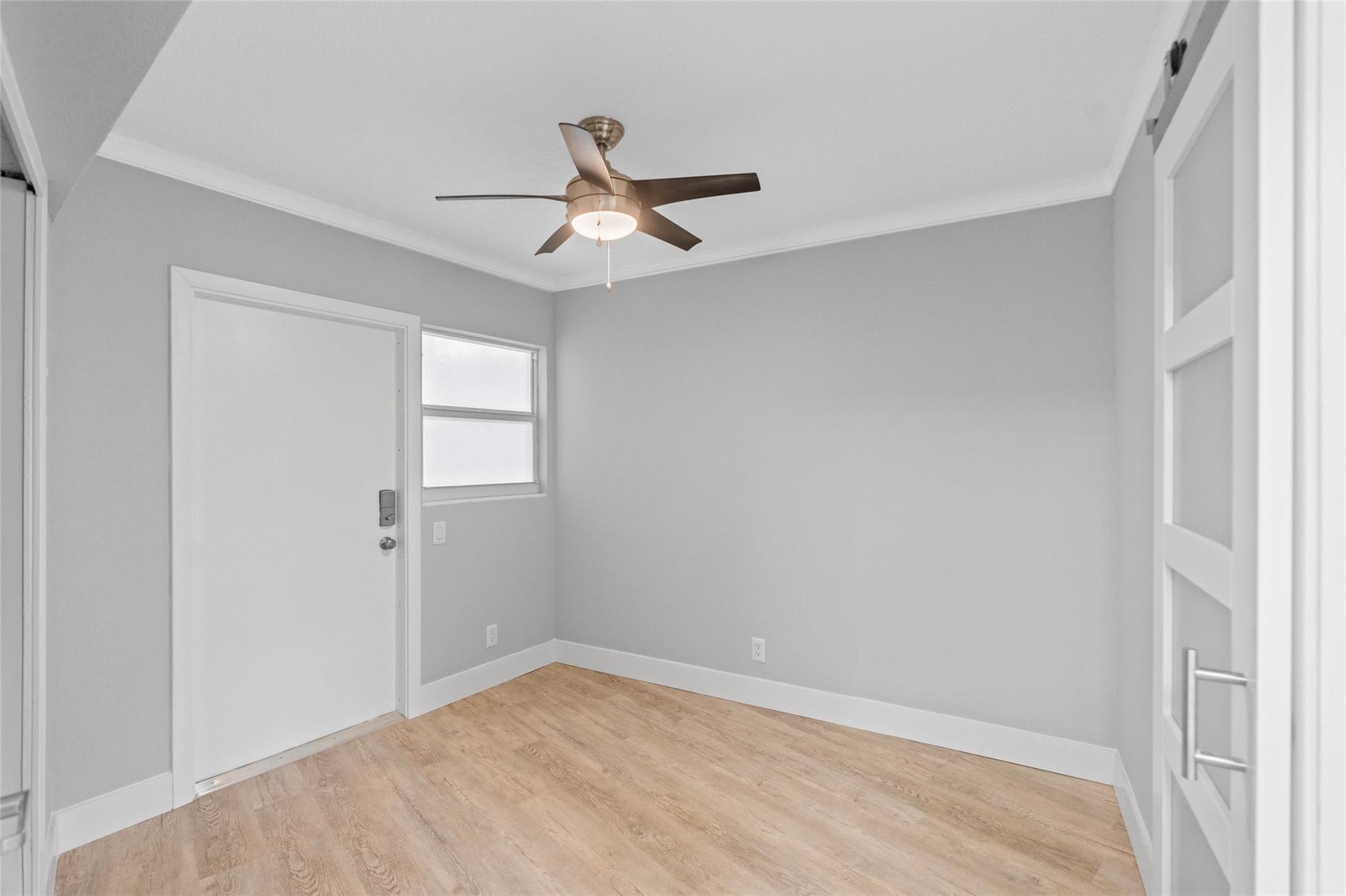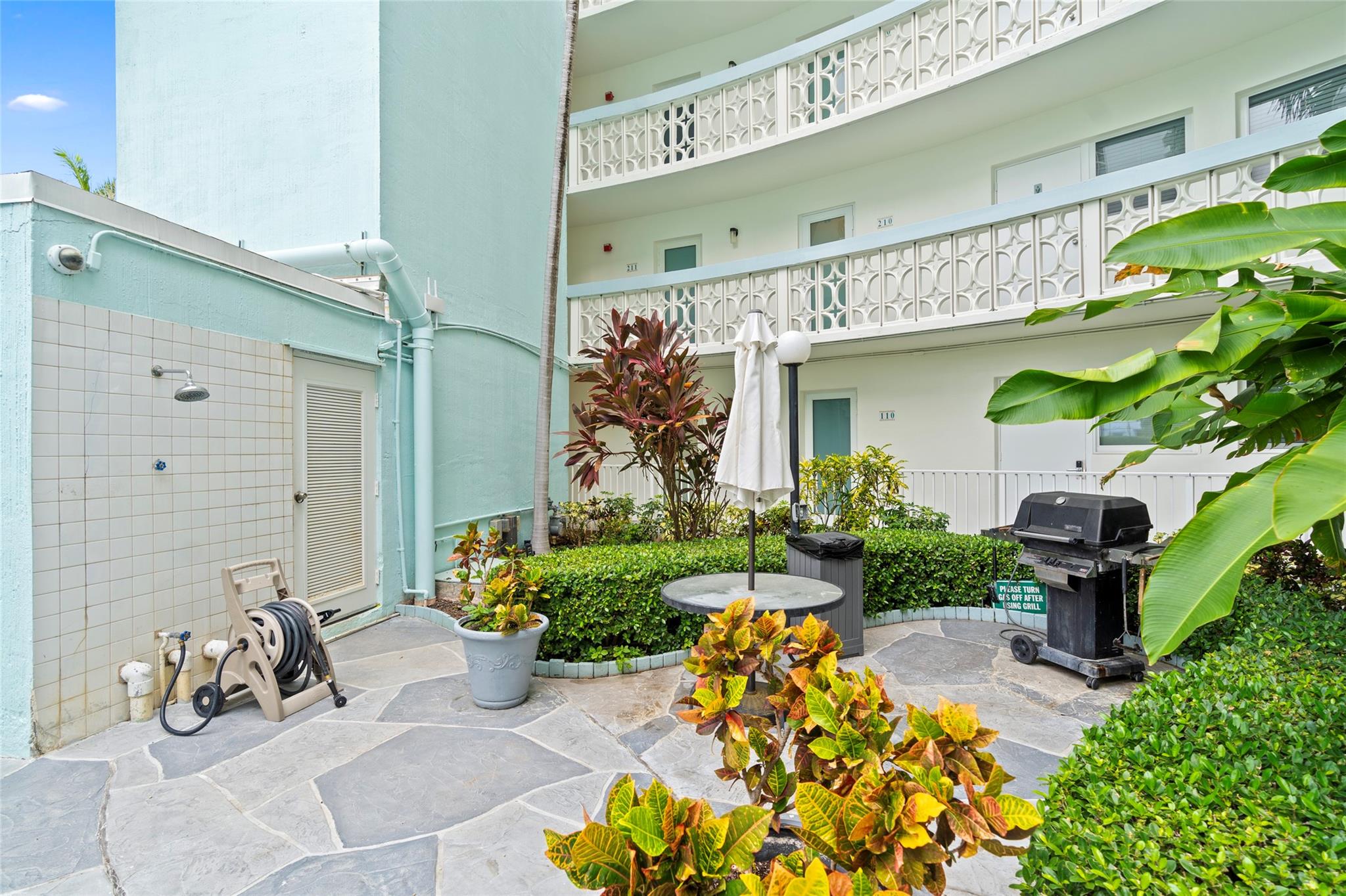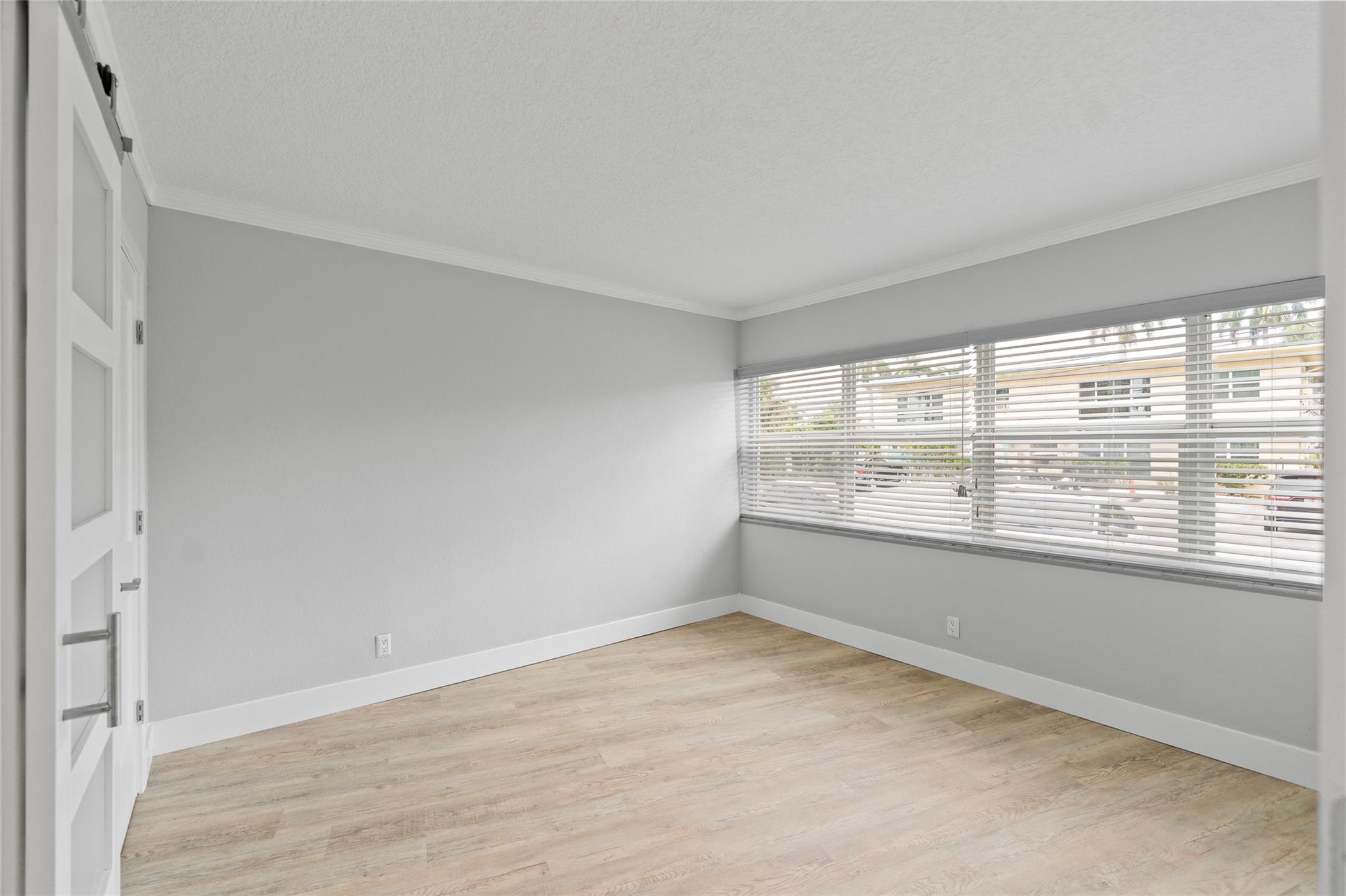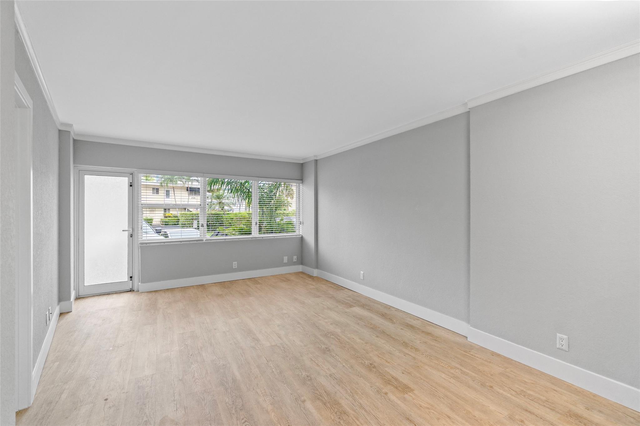 The perfect Garden Oasis! 2 blocks Ft Lauderdale beach & 1/8 mile to dining/shopping. Completely renovated/not lived in- everything is new! Love the simplicity of main level living with a dedicated parking space just outside the back door. Relax in the peaceful beachy vibe that has been crafted. The floorplan is an open concept between the living, dining & kitchen. Luxury vinyl plank flooring throughout w/soft close white shaker cabinets. The bathroom has a walk-in tiled shower & stylish frosted glass barn doors to allow for natural light but still allows privacy. Primary bedroom w/walk-in closet. The back bedroom makes a perfect office. White wood blinds on all windows. New appliances & AC. Kitchen is steps from the BBQ & pool area. Hurrican windows/doors. This home will not disappoint!