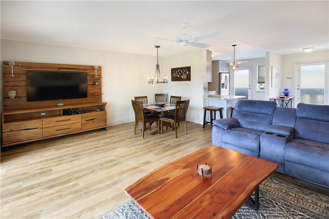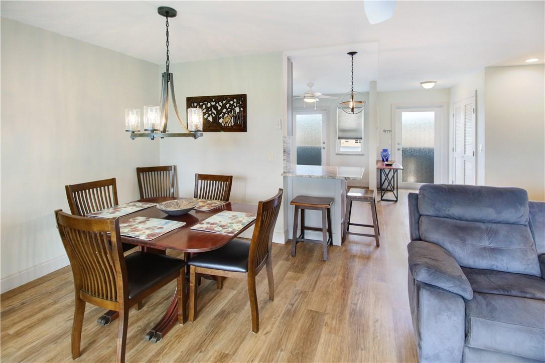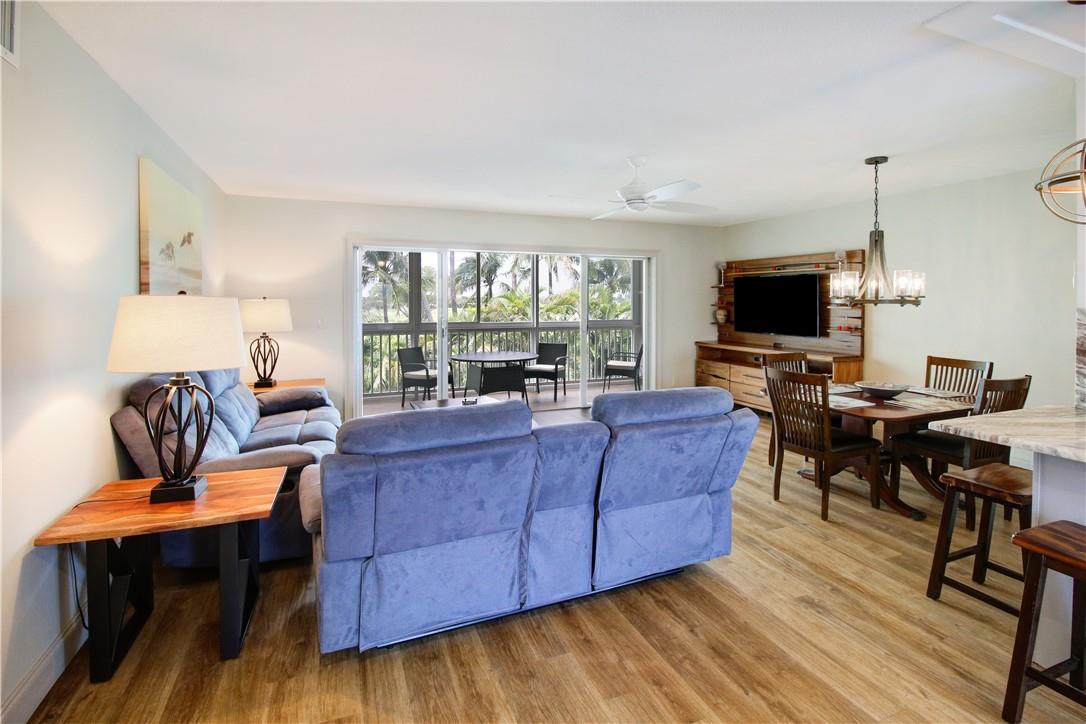 Stunning & spacious corner condo residence on the perimeter of the Shell Bay Golf Resort, a private golf membership! Tropical lifestyle awaits as you enter your foyer into an open floor plan. Impact windows & doors throughout. Luxury vinyl matching flooring in each room. You are immediately drawn to the screened terrace for the spectacular view. Imagine yourself enjoying sunrise/sunset beverages all the while smelling the salt air. TURNKEY furnished light & bright. in kitchen has high-end stainless-steel appliances. Pack your bags, put the key in the door. Boasts plenty of closets with a huge pantry. Covered parking. One owner must be 55. No pets. Work completed with permits. 50 year certification approved.