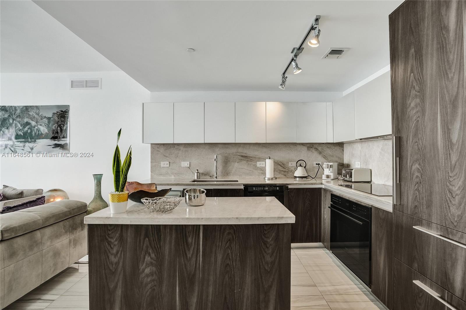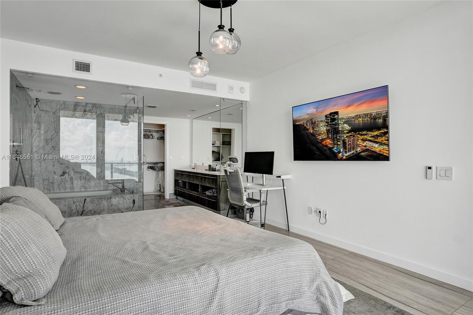 Incredible views on the water. Convenient and smart floorplan with 2 gigantic balconies. Private elevator. Open kitchen. Spacious living-room. Large balcony with water views and dining table and lounge area. Large Master Bedroom. Luminous Master Bathroom. 2 separate sinks. Large equipped Master Closet. Convenient Den next to 2 other bedrooms with their own bathrooms. Half-bathroom for visitors and private foyer. Luxury furniture negotiable. One Paraiso is centrally located with quick access to Wynwood, Design District, Airport, Miami Beach, Downtown and Brickell. All luxury amenities. Ground level adult pool, 2 pools, hot pools, cabanas, 2 tennis courts and BBQ area. Gym, spa, massage rooms, party room, business center, billiard room, screening room, child play room