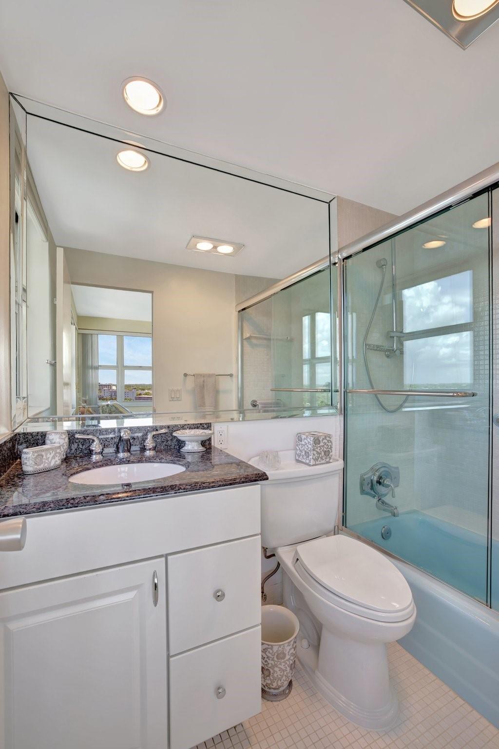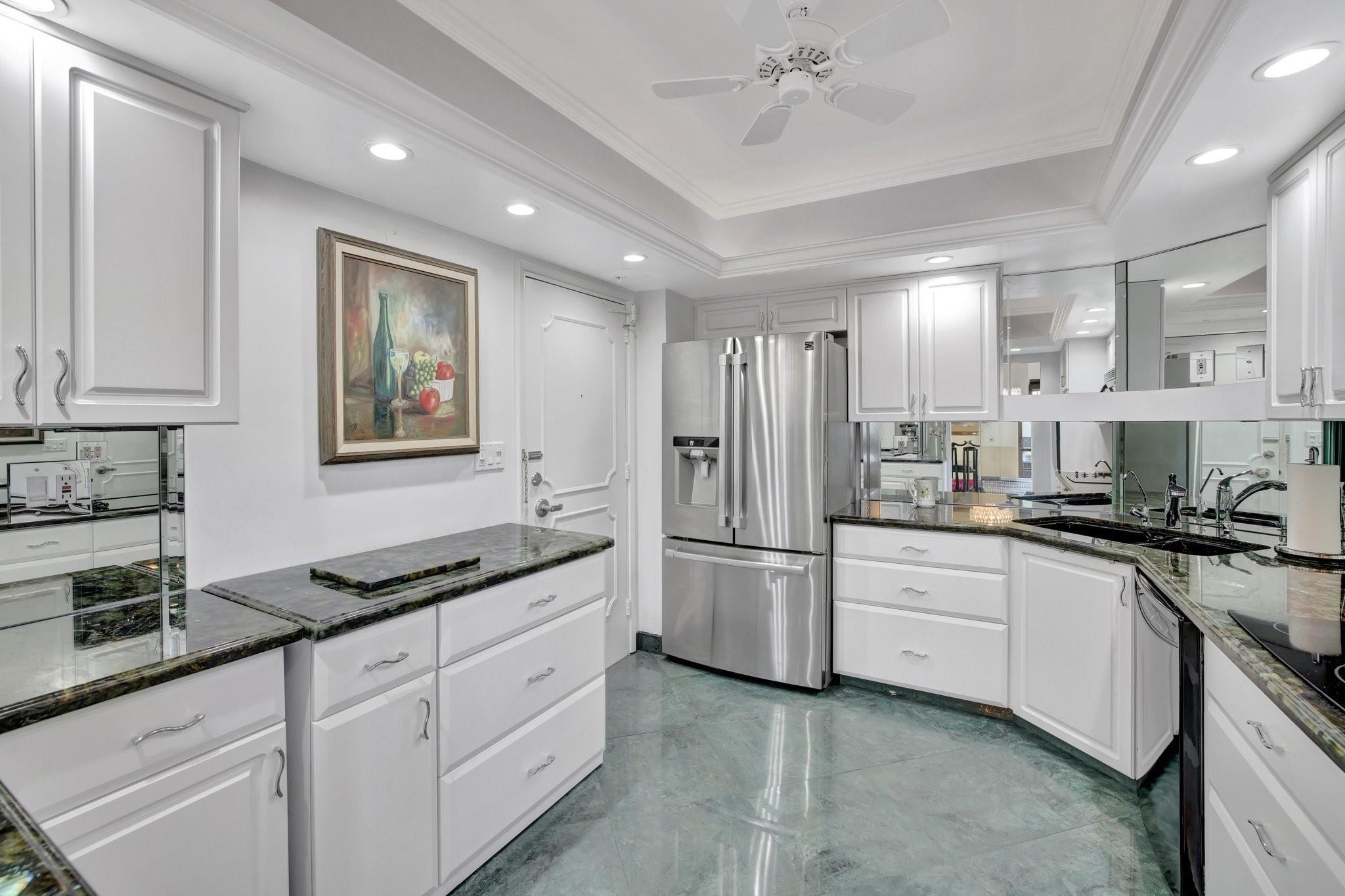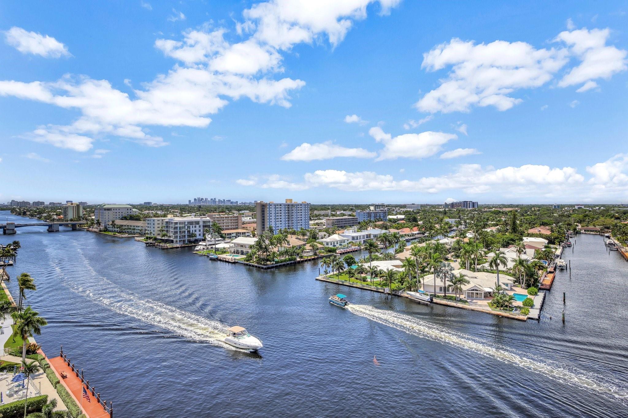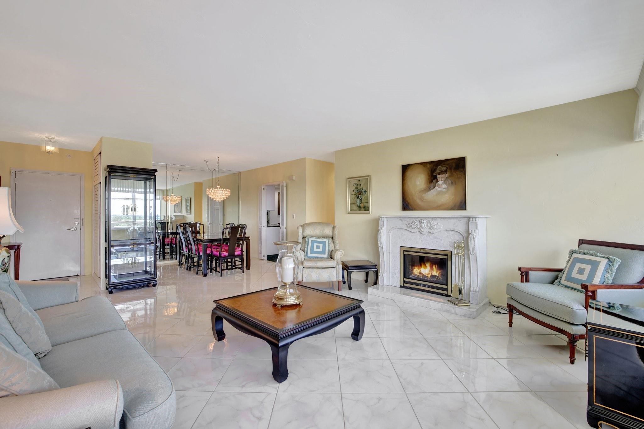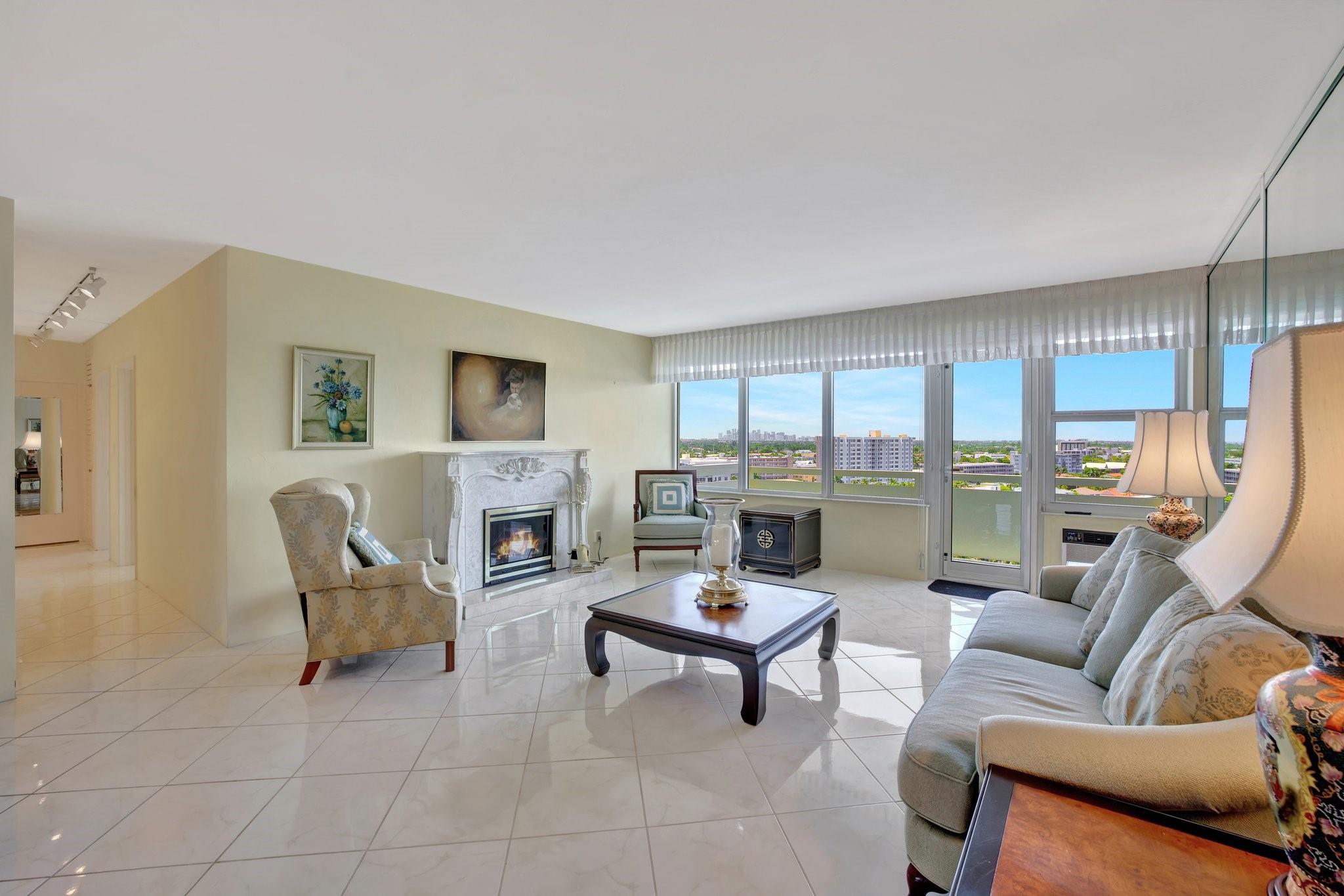 "Top of the Park" location with every window showcasing infinity water views. THE MOST DESIRABLE STACK WITH DIRECT INTRACOASTAL VIEWS. Watch the boats go by from this 3 bedroom corner residence. Verde butterfly granite kitchen. Waterford Crystal Chandelier dining room. Electric fireplace in living room. Large ceramic tile floors thoroughout. Master bedroom with ensuite bath. Walk-in closets. Building completed their 40 year certification. Full amenity building with a beautiful lobby, security guards 24/7, heated pool directly on the Intracoastal, fitness center, social activities, card and game rooms. Surrounded by restaurants, retail, golf, boating, entertainment venues. 55+ community. Loans allowed with 50% down. No rentals.