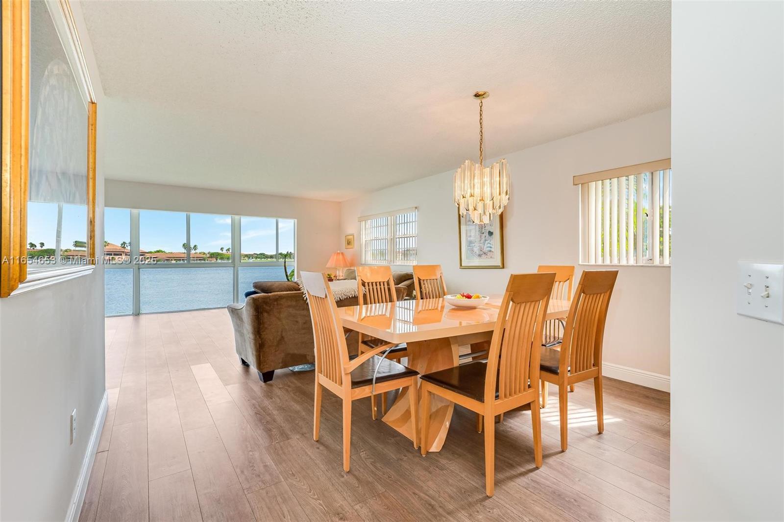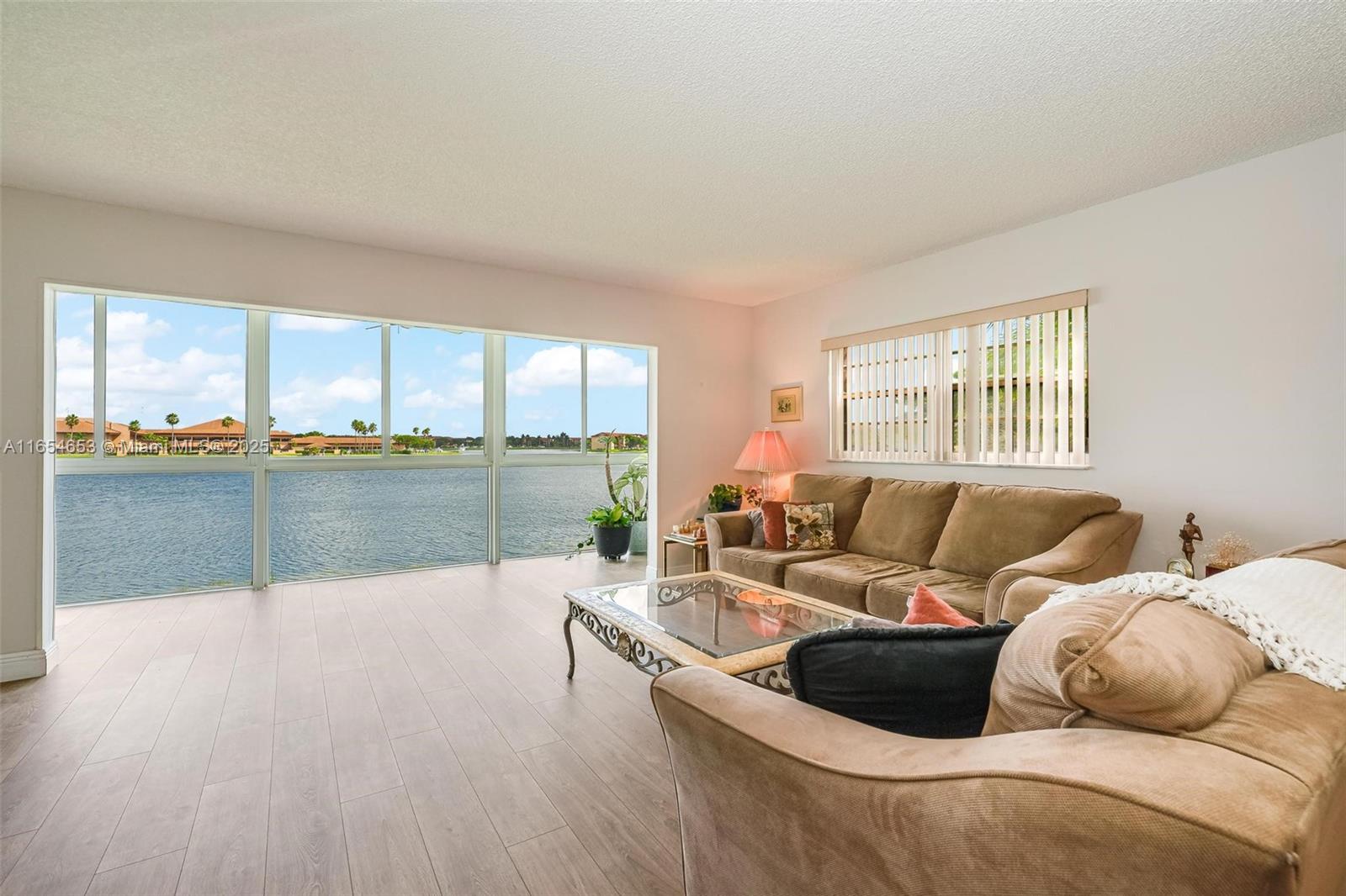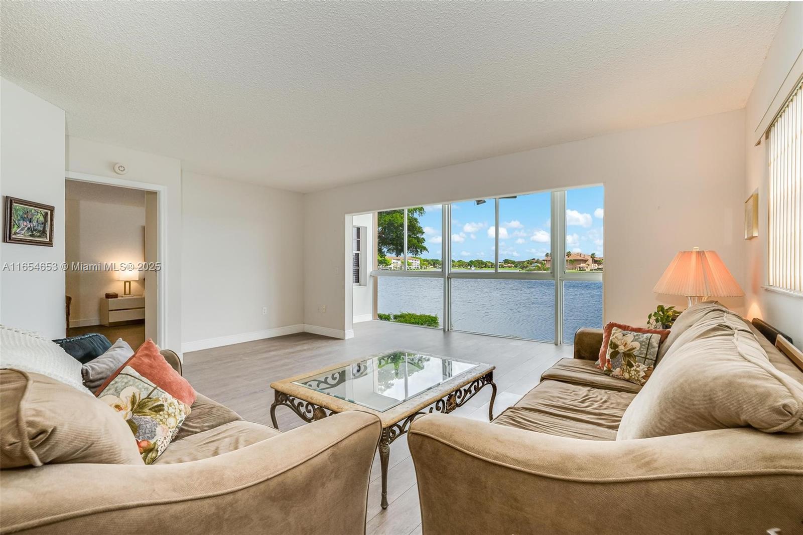 MOST EXCEPTIONAL WATER VIEWS (CORNER UNIT) Beautifully renovated converted enclosed patio offers extra living space and floor-to-ceiling impact windows, Italian styled Vinyl wood floor, modernized kitchen(soft-close shaker cabinets, Quartz tops, latest Samsung designer fridge)..Newer equipment throughout,bathrooms have partial recent updates. The community itself is wonderful, 24-7 guarded, offering a variety of top-notch amenities including multiple pools,fitness center,golf campus,theater, hobby clubs, a pharmacy- urgent care center, shuttle buses, as well as tennis and pickleball courts. NEARBY shopping, restaurants, and healthcare facilities, the perfect retirement retreat in one of Florida's most desirable locations. Steps to 20 guest parking spots. Pets ok - Svc dog certified.
