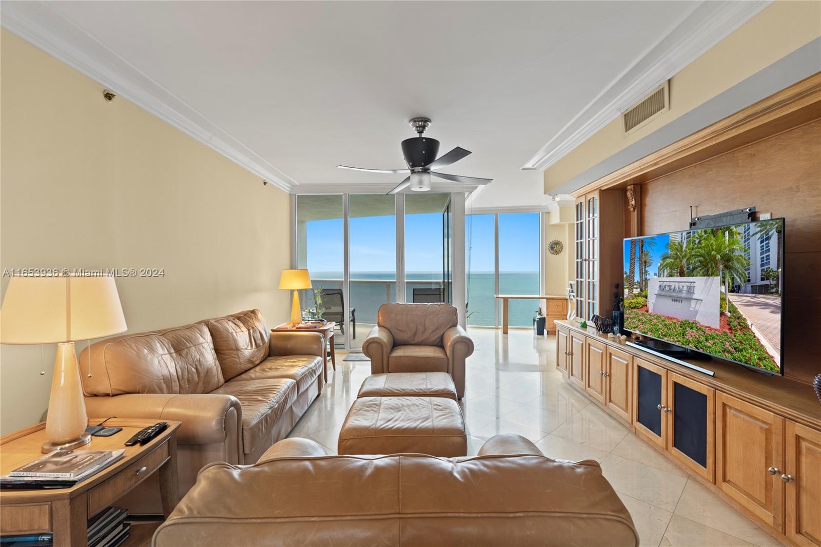 SENSATIONAL GORGEOUS 2BD+DEN/2.5 BATHS HIGH FLOOR UNIT WITH BEAUTIFUL OCEAN, INTRACOASTAL, CITY VIEWS. ELEVATOR TAKES YOU TO YOUR OWN PRIVATE FOYER ENTRANCE. UNIT IS FLOW THROUGH W/TWO HUGE EAST/WEST TERRACES. FORMAL DINING AREA, SEPARATE BEDROOMS, DEN CAN BE EASILY CONVERTED INTO A 3RD BEDROOM,BIG BREAKFAST AREA,TOP OF THE LINE KITCHEN WITH STAINLESS STEEL APPLIANCES, GRANITE COUNTERS.MARBLE FLOORS THROUGHOUT. SEPARATE LAUNDRY ROOM. SUPER LUXURY OCEANFRONT BUILDING OFFERING POOL, ROOF JACUZZI, BISTRO, TENNIS, SPA, FITNESS CENTER, BEACH & POOL SERVICES, VALET, CONCIERGE AND 24H. SECURITY. THIS IS A PERFECTION!