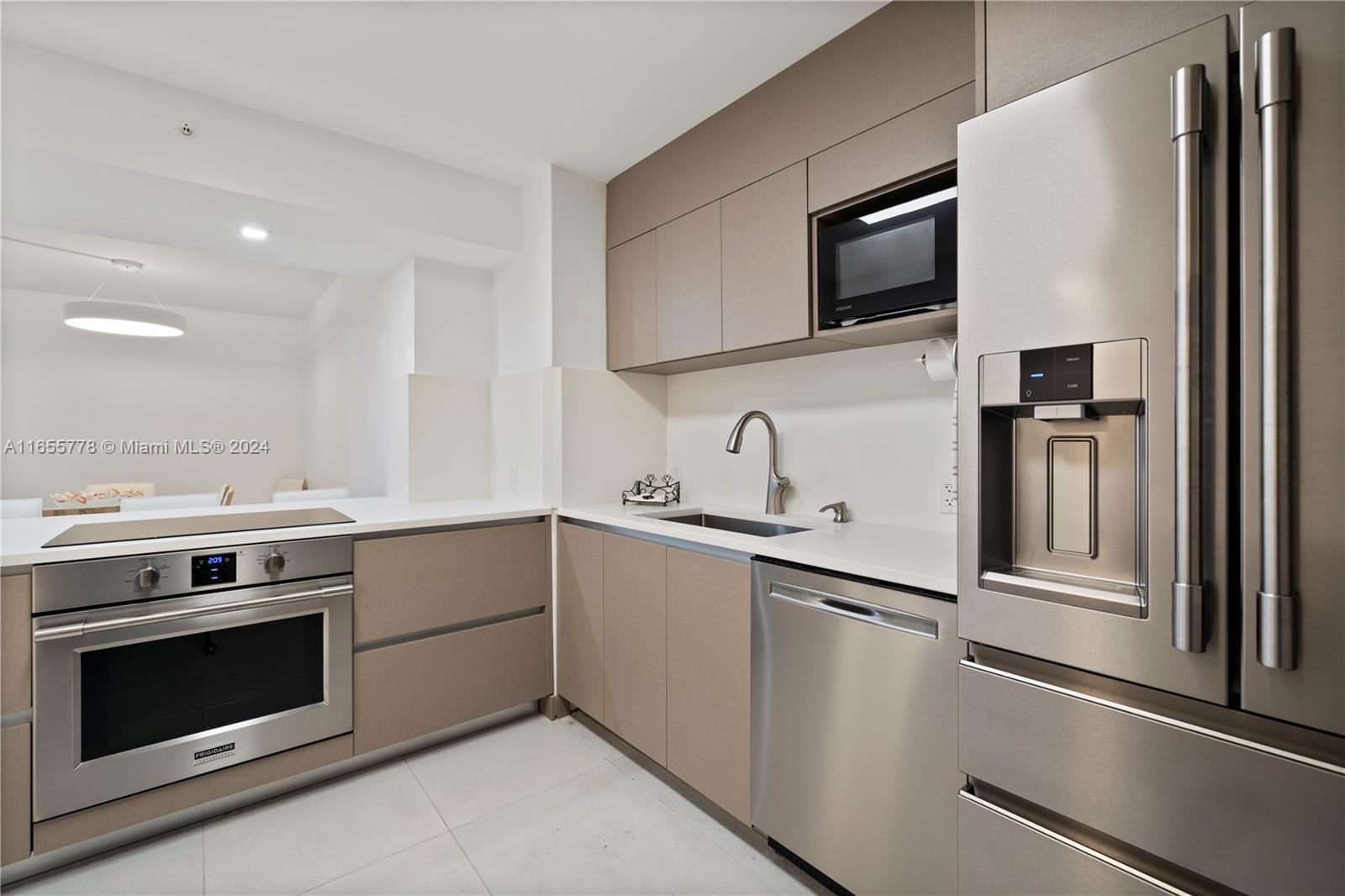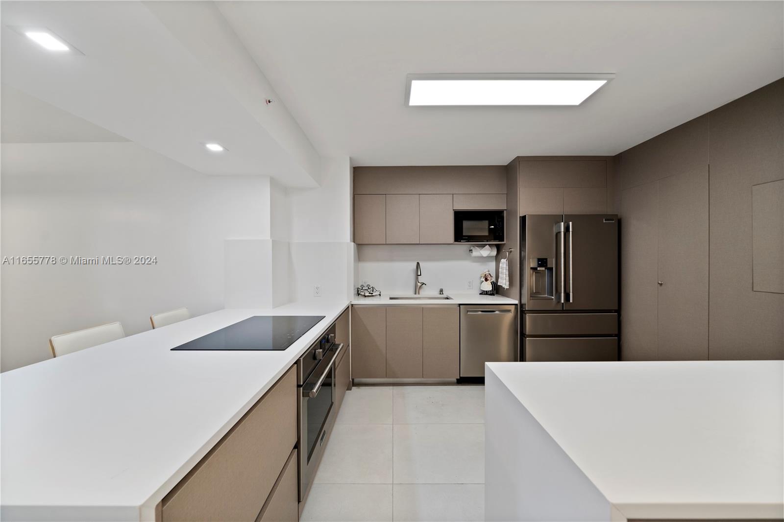Totally remodeled unit with 2 bedrooms, 2 bathrooms + Den that can be used as a bedroom. New kitchen with a open concept design, high-end appliances, wine cooler, new bathrooms, new porcelain floors. New hurricane proof sliding doors and windows installed.