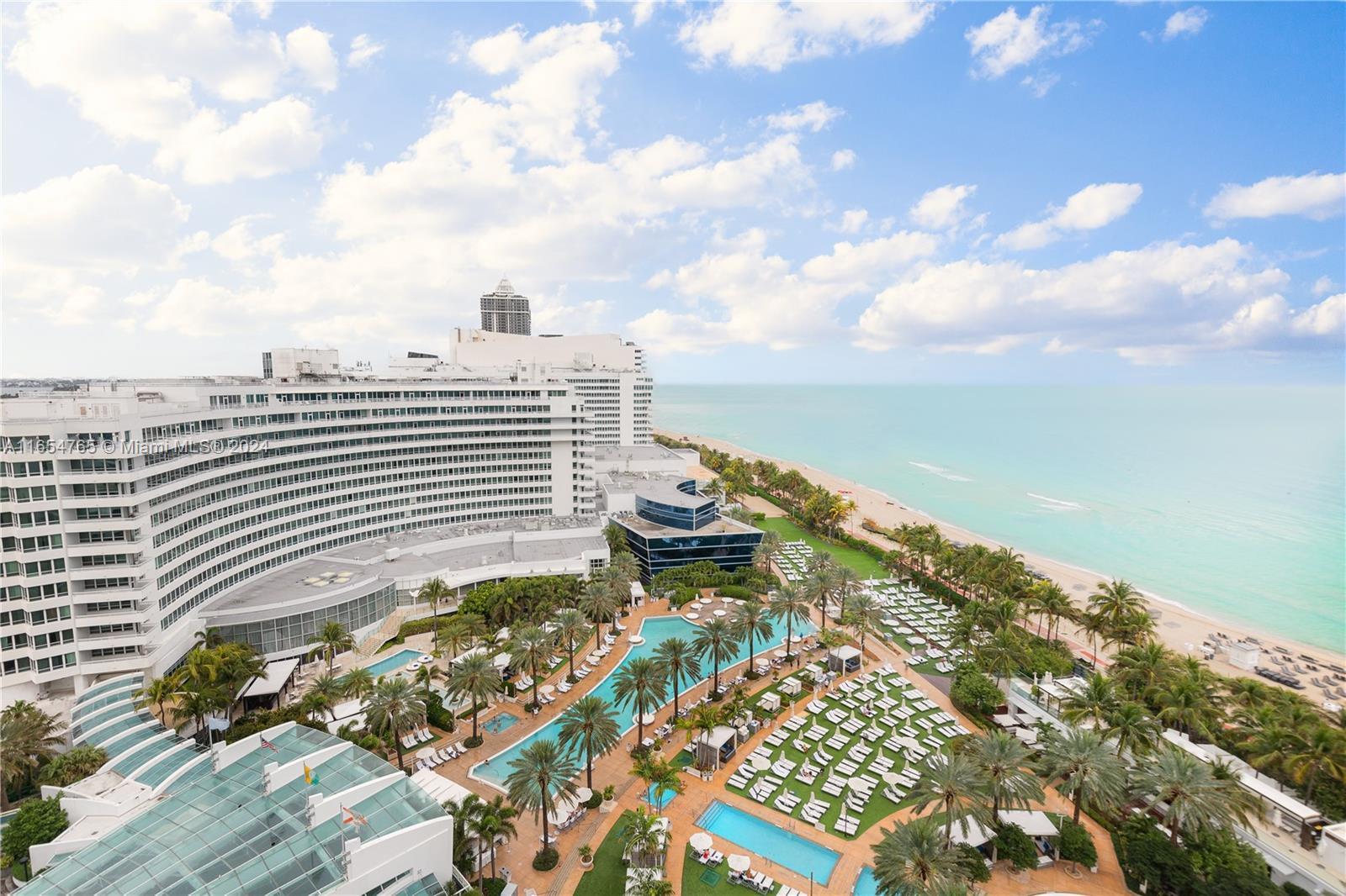 Enjoy unparalleled luxury resort living at the Fontainebleau Miami Beach in this spacious junior suite, located near the top of the prestigious Sorrento Tower on the 17th floor. Offering sweeping views of the Atlantic Ocean and hotel pool, this fully furnished unit features a king-size bed, sofa bed, kitchenette, and a large balcony. Indulge in 5-star amenities like multiple pools, a world-class spa, fitness center, gourmet restaurants, and vibrant nightlife. With white-glove service and valet parking included, this suite is also a prime investment opportunity through the hotel rental program.