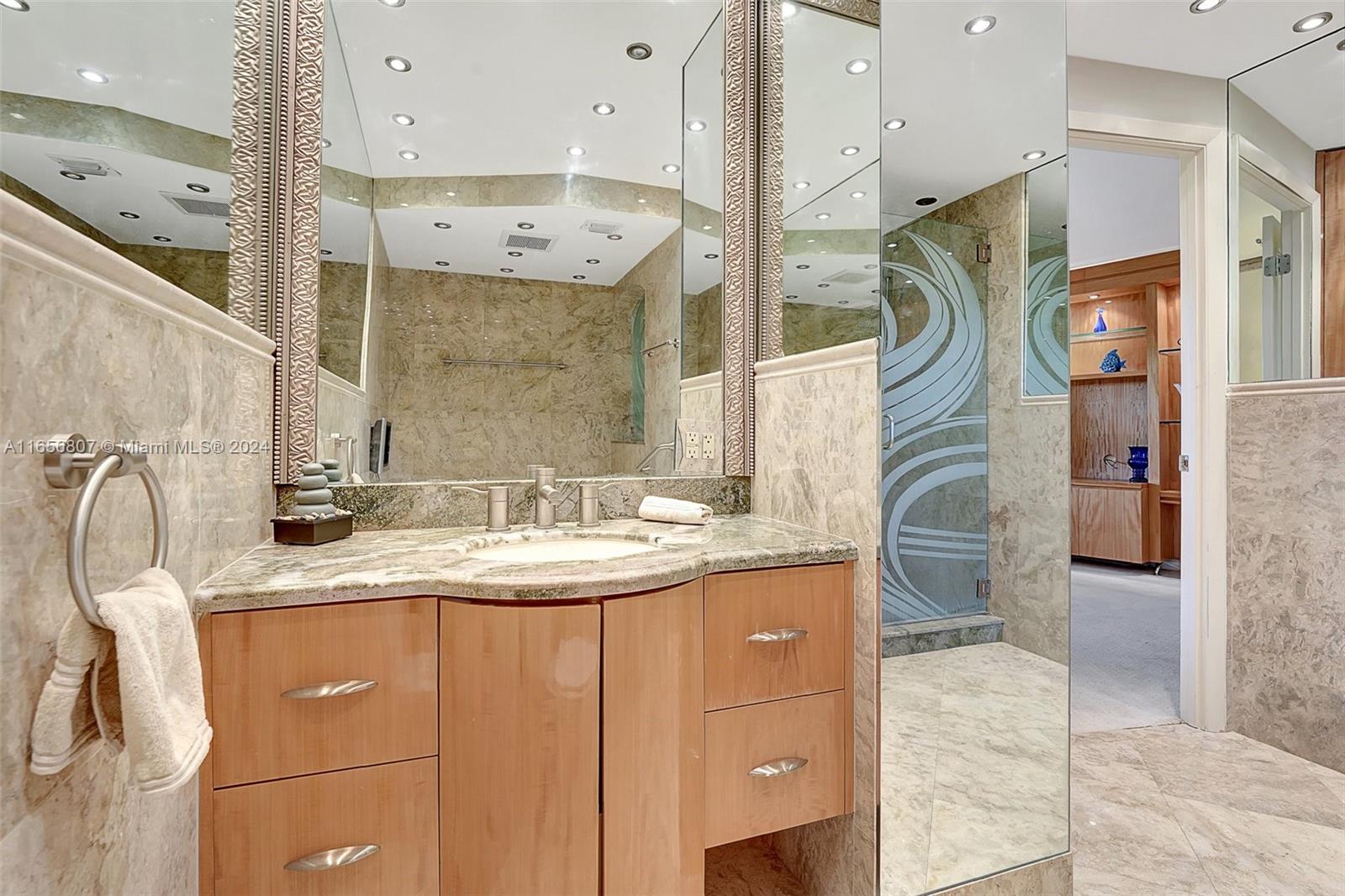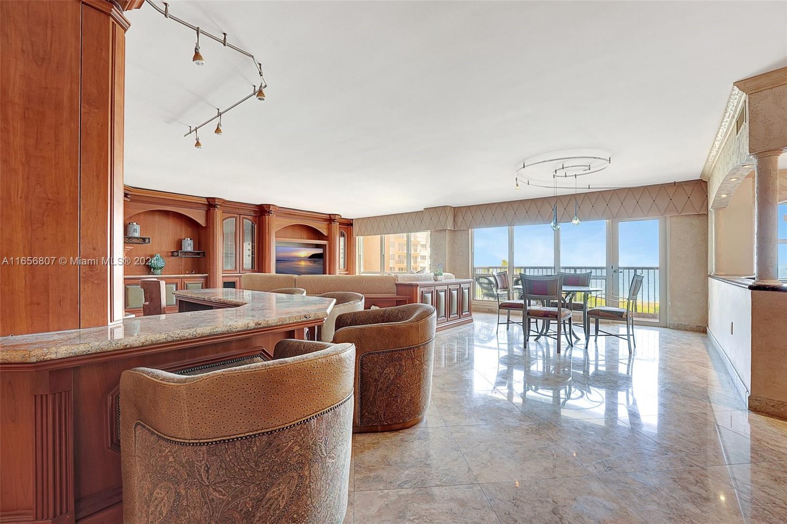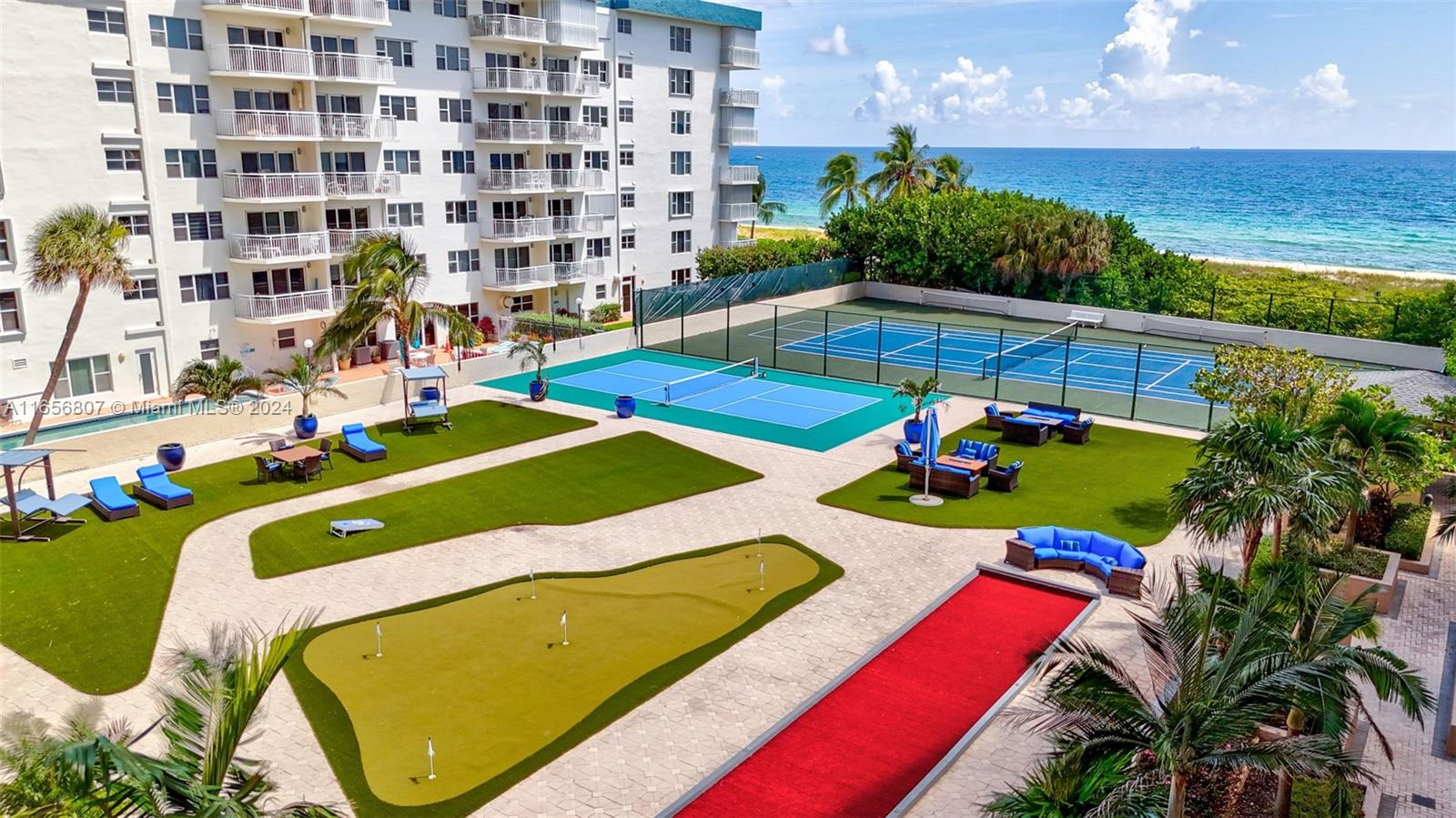 Oceanfront Luxury Condo at Hampton Beach Club, enjoy 5 Star Amenities in an amazing location; this special residence offers a beautiful foyer with an open floor concept; 3 bedroom suites, each with their own bathroom, walk in closets, balcony space; the spacious kitchen with granite countertops, ss appliances, large island ideal for entertaining, and a breakfast nook area; a separate laundry room with plenty of storage space; a powder room; formal living and dining area with travertine floors throughout, custom wood work and a balcony overlooking the ocean complete this gem, all in 3,340 sq ft living space. Enjoy amenities like private beach access, pool, tennis, putting green, barbecue area, fitness center, conference room, 24 hr security, lobby. Prime location near shopping, restaurants.