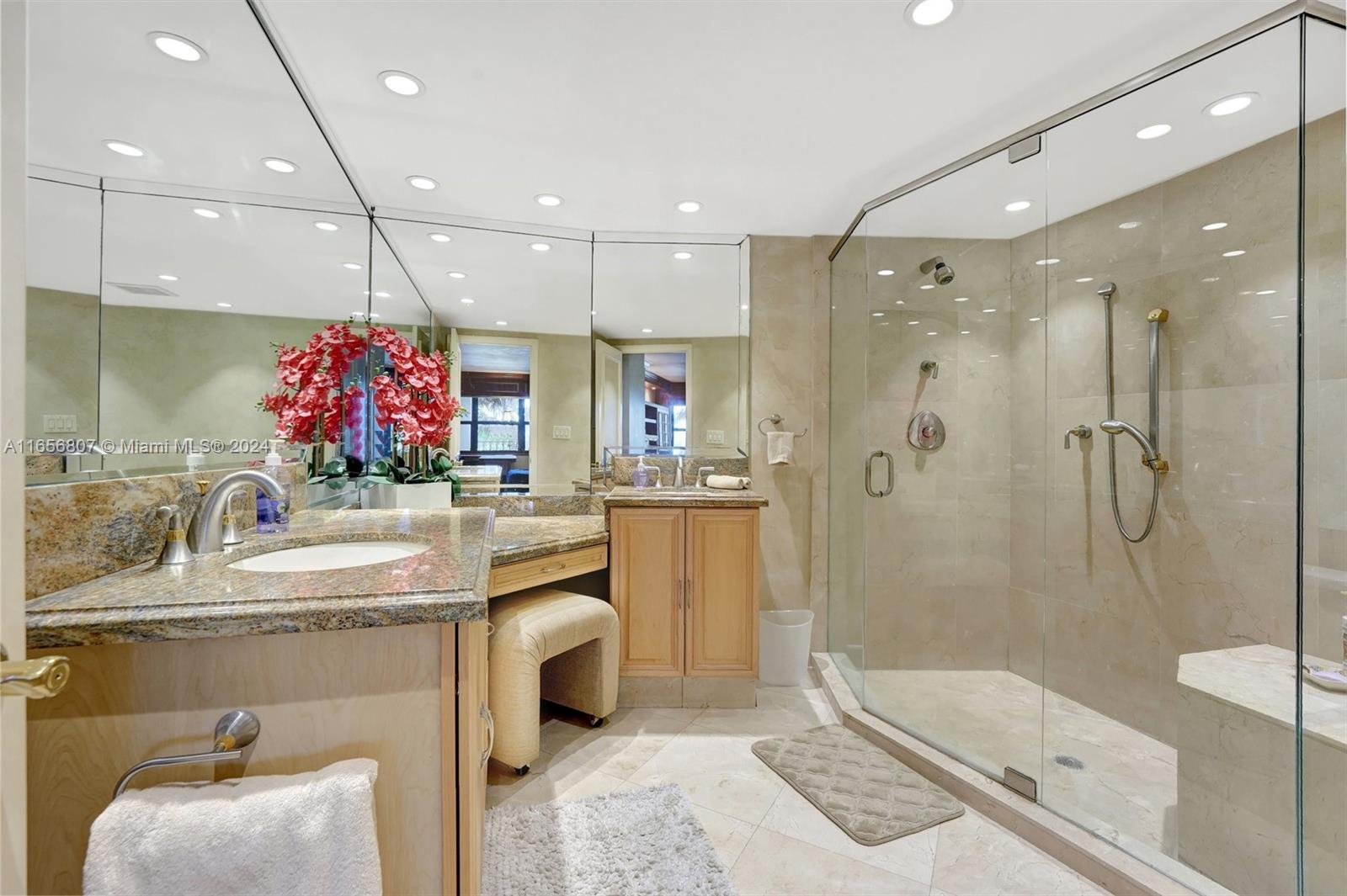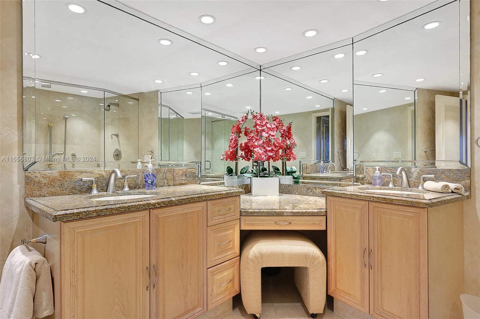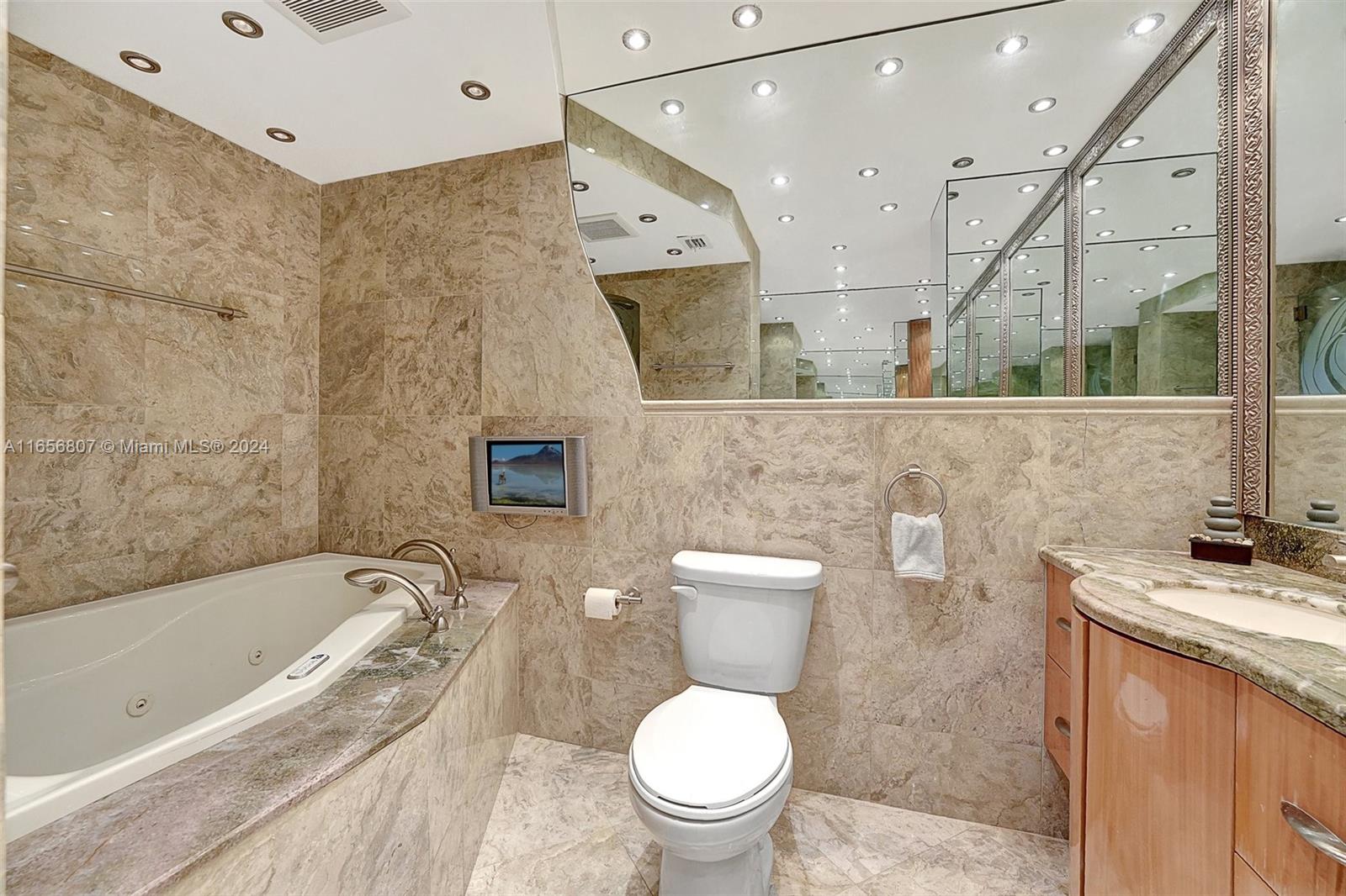 Oceanfront Luxury Condo at Hampton Beach Club, enjoy 5 Star Amenities in an amazing location; this special residence offers a beautiful foyer with an open floor concept; 3 bedroom suites, each with their own bathroom, walk in closets, balcony space; the spacious kitchen with granite countertops, ss appliances, large island ideal for entertaining, and a breakfast nook area; a separate laundry room with plenty of storage space; a powder room; formal living and dining area with travertine floors throughout, custom wood work and a balcony overlooking the ocean complete this gem, all in 3,340 sq ft living space. Enjoy amenities like private beach access, pool, tennis, putting green, barbecue area, fitness center, conference room, 24 hr security, lobby. Prime location near shopping, restaurants.