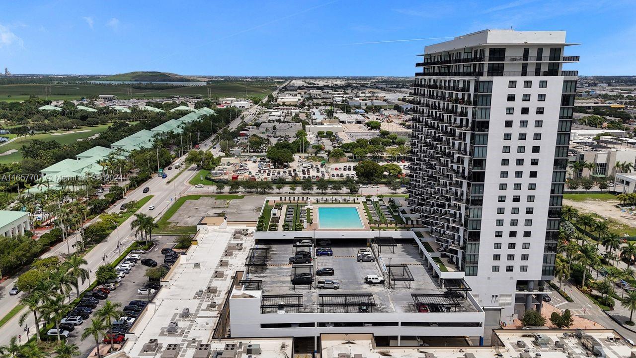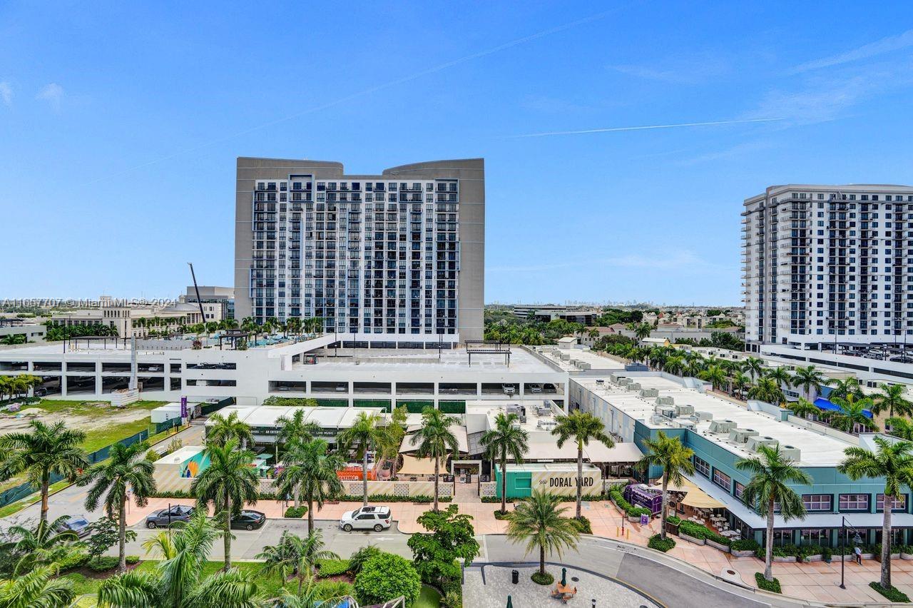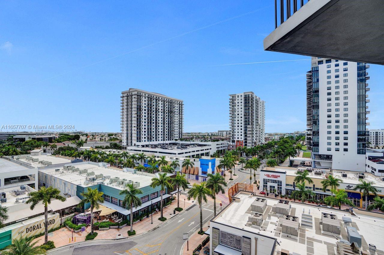 Elegant modern architectural style located in the heart of Downtown Doral offering panoramic views of the surrounding shops, beautiful landscaped of brand shops, exquisite restaurants, offices, modern condominiums, picturesque park. This amazing corner unit condo features 2 bedroom, 2 bath, great amenities in the building, resort-style outdoor pool deck with lounge daybeds and cabanas. Out-of-the-art fitness facilities, a yoga room, on site massage rooms and sauna. Also the building provides for a children's play area, 24hrs security, high speed internet in common areas and much more!! 1 parking assigned plus valet service 24 hrs.