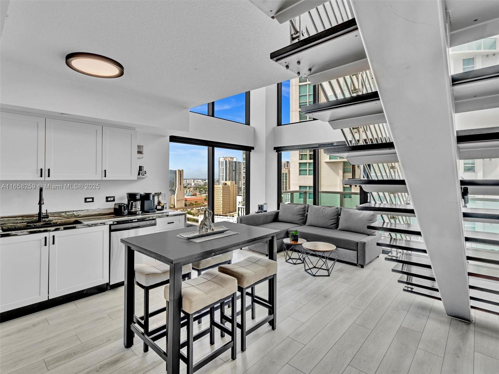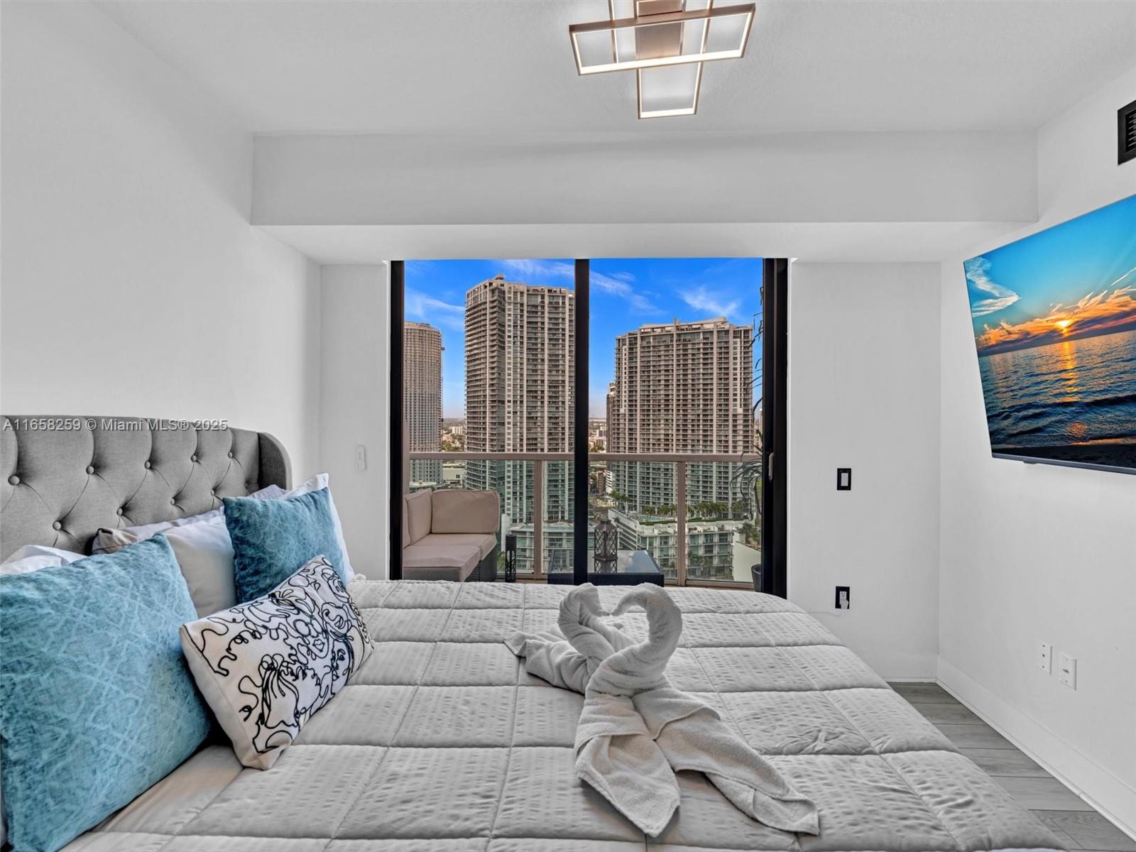 Amazing 2 bed, 2 bath in two-story loft-style condo with skyline Miami River view, the units includes two balconies , kitchen with stainless steel appliances. The building has great amenities, including two pools, fitness center with spa, Convenience Location plenty shops, restaurants, next to Brickell City Center Mall and Metro mover station.24 hours security, concierge, 24/7 valet parking service