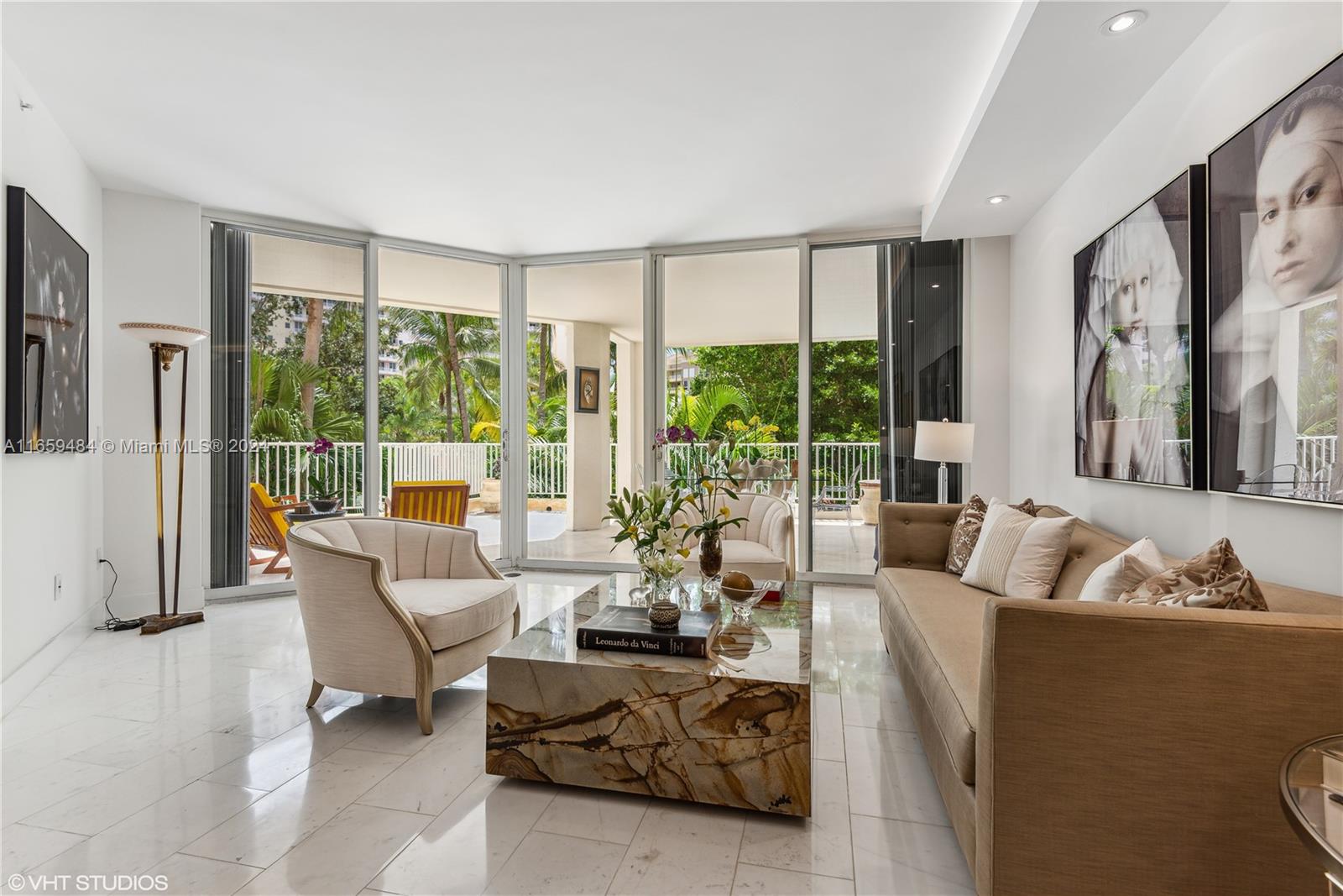 2 Bedroom 2 Bath fully renovated apartment at The Ocean Club in Key Biscayne. Walk in and be greeted by a sophisticated and modern open Kitchen consisting of top-of-the-line stainless steel appliances, quartz countertops and new LED lighting. This modern style residence has new marble floors, soffits with linear AC diffusers and indirect lighting, custom closets. M-Bathroom has an open walk-in shower for easy accessibility, beautiful double sink vanity and lit mirrors. This unit has breathtaking lake views with an oversized lanai. Great open spaces make this apartment bright, efficient and spacious. The Ocean Club sets the standard for resort living, multiple pools, dining options, gym, kids' playground, half basketball court and tennis club featuring 8 clay courts and 3 padel courts.