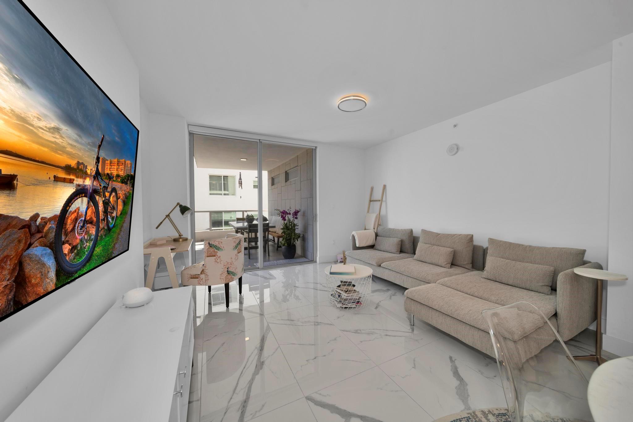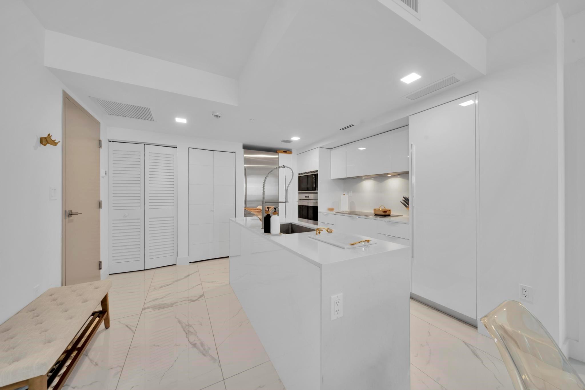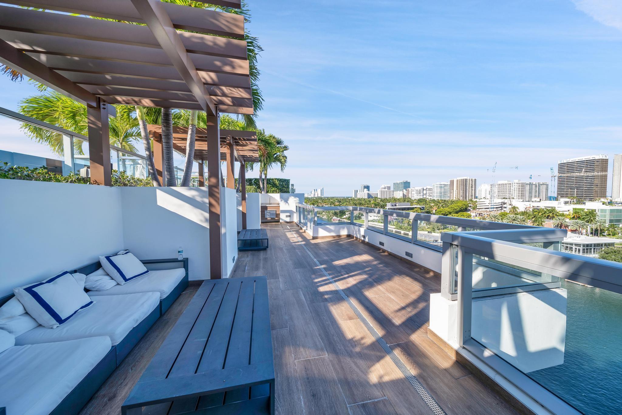 Bijou is an exclusive waterfront boutique building, completed in 2021, located in the highly sought-after, walkable neighborhood of Bay Harbor Islands. Residents enjoy easy access to the beach, top-rated restaurants, Bal Harbour Shops, an A-rated local school. This bright and spacious 1-bedroom, 1.5-bath is located on the southeast side of the building and boasts an expansive terrace, soaring 9-foot ceilings, and a sleek Italian MiaCucina kitchen equipped with premium Wolf and Subzero appliances. The luxurious primary bathroom features double sinks, a separate tub, and a glass-enclosed shower. Conveniently situated on the same floor as the gym. Stunning rooftop pool and hot tub, lounge with a kitchen and bar, valet service, 24/7 security, marina, and boat docks. Includes a storage unit.