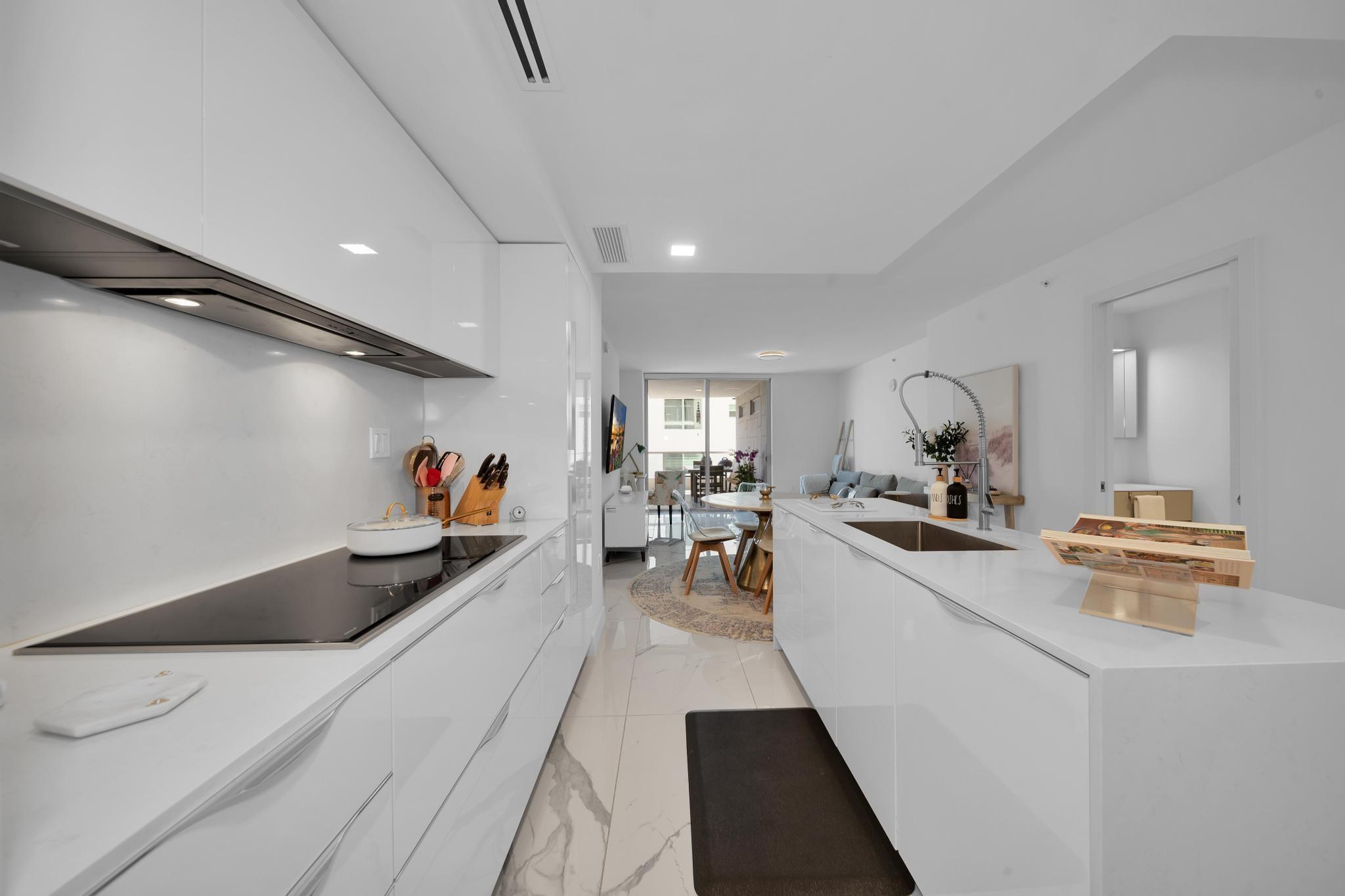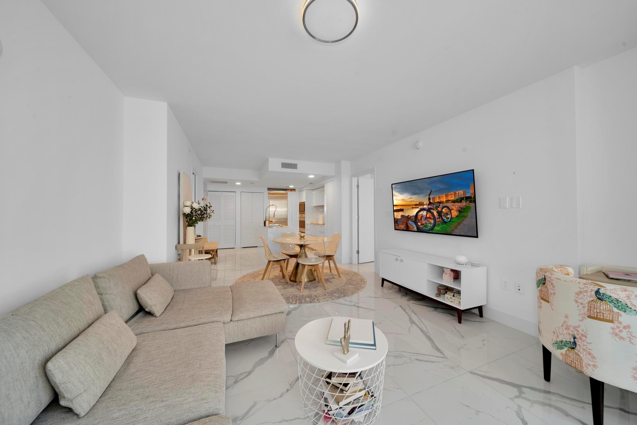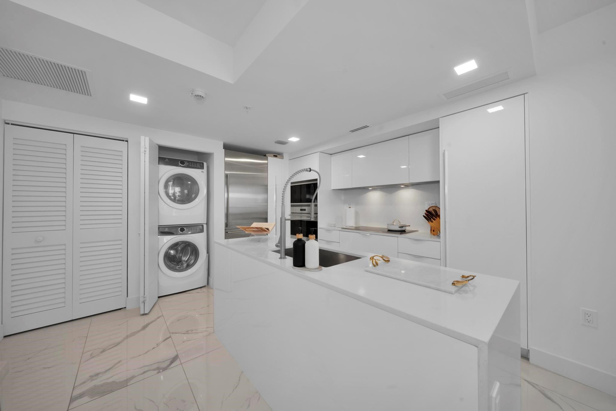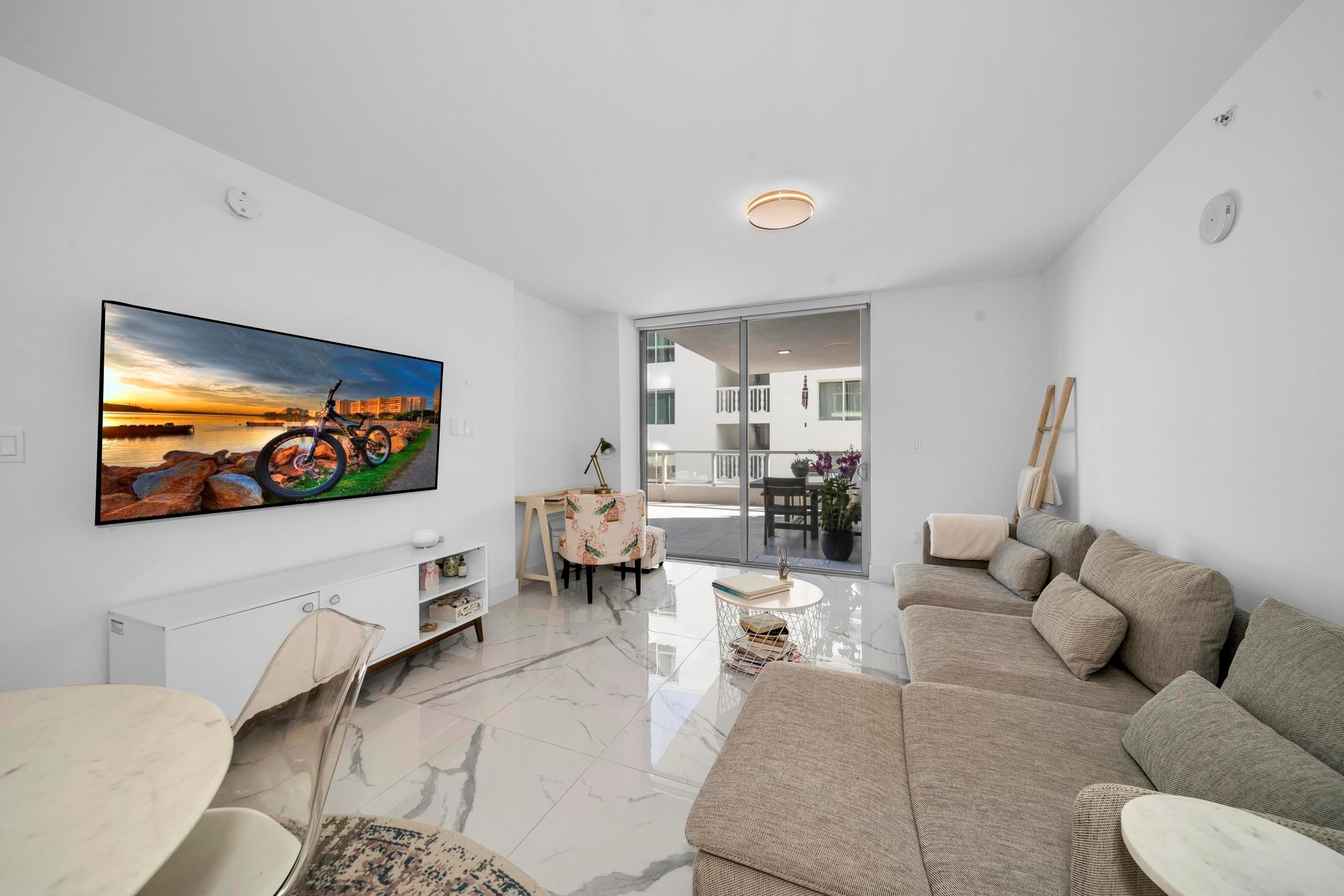 Bijou is an exclusive waterfront boutique building, completed in 2021, located in the highly sought-after, walkable neighborhood of Bay Harbor Islands. Residents enjoy easy access to the beach, top-rated restaurants, Bal Harbour Shops, an A-rated local school. This bright and spacious 1-bedroom, 1.5-bath is located on the southeast side of the building and boasts an expansive terrace, soaring 9-foot ceilings, and a sleek Italian MiaCucina kitchen equipped with premium Wolf and Subzero appliances. The luxurious primary bathroom features double sinks, a separate tub, and a glass-enclosed shower. Conveniently situated on the same floor as the gym. Stunning rooftop pool and hot tub, lounge with a kitchen and bar, valet service, 24/7 security, marina, and boat docks. Includes a storage unit.
