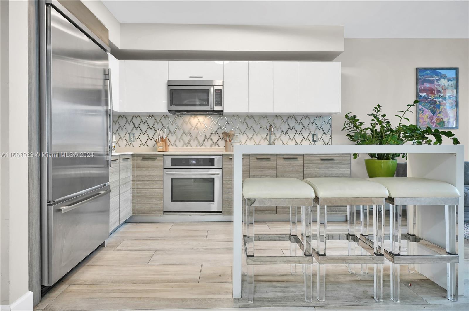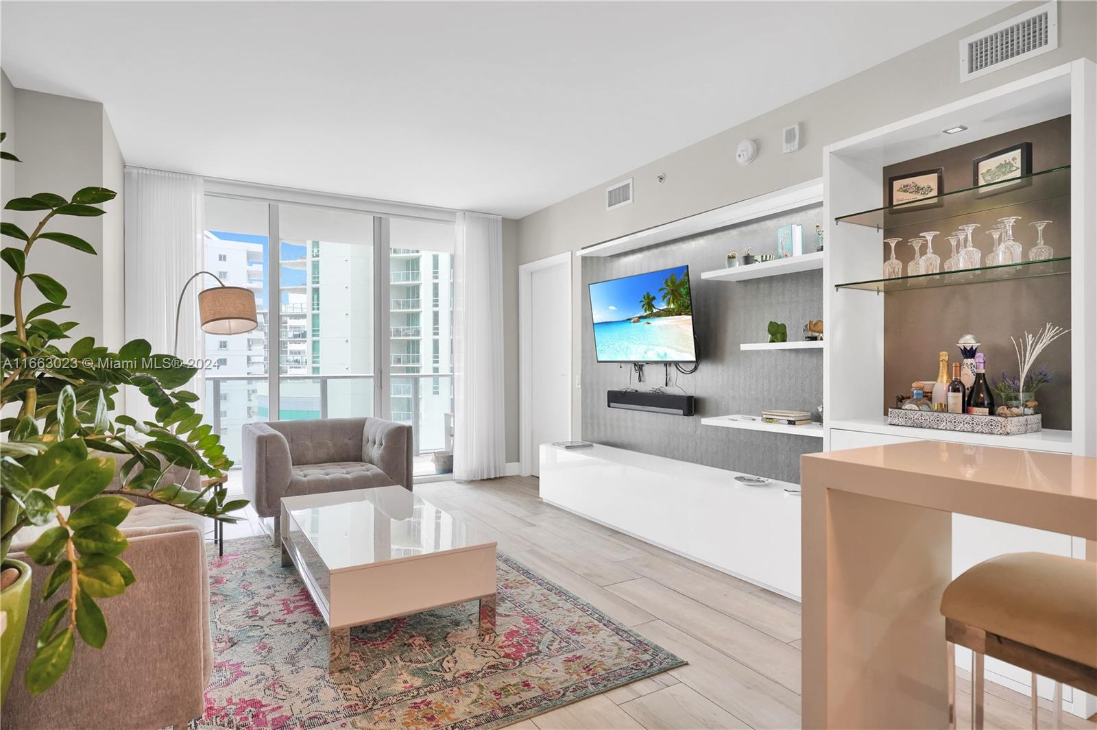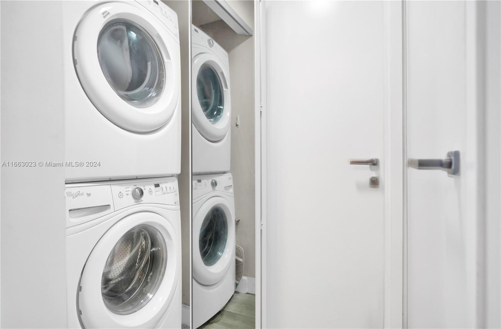 Water views! Come see this beautiful and well decorated one bedroom one bathroom condo at Brickells Luxurious building Brickell House. Porcelain tile flooring throughout, electric blinds and blackouts, tasteful wallpaper. Walk in closet and washer dryer in unit. Building features state of the art gym, two pools, roof top pool, party room, outdoor BBQ area, sauna, and steam room. Purchase includes one parking spot in an automated garage. Maintenace includes water sewer trash basic cable and internet. Rental restrictions 30 days minimum 12x a year making this a great second home or investment property. Bring your clothes and toothbrush furniture negotiable.