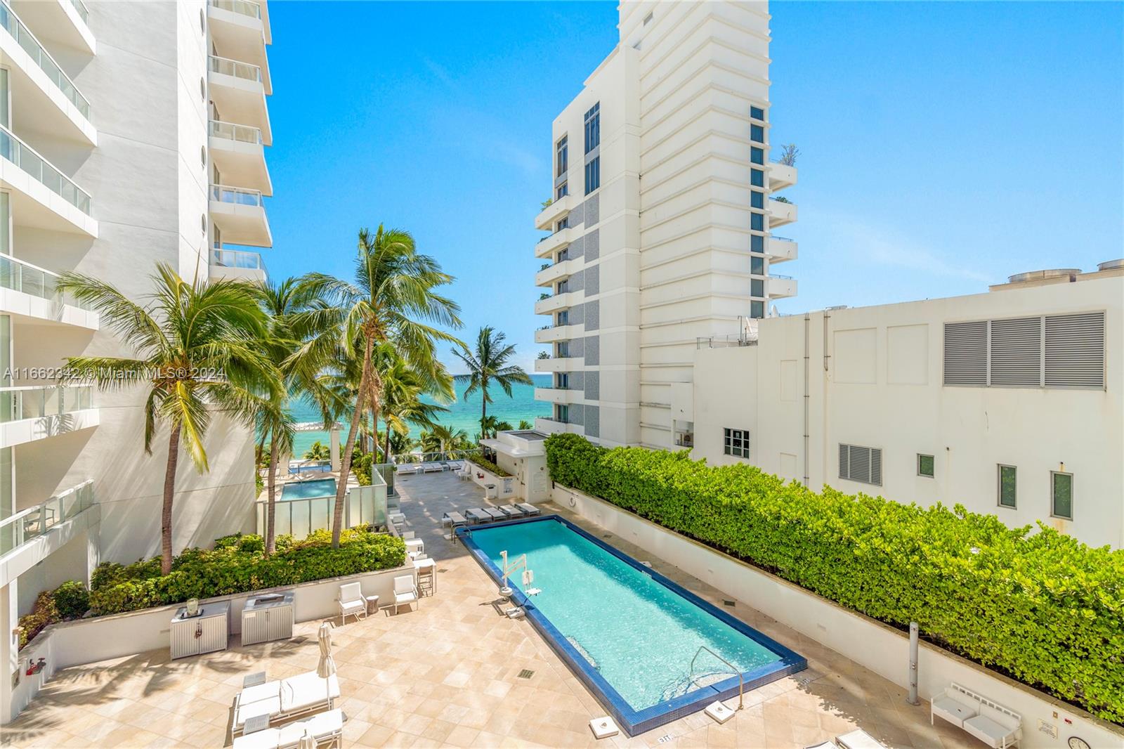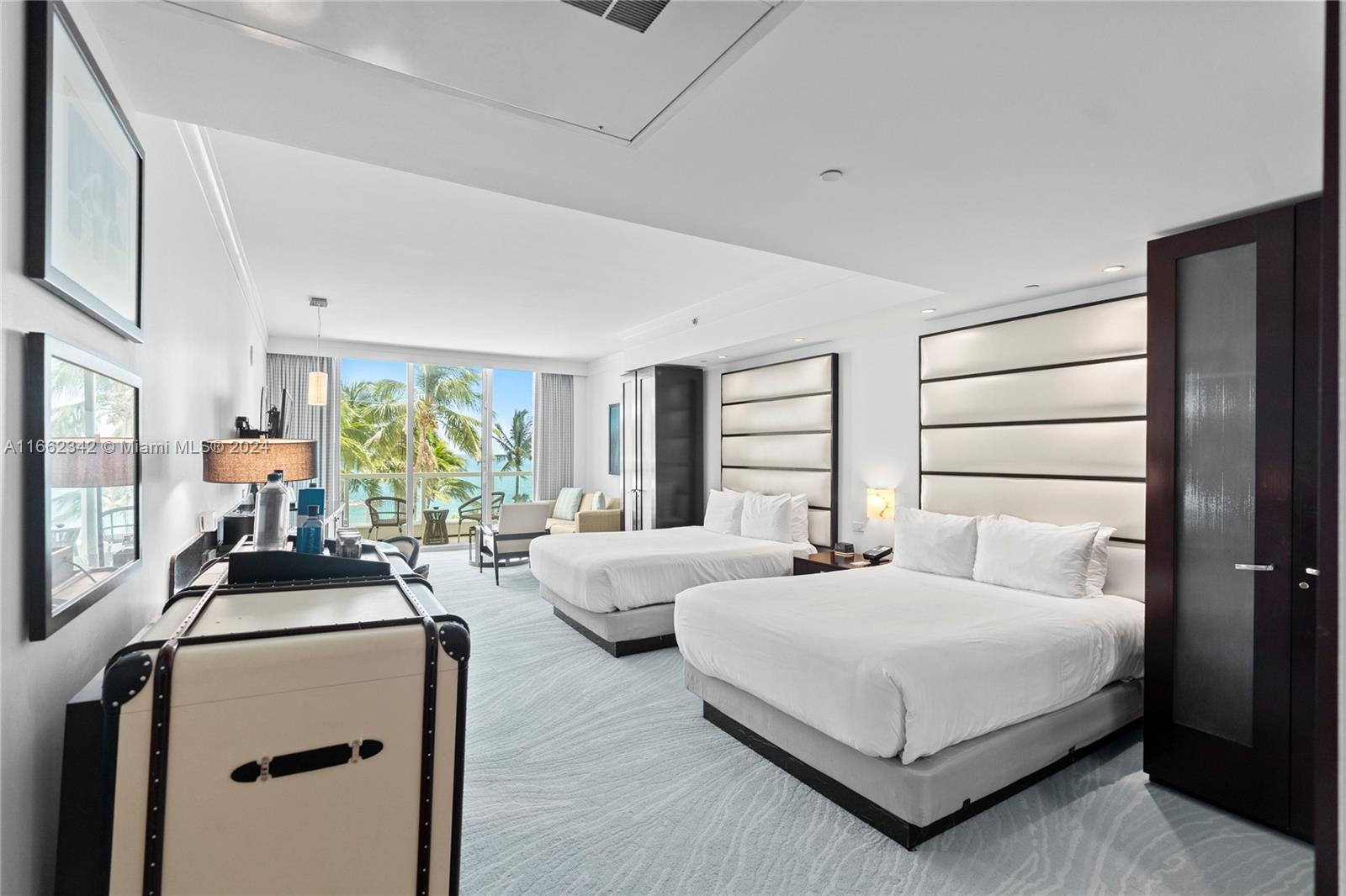 Stunning Fontainebleau III Jr Suite with unobstructed direct ocean and pool views. This unique apartment comes furnished, turnkey with 2 queen beds and a sleeper sofa; sleeps 6 people. Option to enroll in hotel rental program & receive income while away! Enjoy full service, vacation-style living! (Door in unit connects to the #720 unit next door that is also available for sale.) The Fontainebleau resort offers award-winning restaurants, LIV night club, Lapis spa & state-of-the-art fitness center, bakery, shops, full-service salon and more. Maintenance fees include all utilities: AC, internet, cable, local calls, electricity, valet + daily free breakfast in owner's lounge.