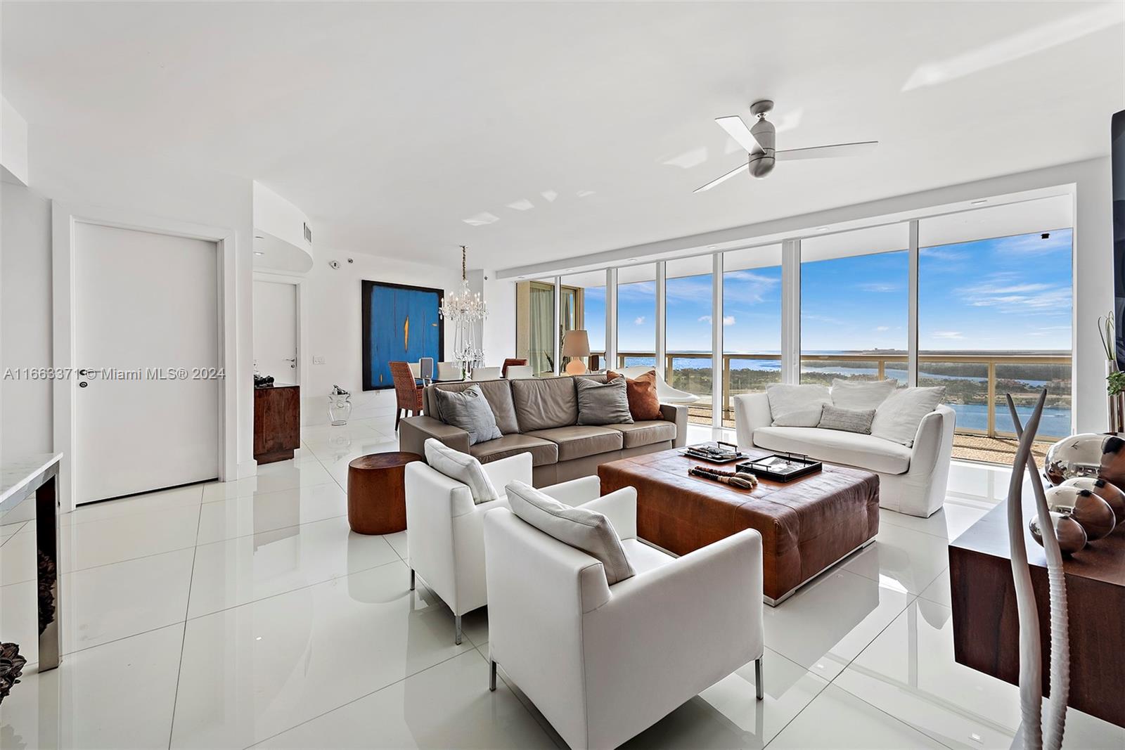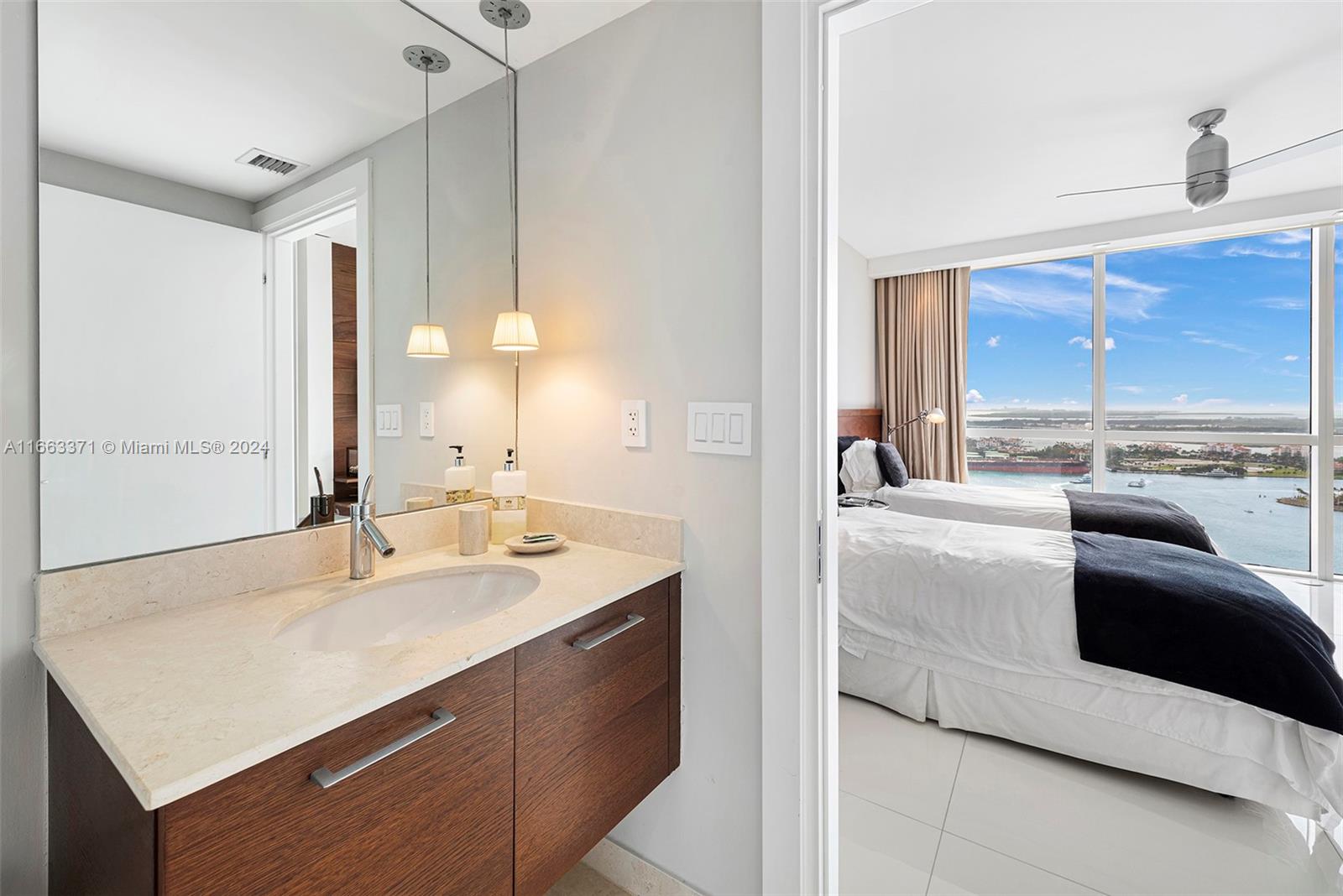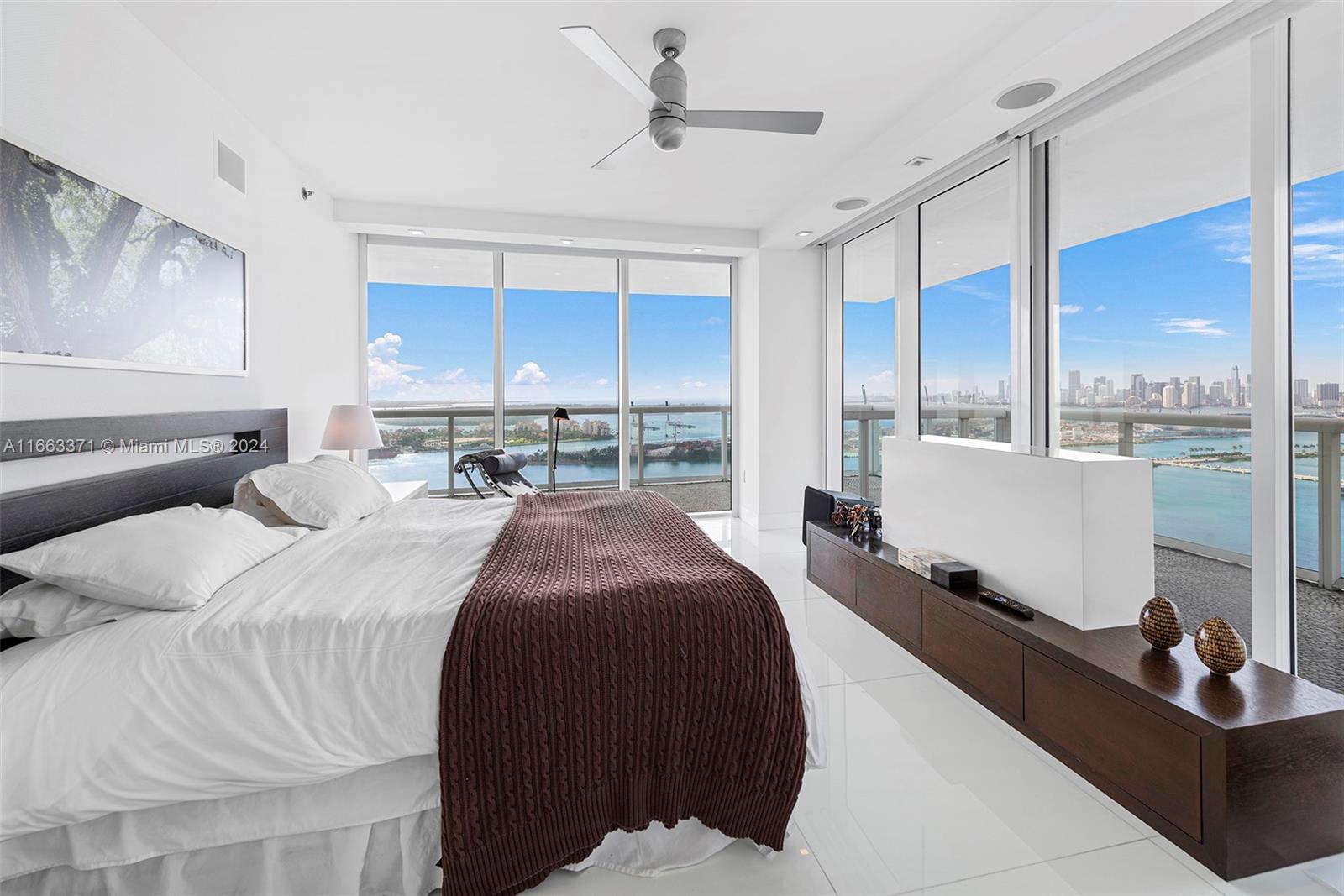 A must see unique unit! This professionally furnished high floor corner unit has it all. Located at of one of the most sought for buildings in the "South of 5th" neighborhood, with an oversized wrap around balcony, floor to ceiling windows and sliding doors, that allow for panoramic views of the ocean and of the Miami skyline. Designed by Phillippe Starck, the amenities are gorgeous, including a world class gym & spa, 2 pools, library, massage room, and charming outdoor restaurant/cafe. Unit has white marble flooring through out, solid wood TV wall in the living room, motorized screens and roller shade blackouts and top of the line appliances. Walking distance to the beach, to shops, and lots of cafes and restaurants. Close to South Point Park, and 15 mins to Miami International Airport.