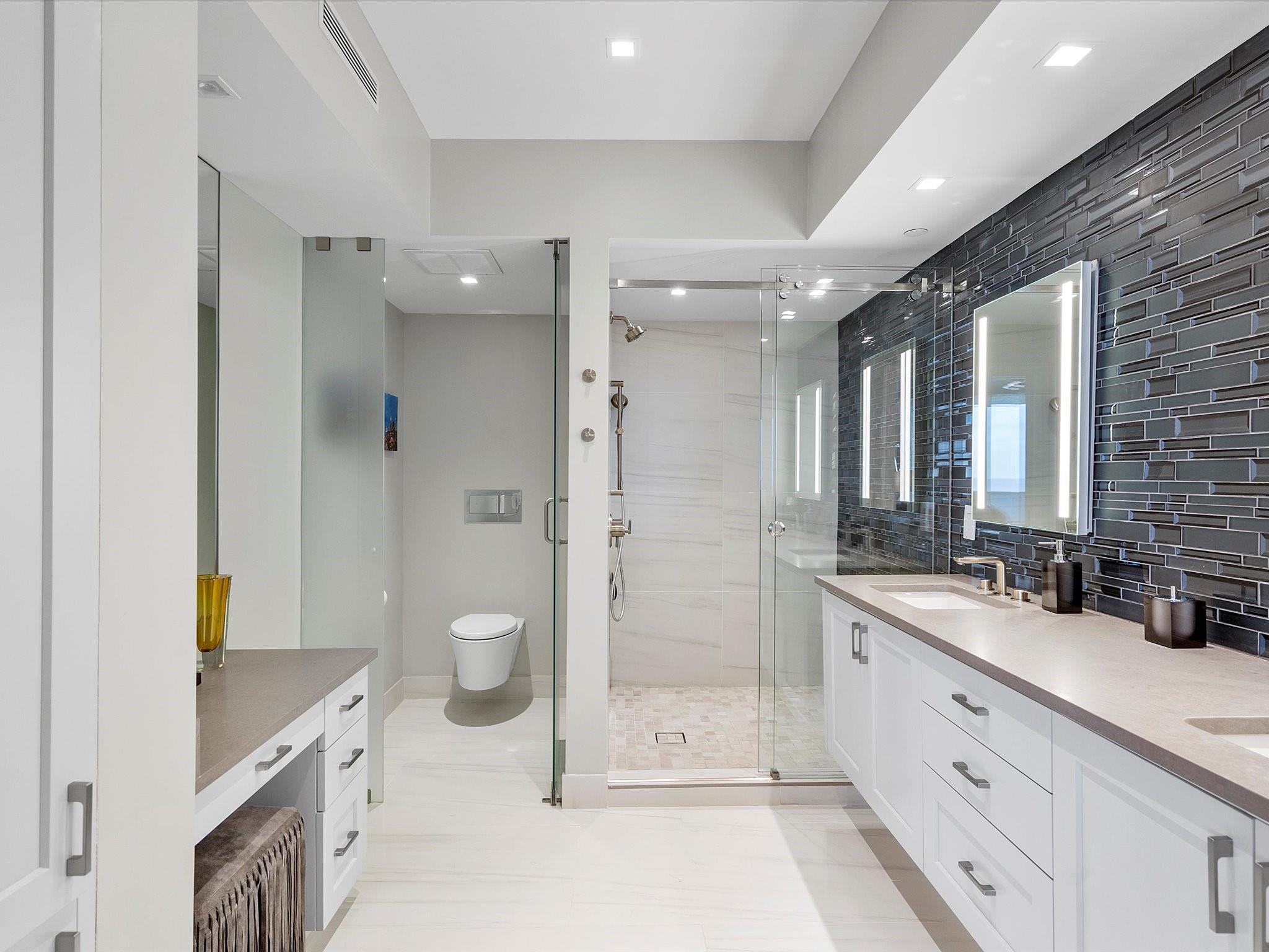 This fully renovated condo boasts top-of-the-line features and gorgeous direct ocean views. Spacious open kitchen with eating area, wine fridge, induction range, convection oven, and ample counter space. The master bath been redesigned with large shower and a separate enclosed toilet. 2nd bedroom has ocean views, and renovated 2nd bathroom includes a tub. New den with oversized TV and large seating area. Formal dining room, raised ceilings, high-impact glass, and remote-controlled window treatments. New laundry room with sink. L'Hermitage, a premier luxury resort-like condominium complex that spans over 10 acres of oceanfront property and includes amenities such as tennis courts, fitness center, secured complex, sanas/steam rooms, a beach with service, a pool deck restaurant. Pets are OK.