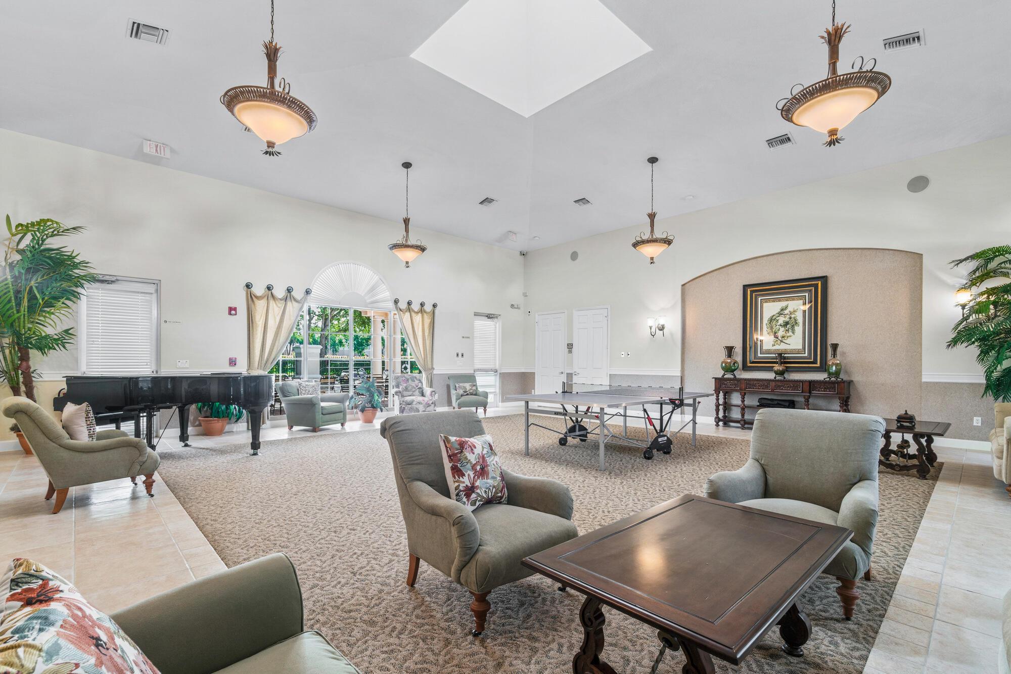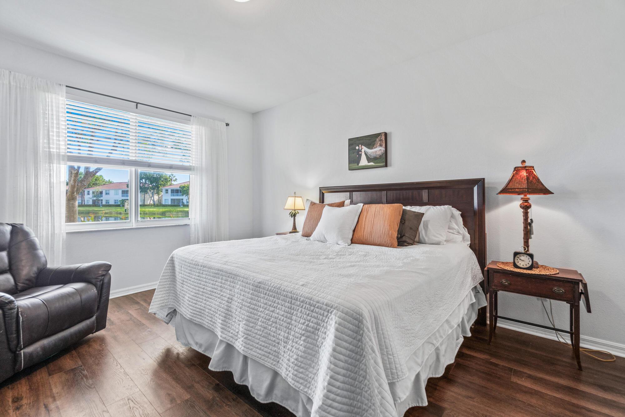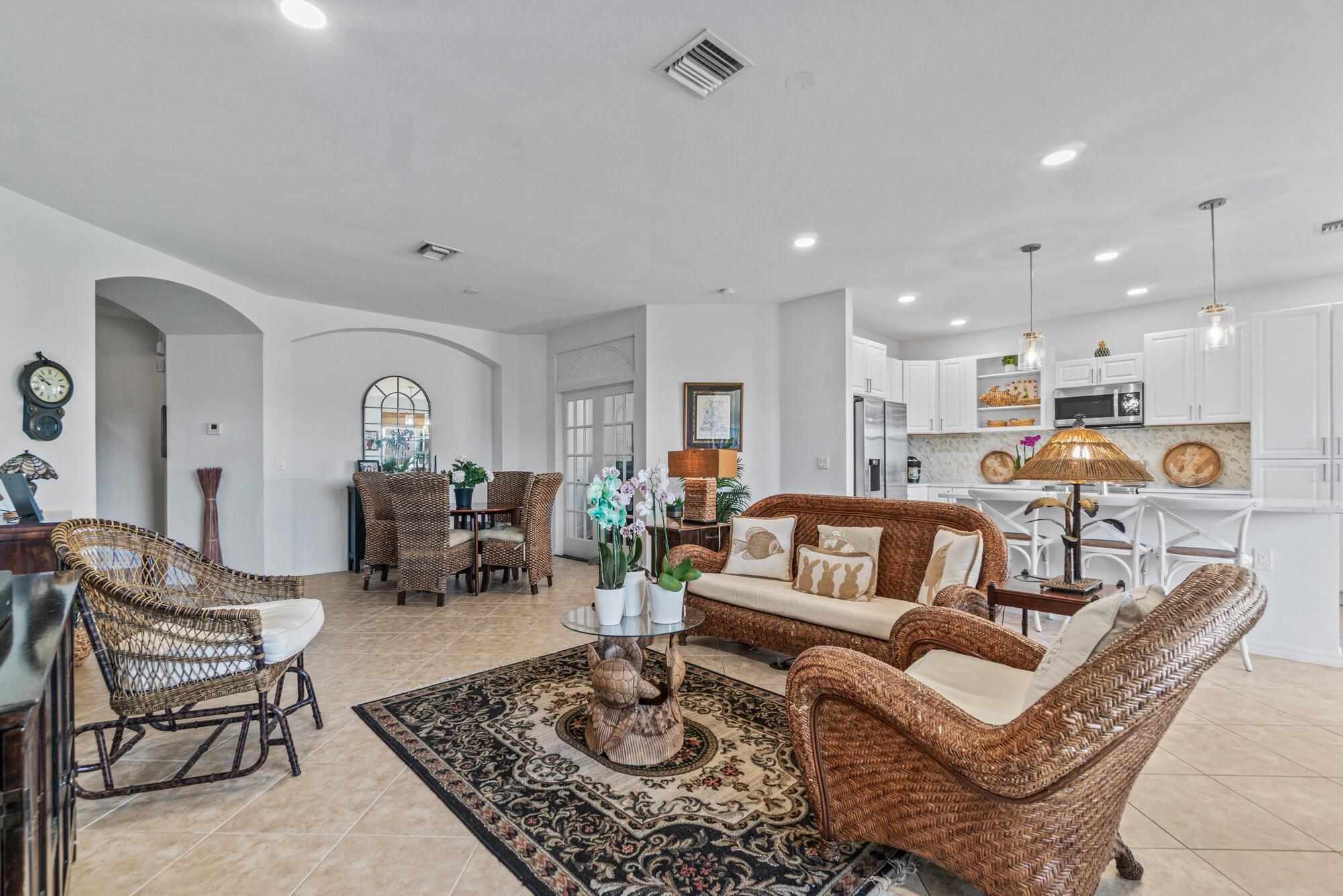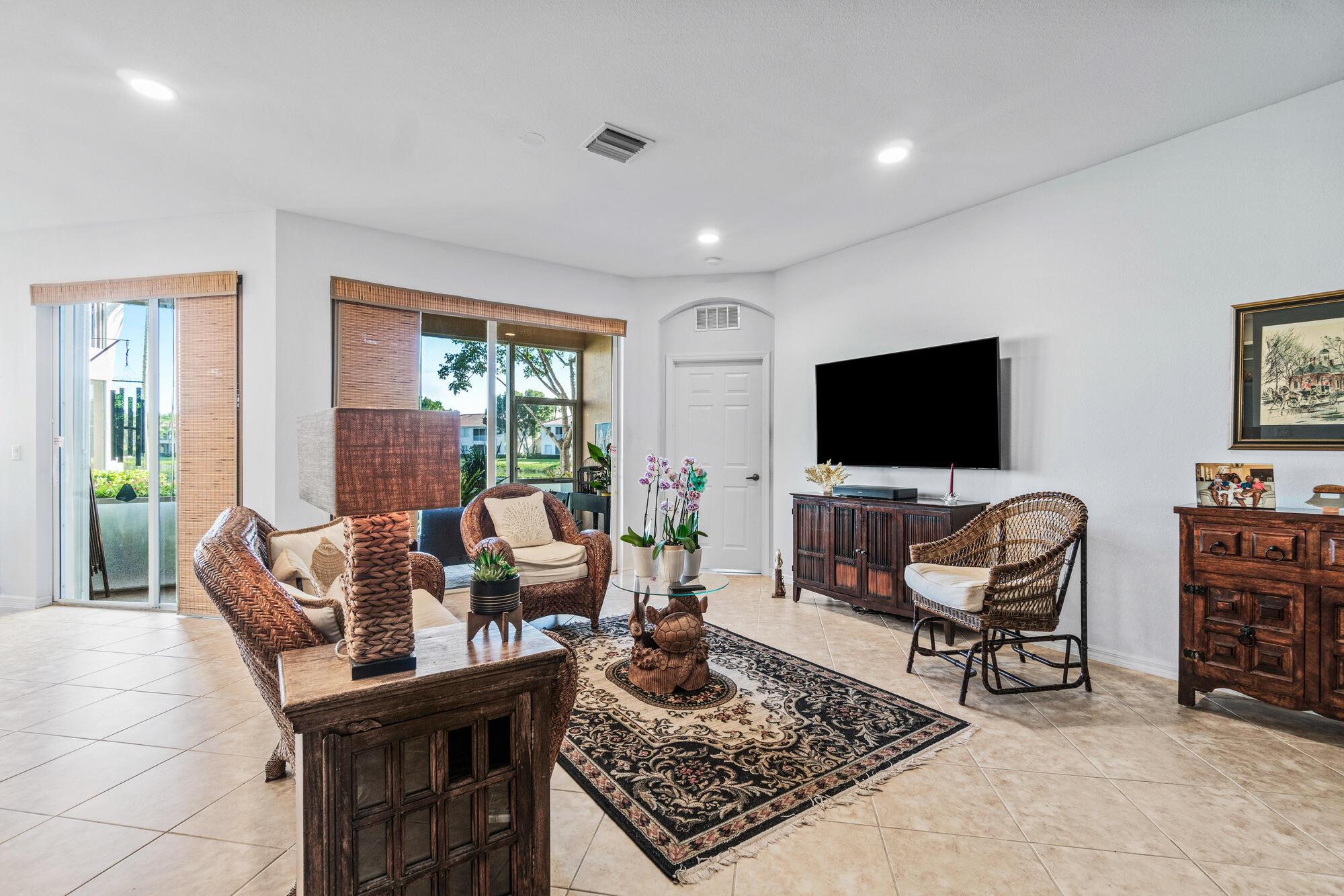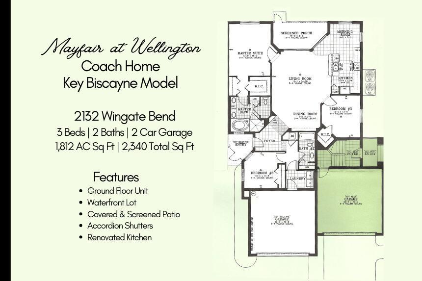 Gorgeous waterfront condo for sale in Wellington's highly sought-after active adult 55+ community, Mayfair at Wellington! This spacious first-floor condo offers 3 bedrooms, 2 bathrooms, a 2-car garage, and over 1,800 square feet of living space. Located in the heart of Wellington you'll enjoy convenient access to shopping, dining, and the renowned WEF showgrounds and Global Dressage, which are just minutes away! As you enter the covered and screened entryway, you'll be greeted by a foyer that flows seamlessly into the open living and dining areas. The kitchen, newly renovated in August 2023, showcases 42'' cabinets, quartz countertops, tile backsplash, pantry, and breakfast bar. It also features new stainless steel appliances (August 2023) and a cozy breakfast nook.