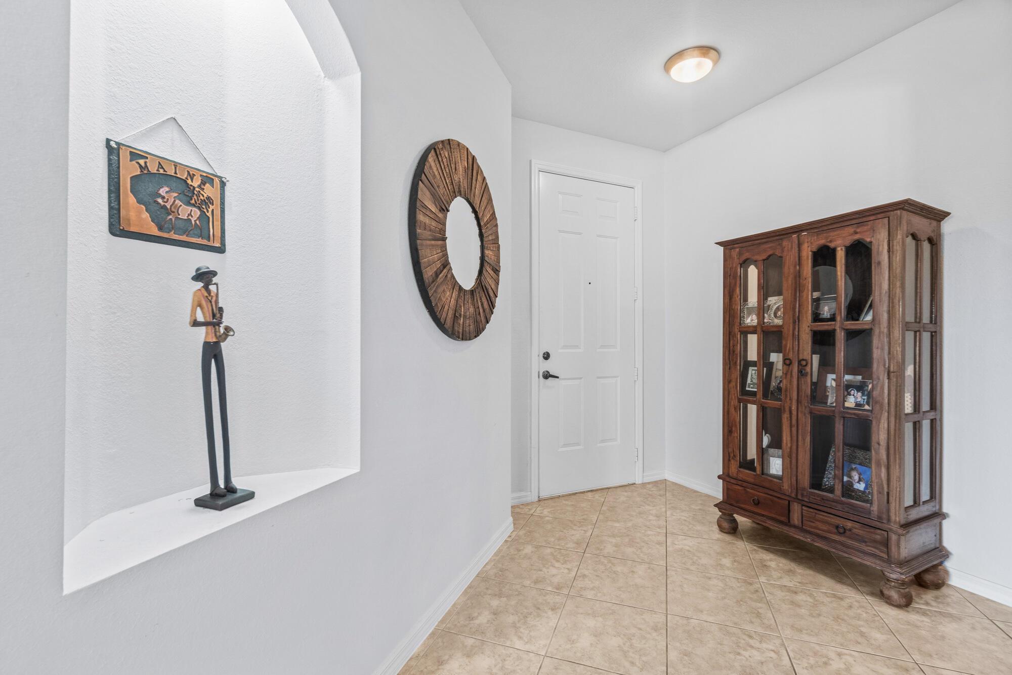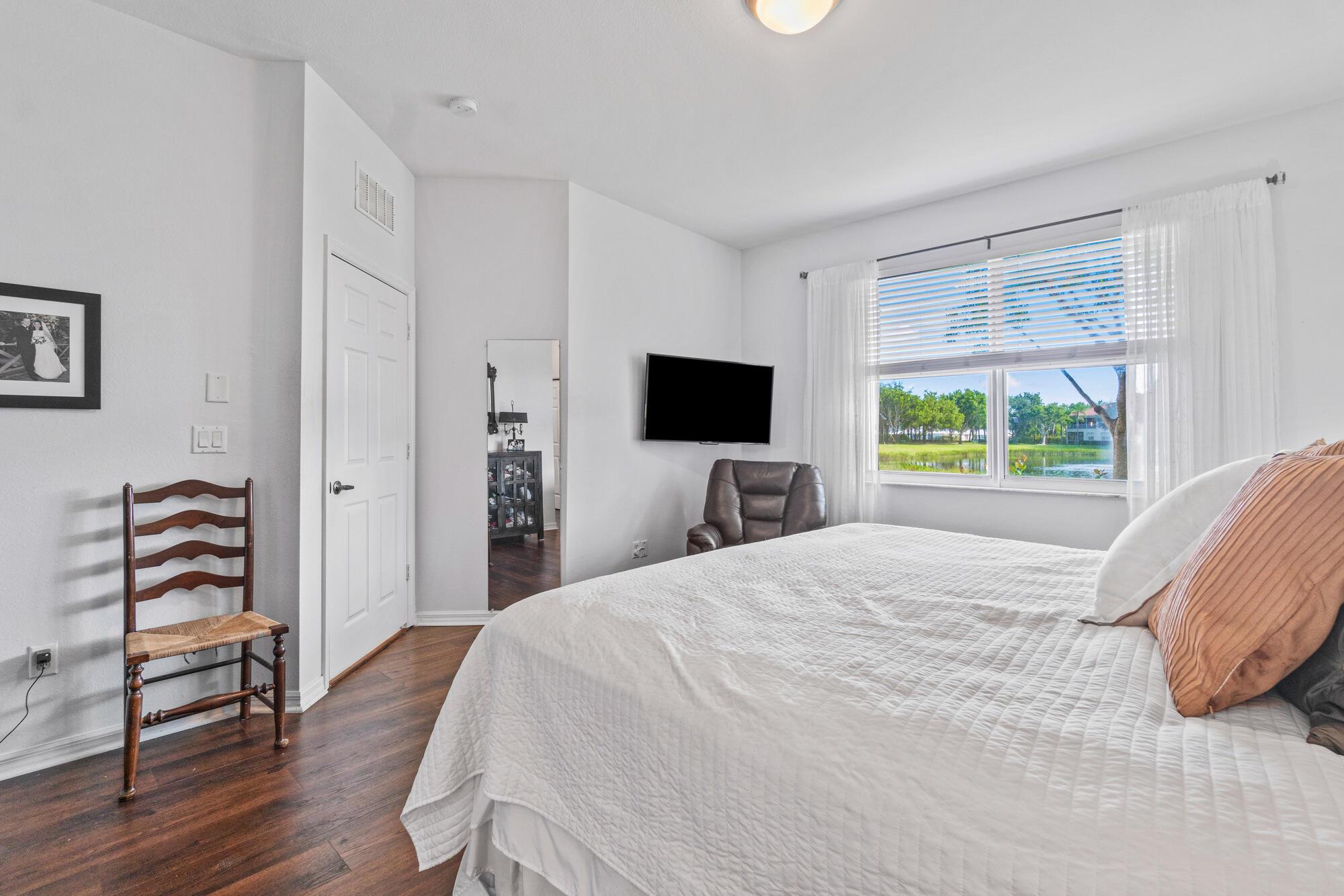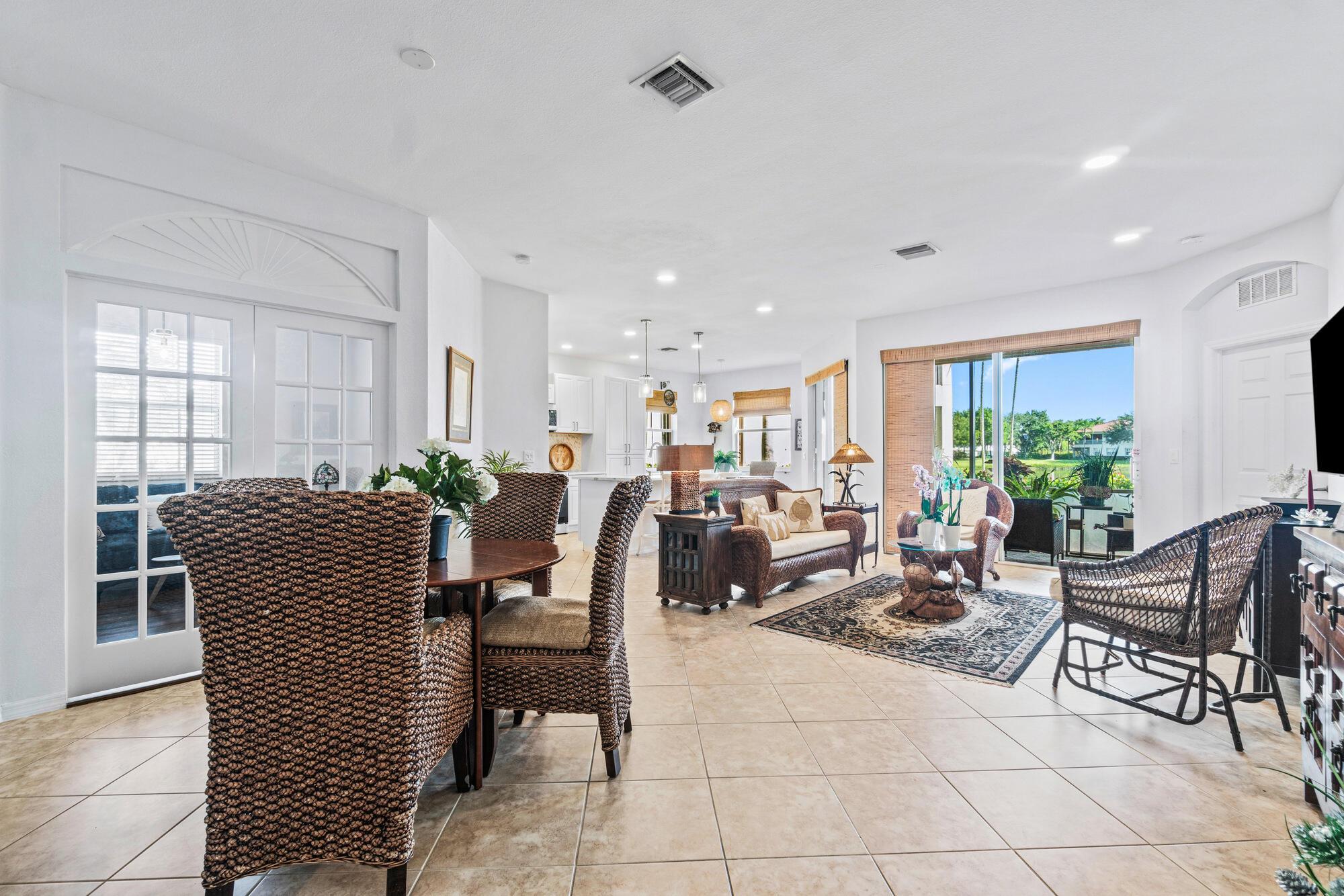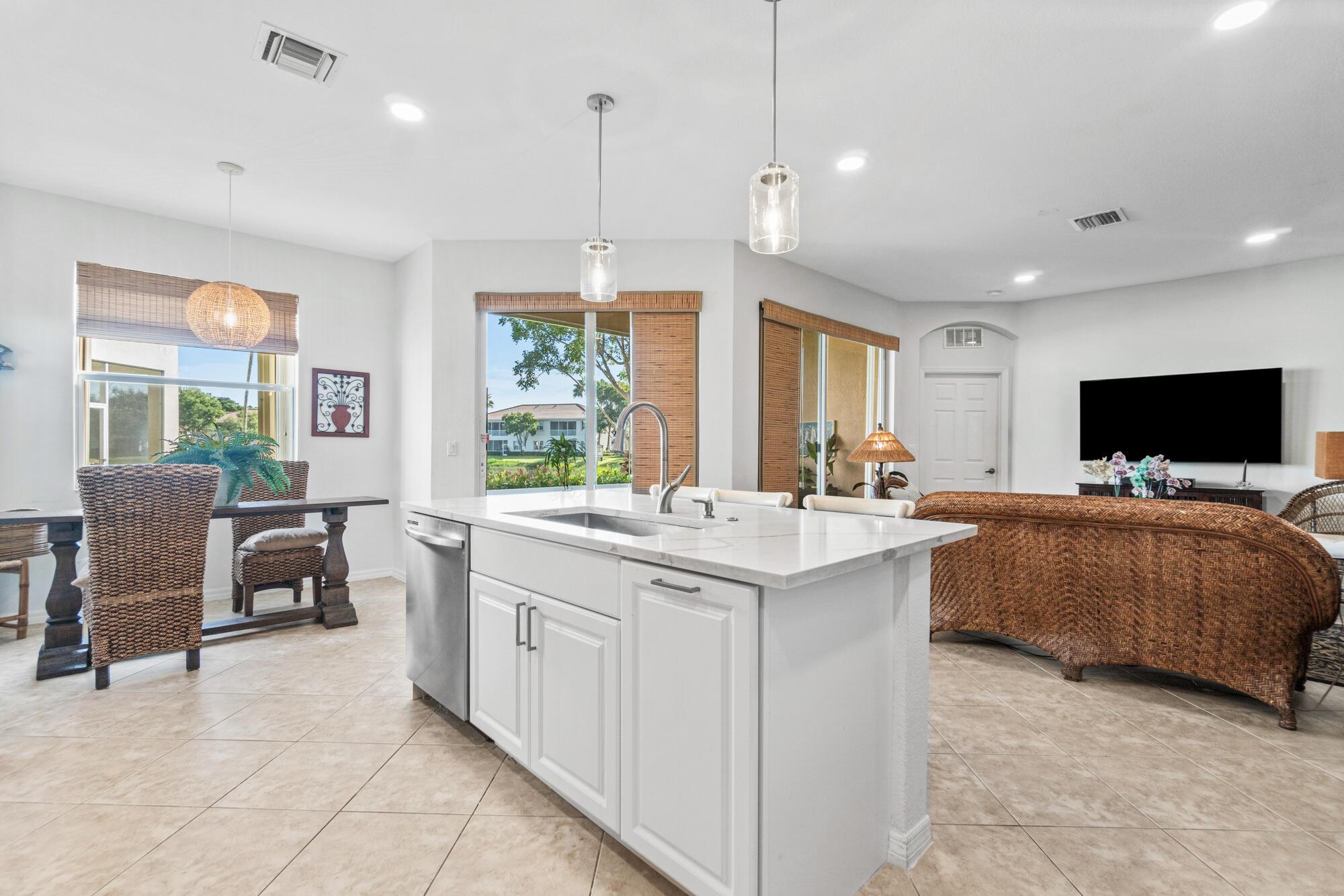 Gorgeous waterfront condo for sale in Wellington's highly sought-after active adult 55+ community, Mayfair at Wellington! This spacious first-floor condo offers 3 bedrooms, 2 bathrooms, a 2-car garage, and over 1,800 square feet of living space. Located in the heart of Wellington you'll enjoy convenient access to shopping, dining, and the renowned WEF showgrounds and Global Dressage, which are just minutes away! As you enter the covered and screened entryway, you'll be greeted by a foyer that flows seamlessly into the open living and dining areas. The kitchen, newly renovated in August 2023, showcases 42'' cabinets, quartz countertops, tile backsplash, pantry, and breakfast bar. It also features new stainless steel appliances (August 2023) and a cozy breakfast nook.