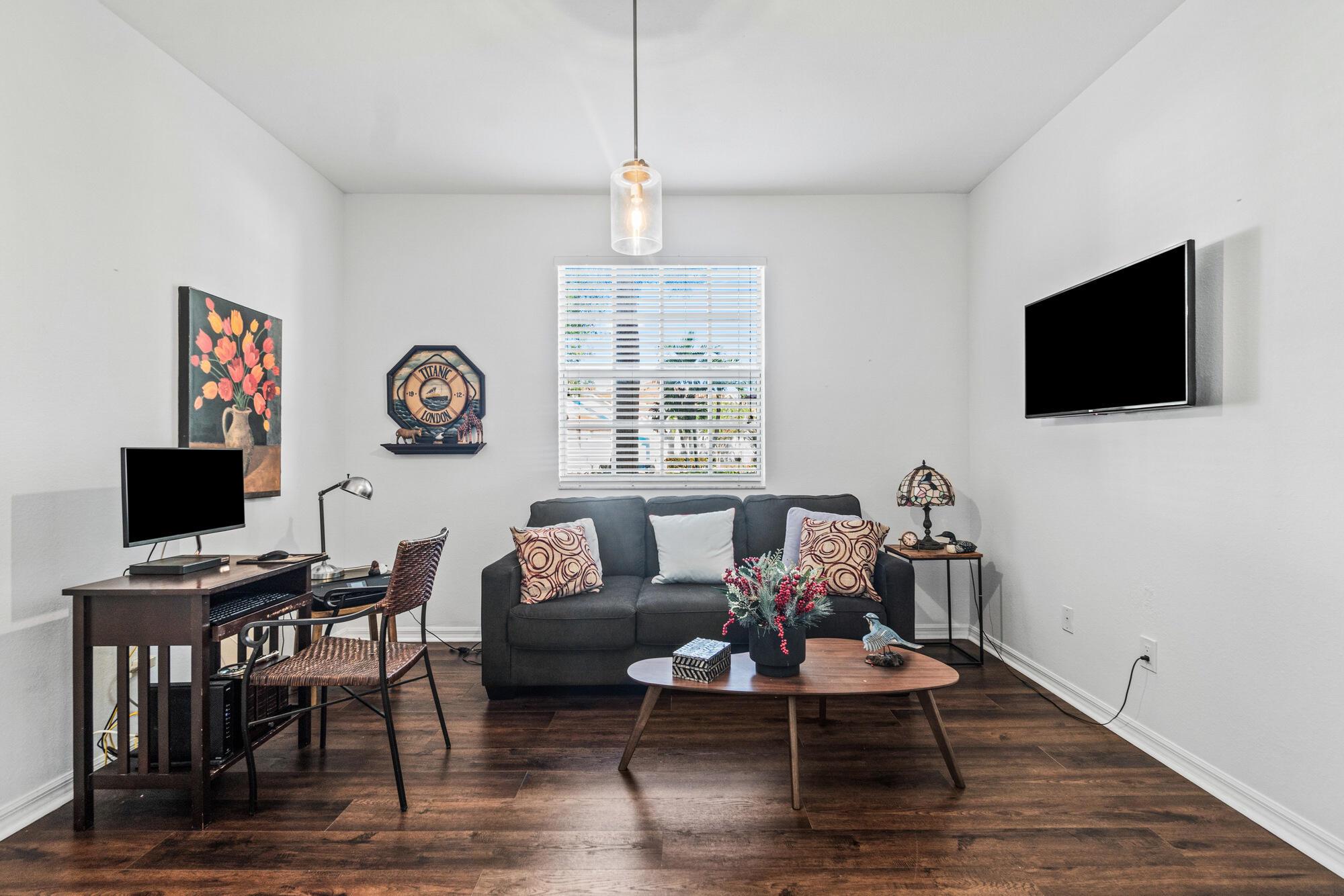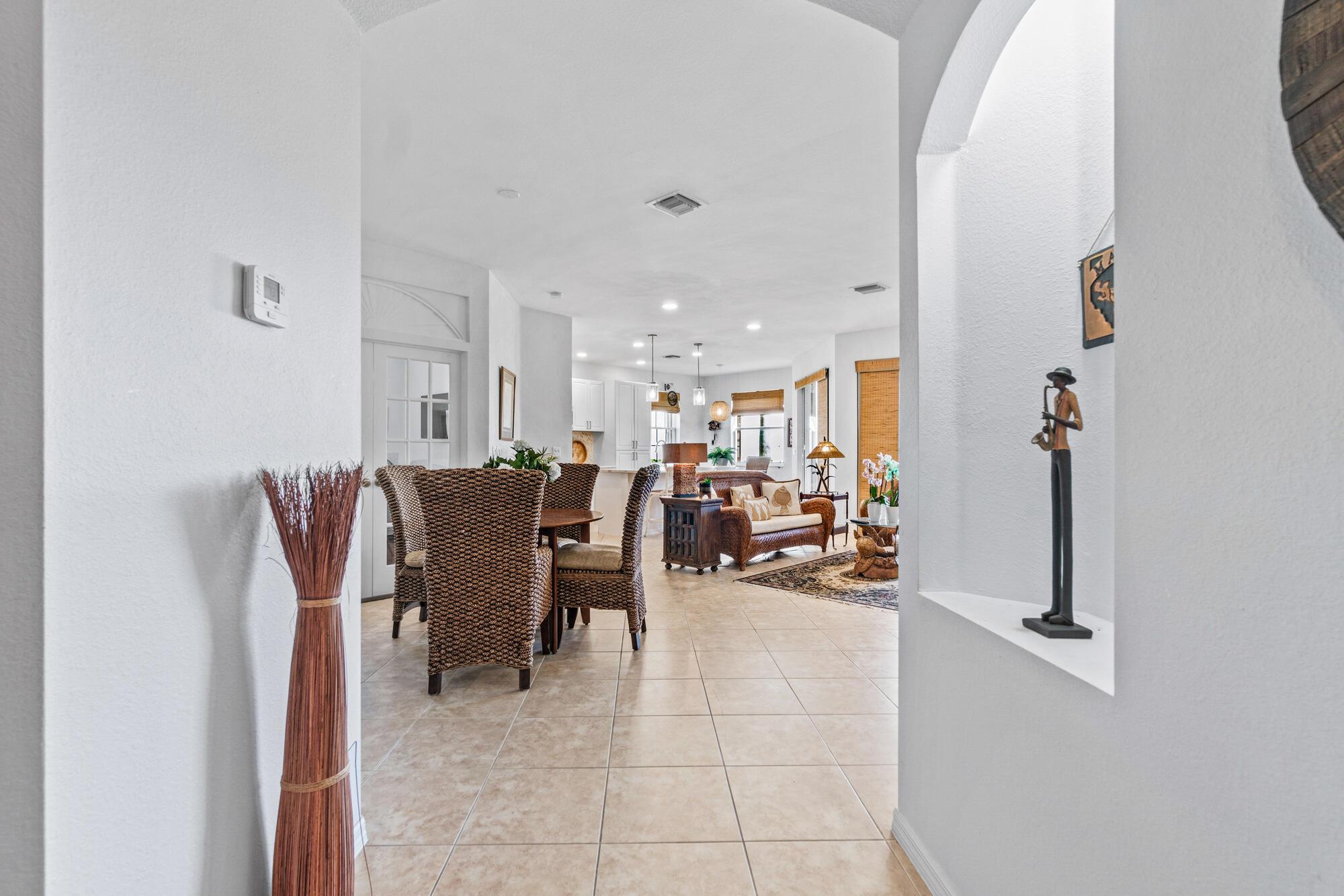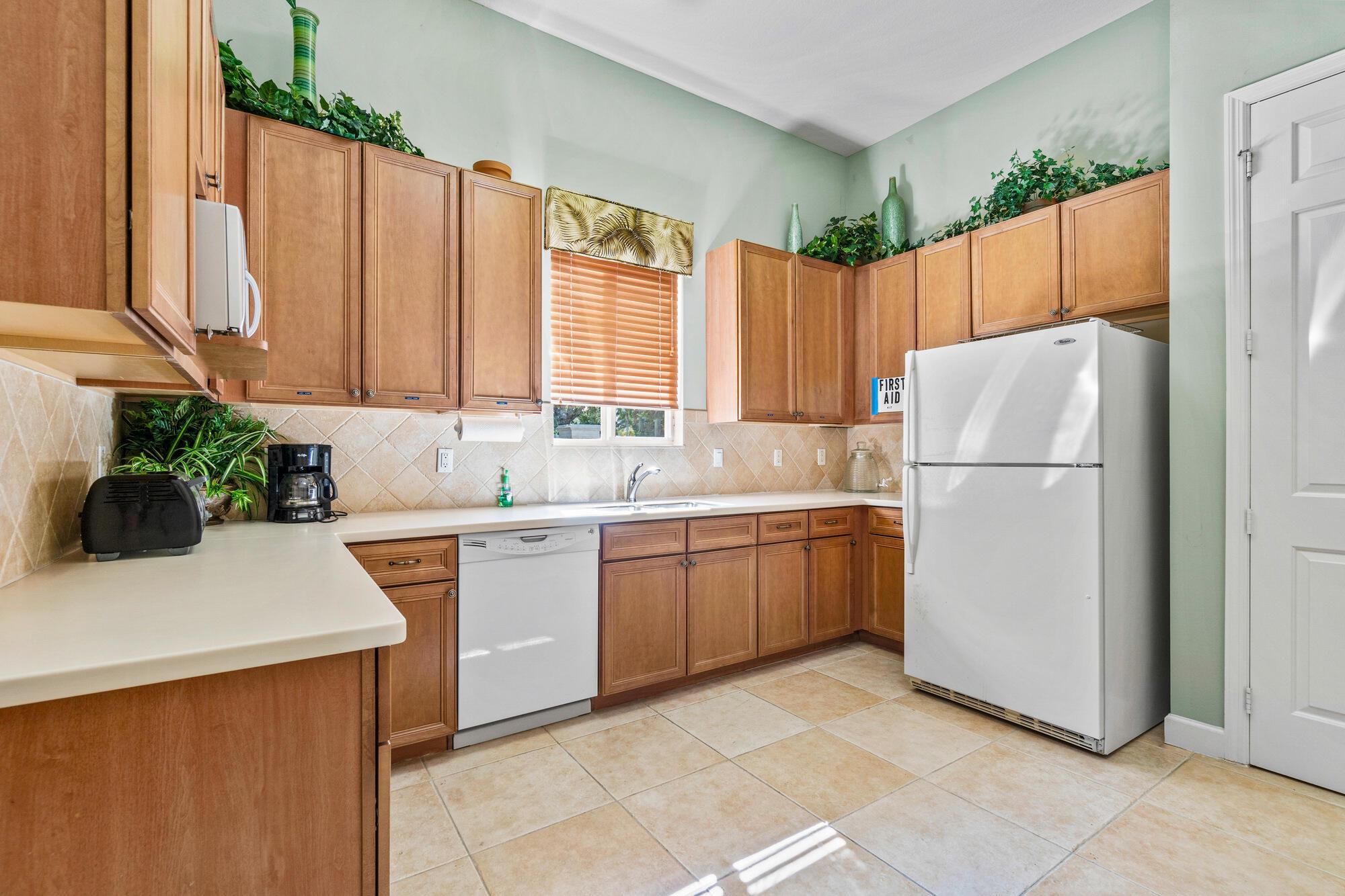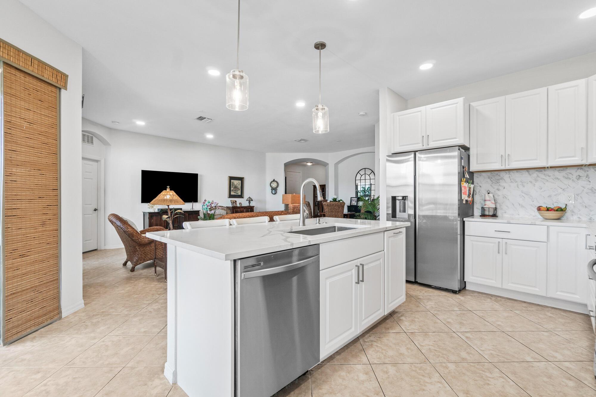 Gorgeous waterfront condo for sale in Wellington's highly sought-after active adult 55+ community, Mayfair at Wellington! This spacious first-floor condo offers 3 bedrooms, 2 bathrooms, a 2-car garage, and over 1,800 square feet of living space. Located in the heart of Wellington you'll enjoy convenient access to shopping, dining, and the renowned WEF showgrounds and Global Dressage, which are just minutes away! As you enter the covered and screened entryway, you'll be greeted by a foyer that flows seamlessly into the open living and dining areas. The kitchen, newly renovated in August 2023, showcases 42'' cabinets, quartz countertops, tile backsplash, pantry, and breakfast bar. It also features new stainless steel appliances (August 2023) and a cozy breakfast nook.