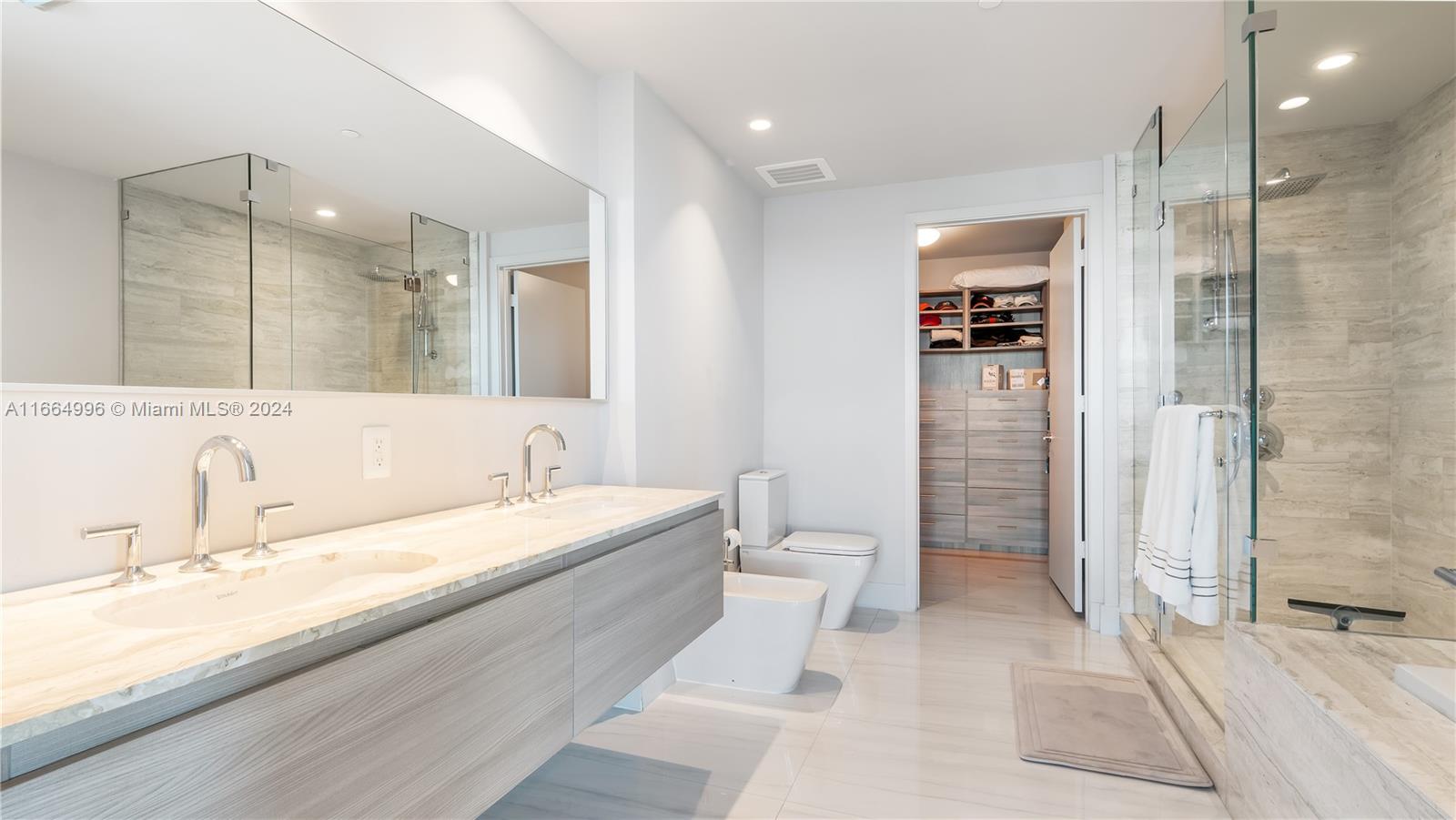 Stunning, spacious and bright corner unit, designed by a professional, made for a family. This perfectly laid-out unit with 3 BR's + den, 4 BA, open concept kitchen design on to the grand room, with direct access to a terrace with a mesmerizing, calming and serene Bay view, direct and unobstructed. Porcelain ties all through-out; private entry foyer, 10' ceilings height, upgraded sink cabinetry in every bathroom. Absolute perfection! The lifestyle is unmatched. Biscayne Beach has a Beach Chic design curated by Tom Felicia. Amenities include: Beach Club with Cabanas, multiple pools, tennis court, Club Room, Fitness Center & Spa, Dog Park, ... Unit includes 1 assigned parking space, with option of converting it into a tandem, inquire within; storage included #TSC31 level BC
