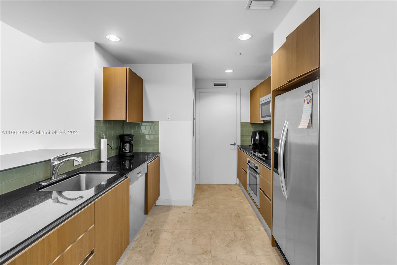 Spacious and light filled on the 33rd floor! 1BD/1.5BA apartment overlooks Brickell Avenue, views of the Bay and City. It features Italian cabinets in the kitchen and bathrooms, marble flooring throughout, stainless steel appliances, and an in-unit washer and dryer. The luxury building boasts a wealth of amenities including a pool, spa, gym, sauna, conference room, virtual golf, cigar and wine cellar, and more. Services include 24/7 valet and a front desk attendant. It's pet-friendly and situated in the heart of Brickell's financial district, just steps from fine dining, shopping, public transport, nightlife, and the financial district. The condominium is well-regarded and meticulously maintained.