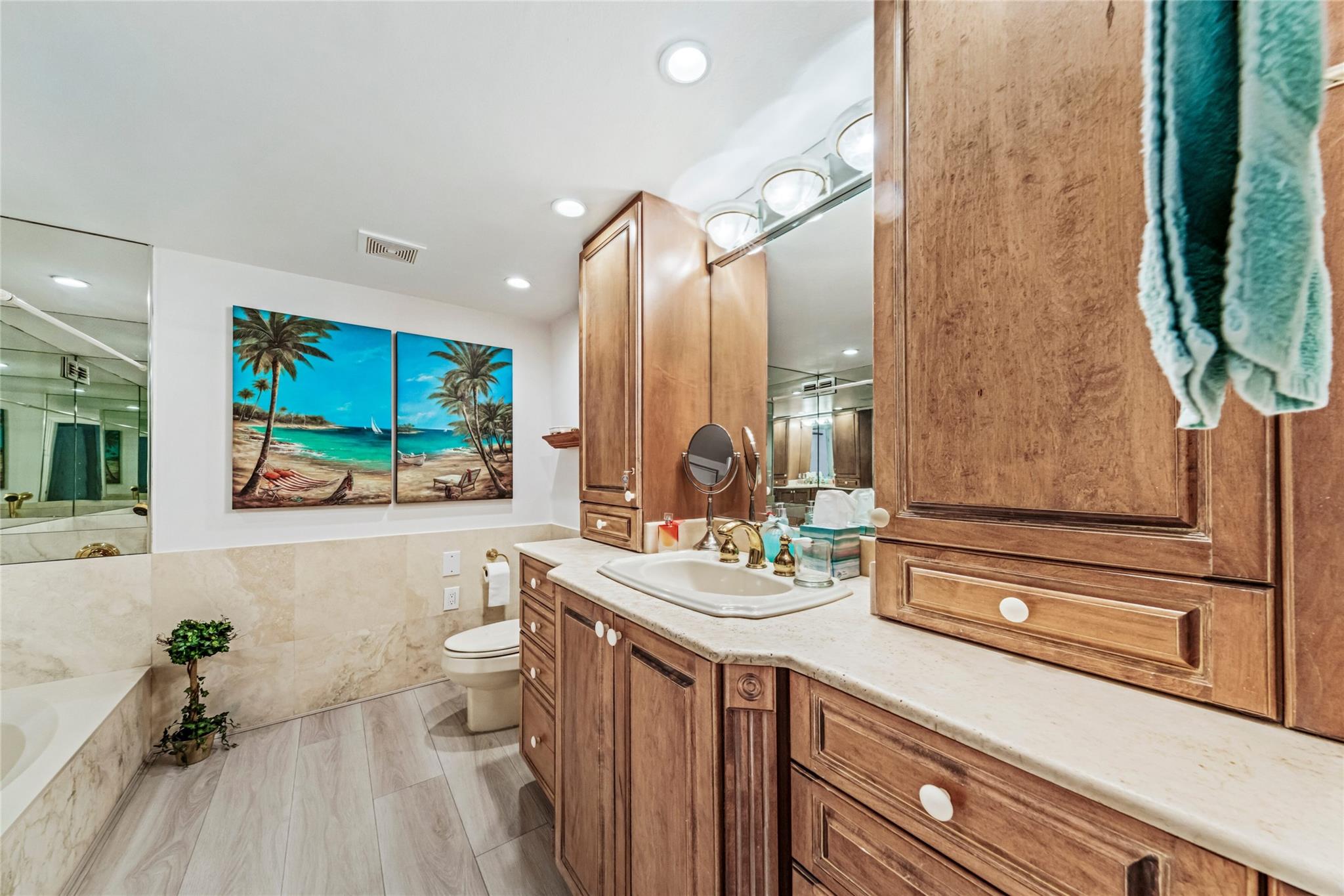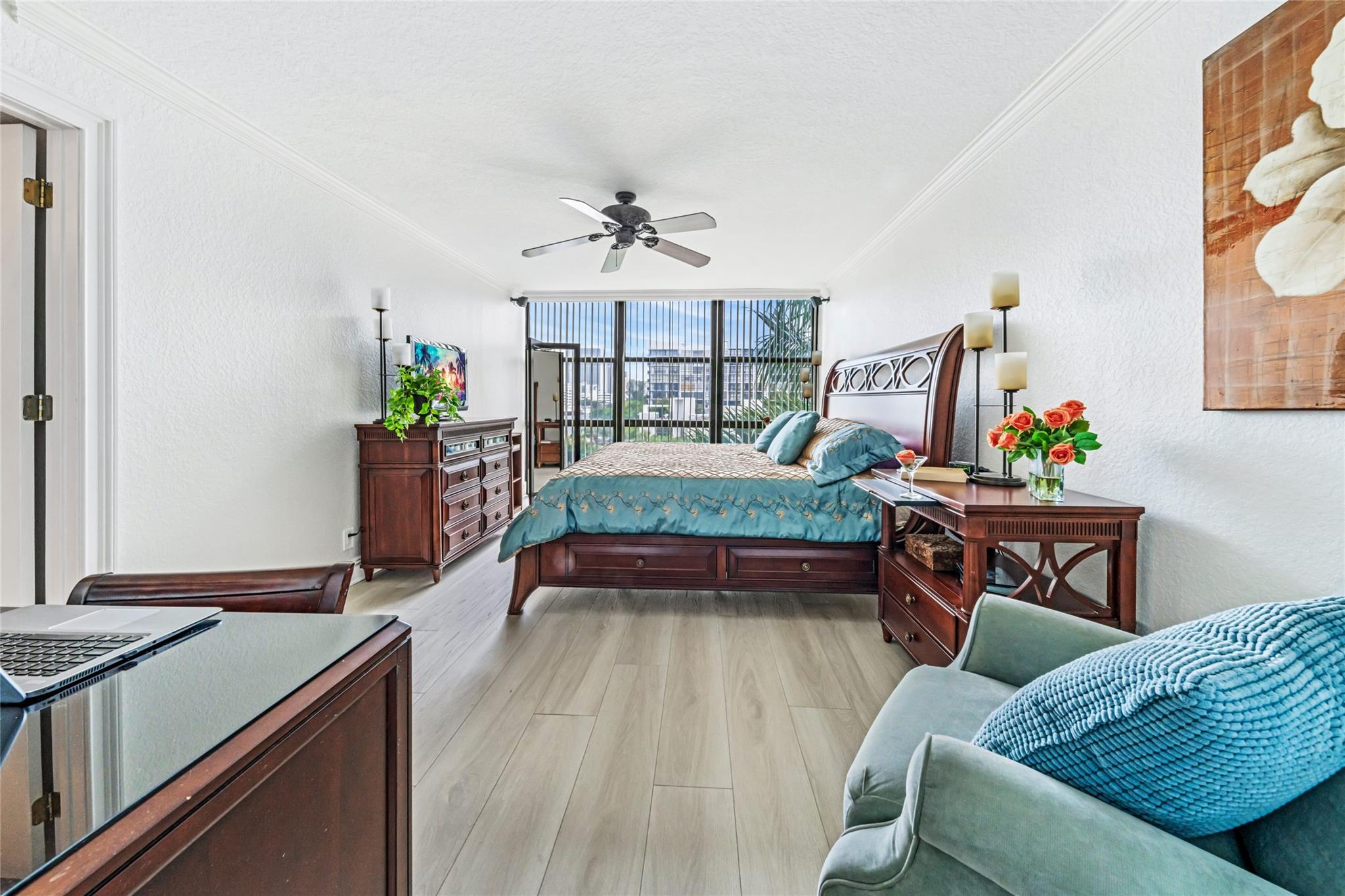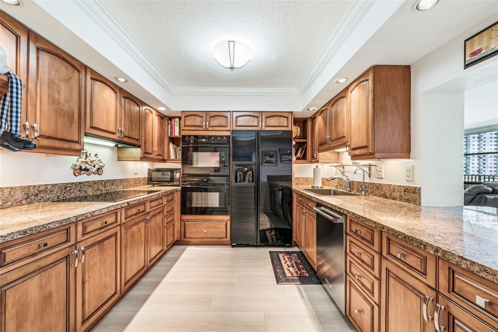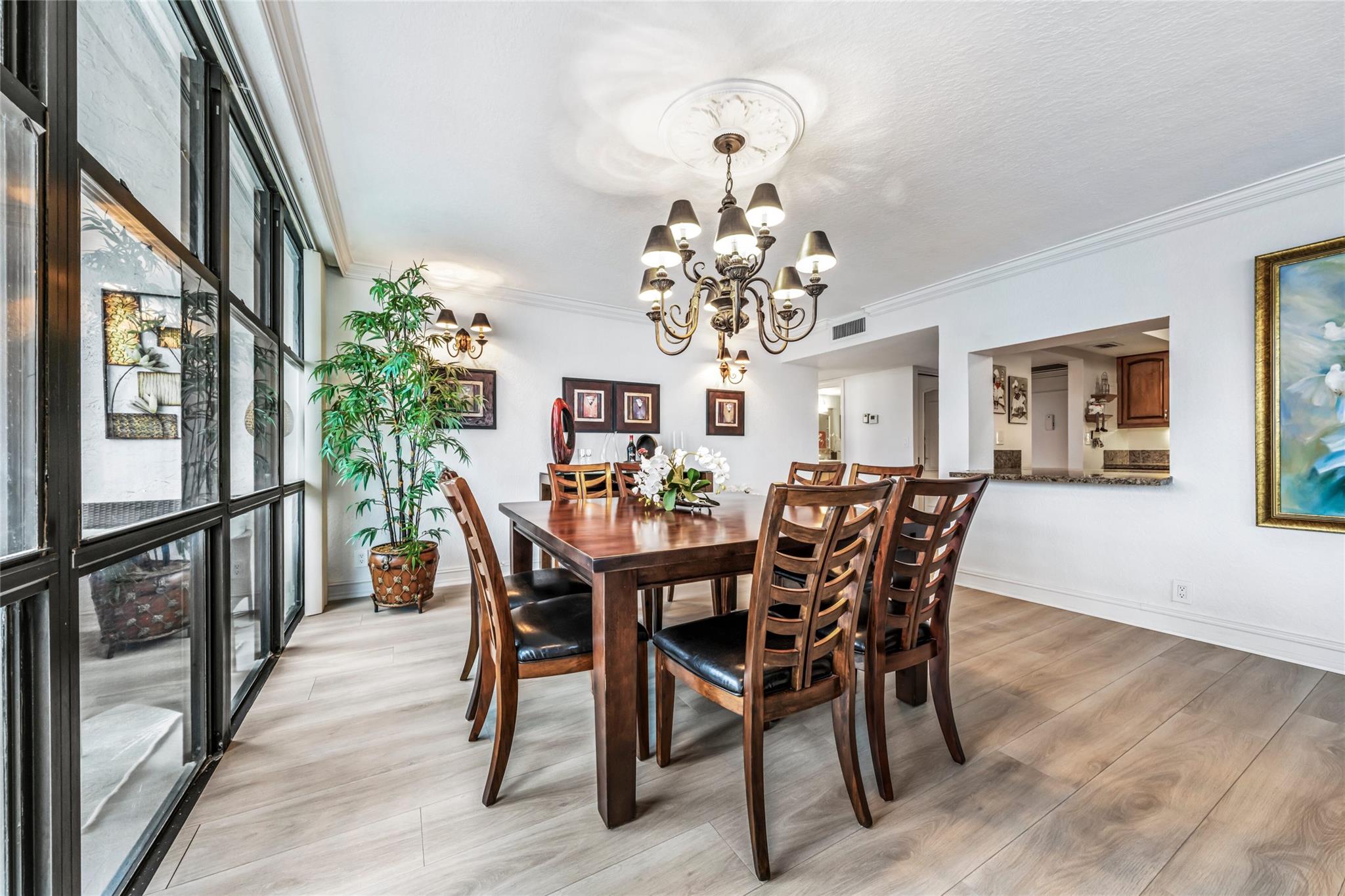 Indulge in luxury from the moment you step into this renovated, 3 bedroom (3rd bedroom has wardrobe cabinet) Oceanview Park condo at Three Islands. Immediately, be captivated by stunning SouthEast views of the Intraoastal Waterway through floor-to-ceiling windows. This corner residence spans 1,430 square feet (1,756 square feet with balcony). Revel in the bright, beautifully floored (waterproof vinyl) space throughout with natural light. The expansive wrap-around balcony embodies the essence of Florida living, offering unparalleled panoramas. Resort style amenities include a waterfront pool, tennis courts, fitness area and more. This renovated condo presents a waterfront haven in and ideal location with unmatched panoramic views.