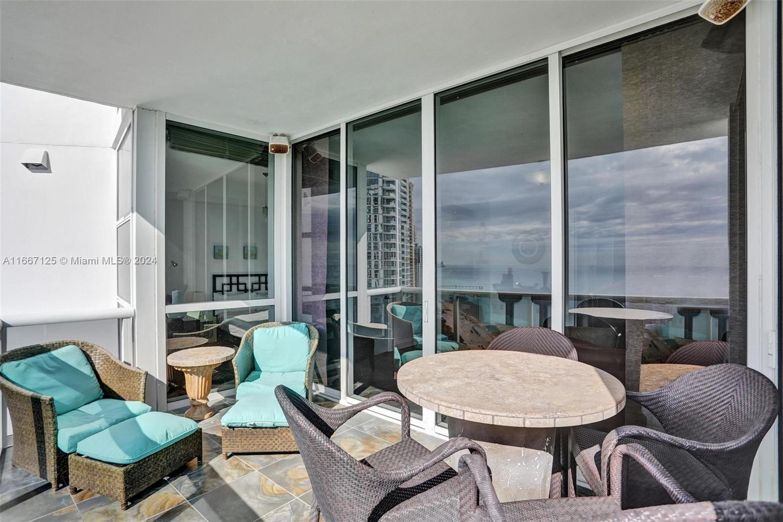 Experience luxury living in this flow-through 3-bedroom, 3.5-bath residence at Trump Palace, Sunny Isles Beach. This stunning unit offers breathtaking ocean and Intracoastal views from two expansive terraces. Featuring an open floor plan, marble floors, and floor-to-ceiling windows, the home is bathed in natural light. The kitchen boasts top-of-the-line appliances and granite countertops. Each bedroom has its own en-suite bath, providing privacy and comfort. Enjoy 5-star amenities, including pools, a fitness center, spa, tennis courts, and beach service. This unit is for sale with a rarely available private beachfront cabana for the ultimate beachfront experience.