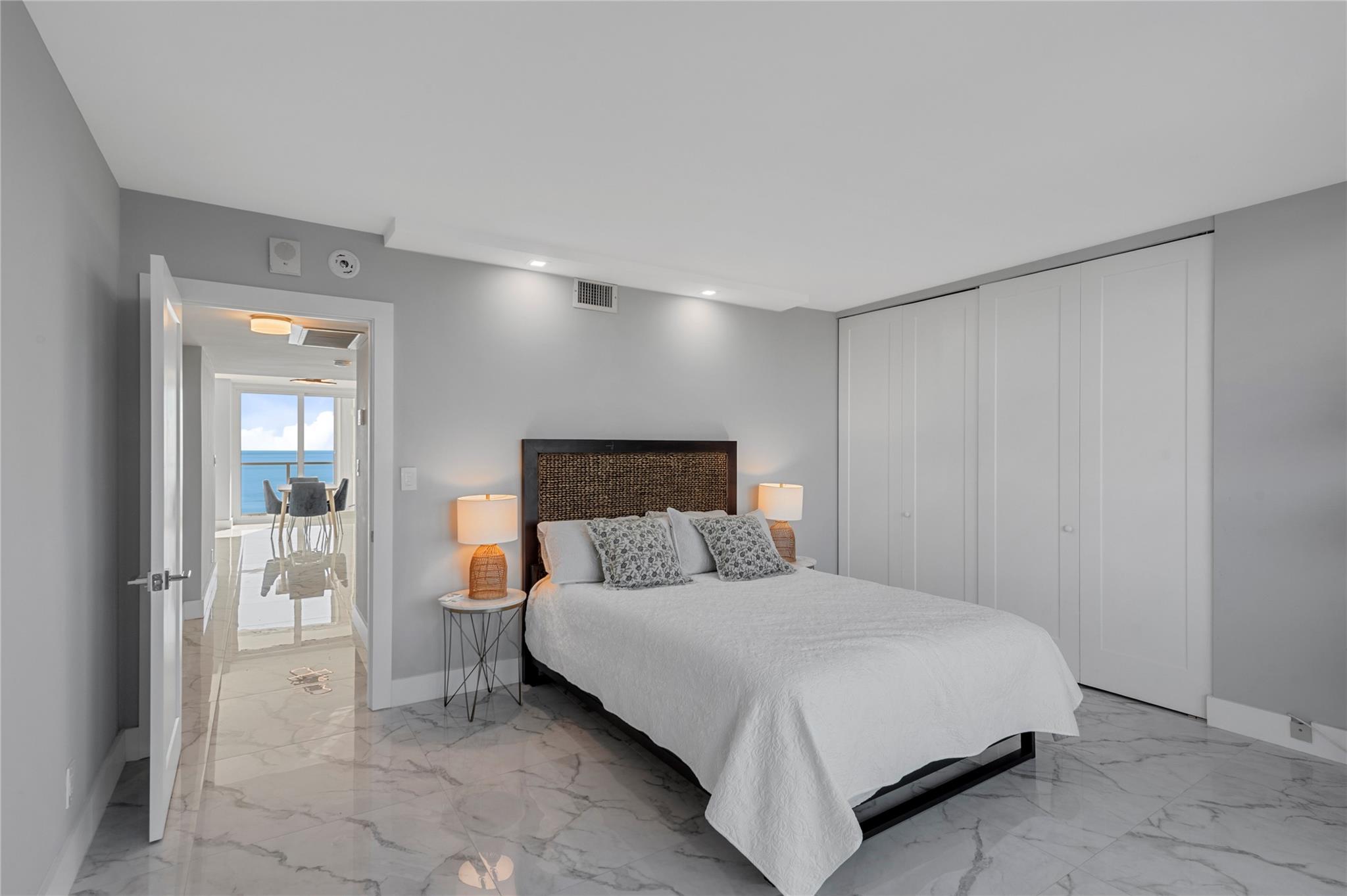 Priced to sell! Enjoy stunning sunrises over the ocean, and sunsets over the Intercoastal Waterway, with breathtaking views from this renovated 9th floor 2-bed, 2-bath condo directly on the oceanfront. Unobstructed east-and-west facing views through floor-to-ceiling sliding glass doors. Large-tile floor features throughout, with full impact glass and new appliances. Ample closet space, separate laundry room, additional dedicated basement storage. Building has undergone recertification and is fully up to date. Reserves are fully funded. Building features a grand lobby including 24-hour security desk, complimentary valet and on-site management/staff. Community features include covered parking, large ocean-facing club room, gym, heated pool and direct beach access.
