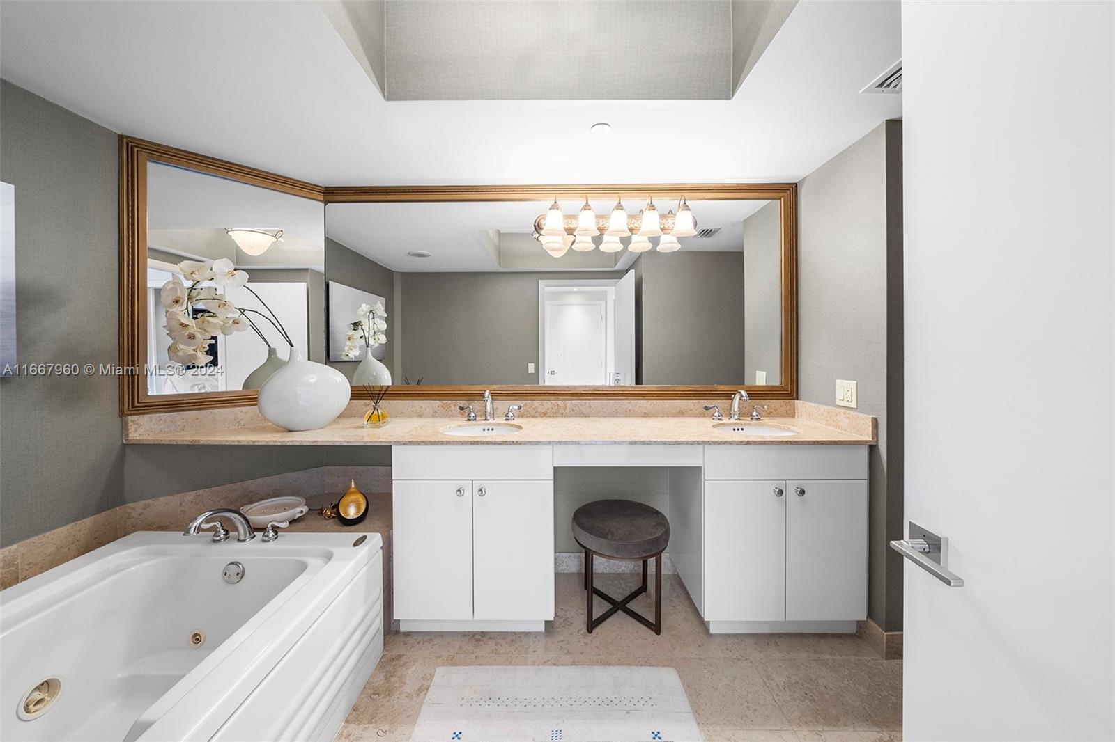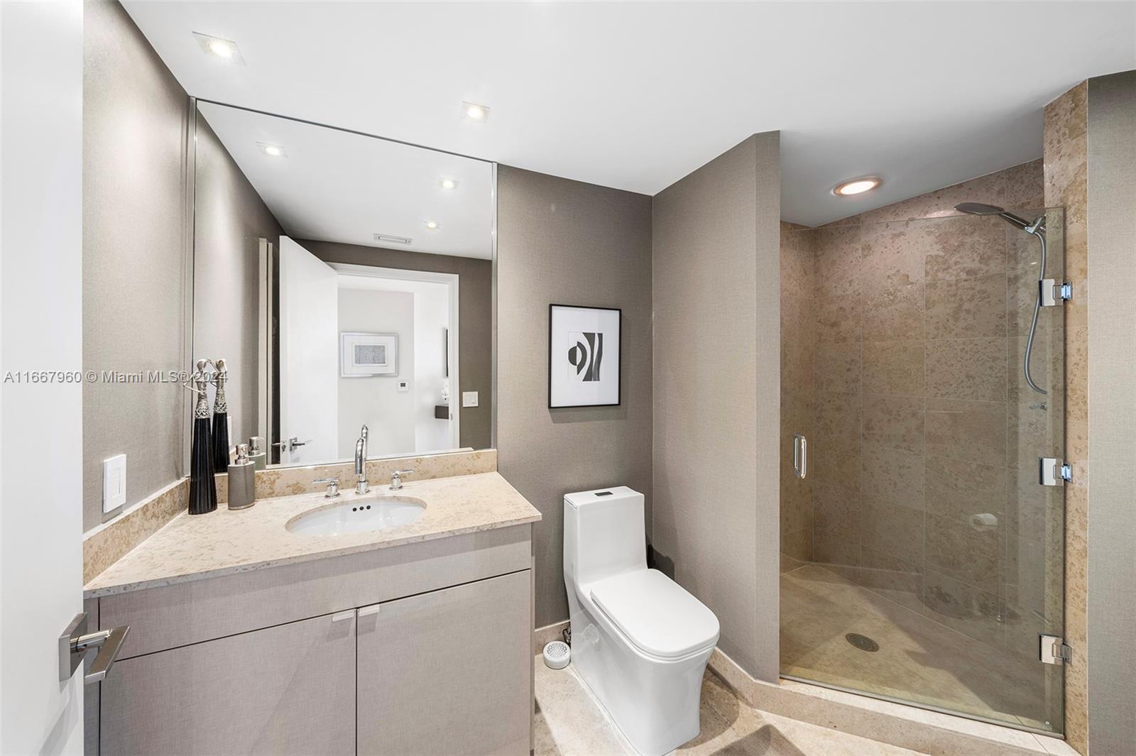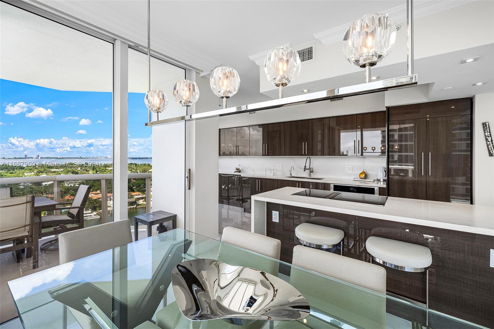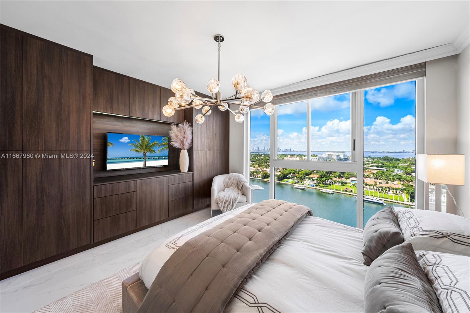 Stunning 2-bedroom, 2-bath corner unit in the prestigious Blue Diamond, Mid-Miami Beach. This beautifully renovated SW corner residence features a wrap-around terrace offering breathtaking views of the Miami skyline, ocean, and bay. Porcelain white flooring throughout creates an airy, modern feel. The open kitchen boasts high-end finishes and flows seamlessly into the large living and dining area, perfect for entertaining. The redesigned primary suite offers ample space, built-ins for generous closet storage, and an en-suite bathroom. The second bedroom also features a walk-in closet and built-ins, maximizing space and functionality. Enjoy luxury living with Blue Diamond's exceptional amenities and services, all in a prime location.