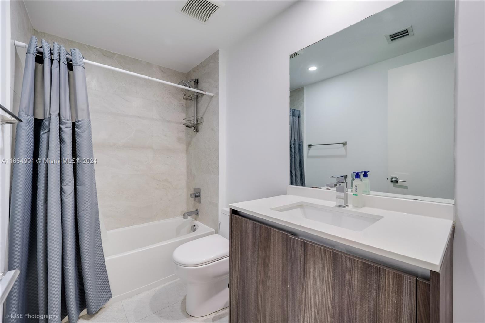 Luxurious 1 bed + den, 2 bath condo with private elevator and foyer, spanning 888 sq. ft. The den easily converts to a second bedroom or office with its own full bath. Enjoy spacious closets, top-tier appliances, and access to three floors of premier amenities, including pools, a gym, yoga studio, game room, and sports courts. Located waterfront in Edgewater’s Arts & Entertainment District, just minutes from Brickell, Wynwood, and the Design District.