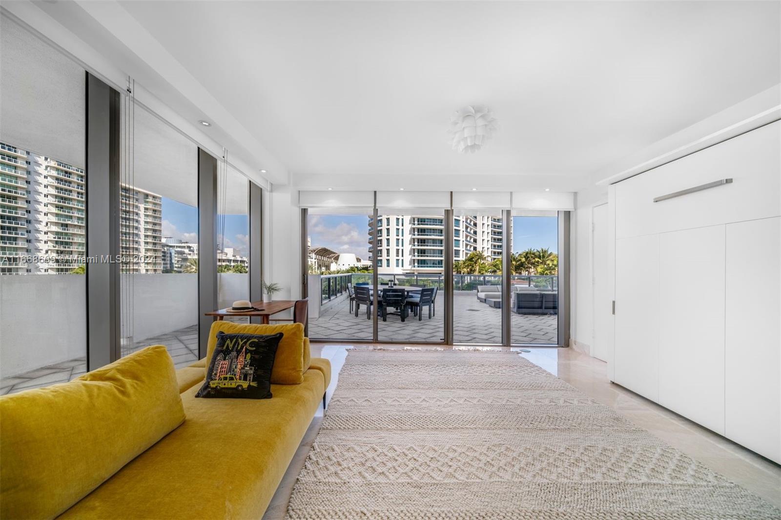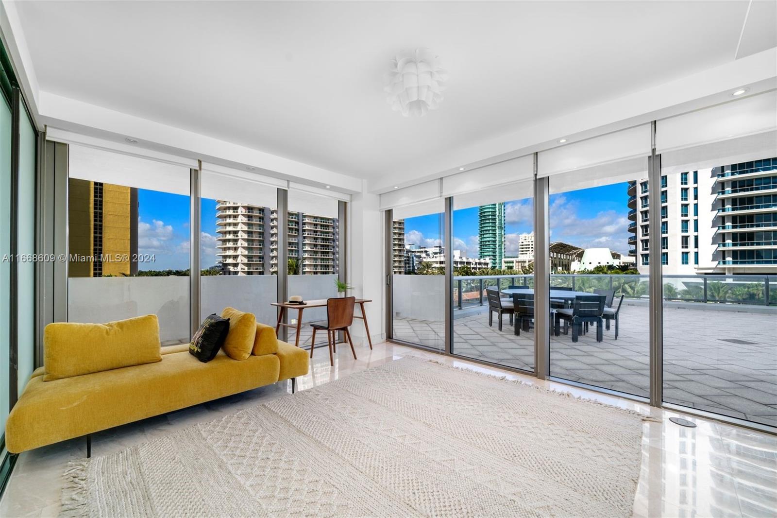 Enjoy this rarely available corner Lanai unit at the boutique MEi Miami Beach. This stunning 2 bed, 2.5 bath residence includes an expansive 1500 sqft terrace. Ideal for entertaining and sunrise and sunset views. The second bedroom features a murphy bed. The MEi is a boutique condominium with 134 residences, offering 5-star service, valet parking, beach access + service, a state-of-the-art pool, fitness center, library, steam room, spa, and more.