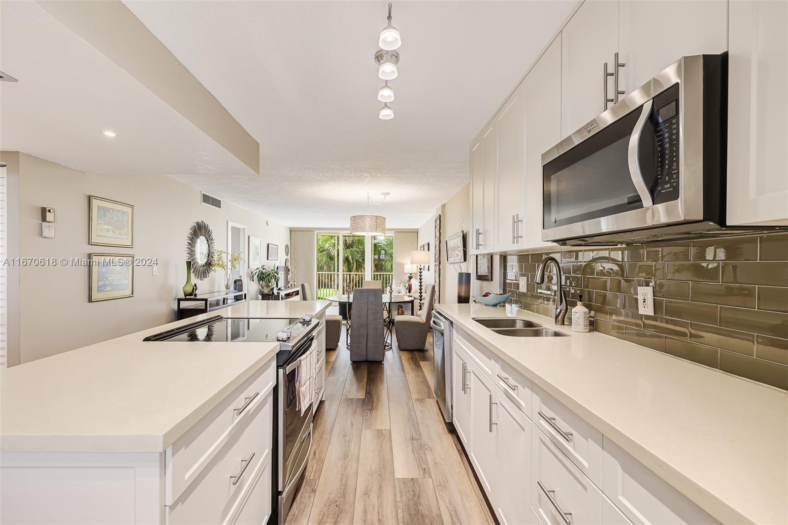 Stop here and look ... Amazing part of Plantation awaits this fully renovated 2/2 offering a spacious split floor plan w fabulous views of Jacaranda Golf course w a private like tranquil setting. Seller spared no expenses in this remolded unit... As follows / 2016 New open concept kitchen that offers Stainless Whirlpool appliances, Quartz countertops, custom subway tile backsplash, new lighting and double sink ... Both bathrooms where completely redone w walk in showers, high end wood laminate floors, all the pop corn removed in living area, Impact windows & doors... A/C inside (2015 and 2020) on the roof, water heater 2021... Newer light fixtures and window treatment, furniture may be sold separate... This unit shows like a model & is priced to sell... Coronado has solid financials !
