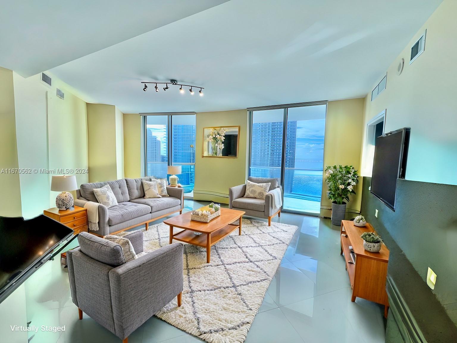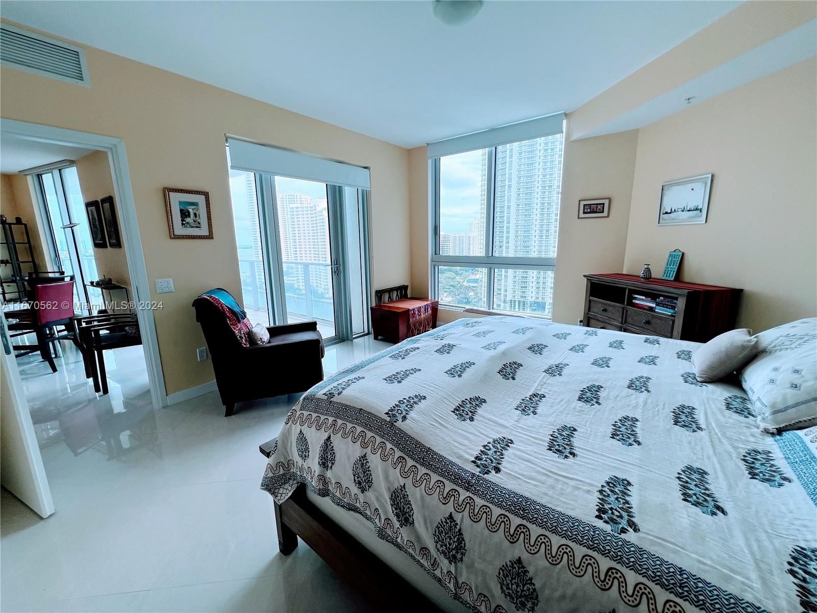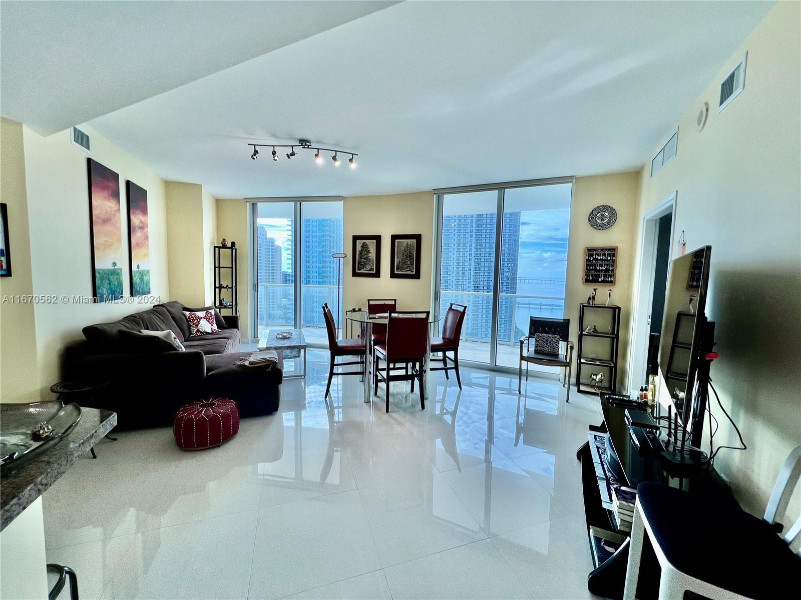 Best line in the building! Spacious 2BD/2BA condo, huge balcony offering stunning views of the bay and ocean. East exposure. Features elegant tile floors throughout. Located in the sophisticated Met 1 building in downtown Miami. Sliding doors in all rooms make it a very bright residence with views from every angle. Open kitchen with granite countertops, Italian cabinetry & stainless steel appliances. Electric shades in the living room. Newer washer and dryer. One assigned parking space. Walk to Whole Foods Market, Bayfront Park, metro mover, Novikov Restaurant, Gordon Ramsay Hell's Kitchen, Joe & the Juice plus 17 screens' Silverspot Cinema at Met Square. Building offers luxurious life style, 24-hr front desk attended. Chic downtown living at its best! Pool is closed for repairs.