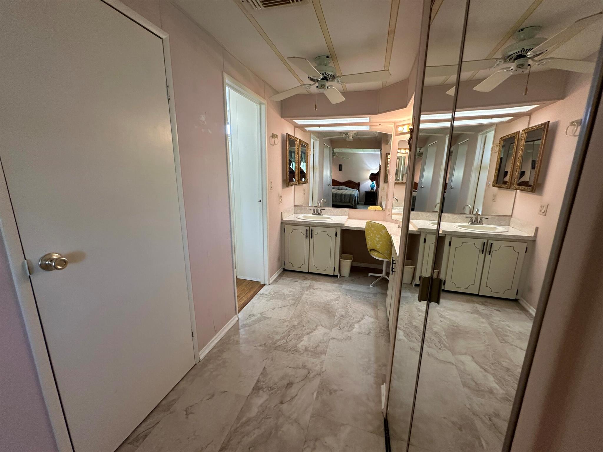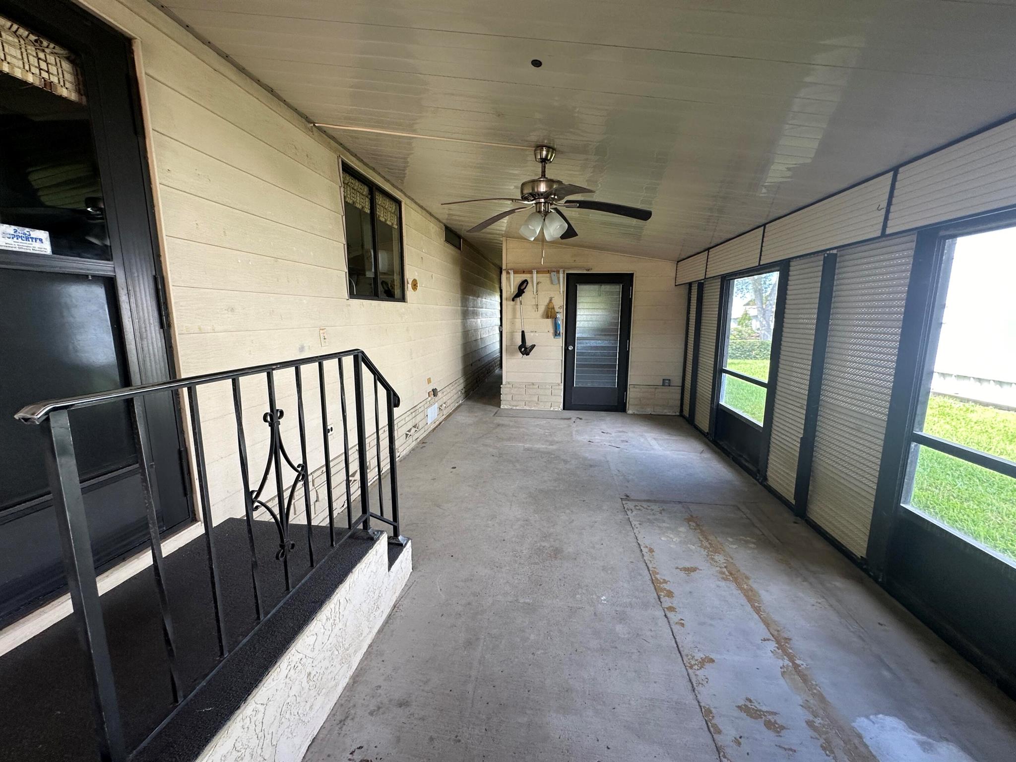 Lovely 2 Bedrm/2 Bath Manuf home in Cambridge 55+ community in Hobe Sound. REAL WOODBURNING FIREPLACE for occasional chilly nights. 1254 SF under A/C w 2 ADDITIONAL SCREEN ROOMS for your pleasure w roll down shutters! 2023 New Flooring in Kitchen, dining room & Primary Bedrm & bath. The Living Room is very large (13X23) w the formal Dining Room adjacent. The Kitchen is also large with newer Stainless appliances. The Primary Bedroom is large w so much storage. Primary bathroom has dual sinks, make up vanity, walk in closet & 2 additional closets & step in shower. The 2nd Bedrm is a good side w a walk in closet & full bath on the hall. The Front Lanai faces east for the morning sun & those famous Hobe Sound Breezes. YOU OWN THE LAND - ALL PETS WELCOME. 2017 3 TON A/C - 2005 AMS Aluminum Ro