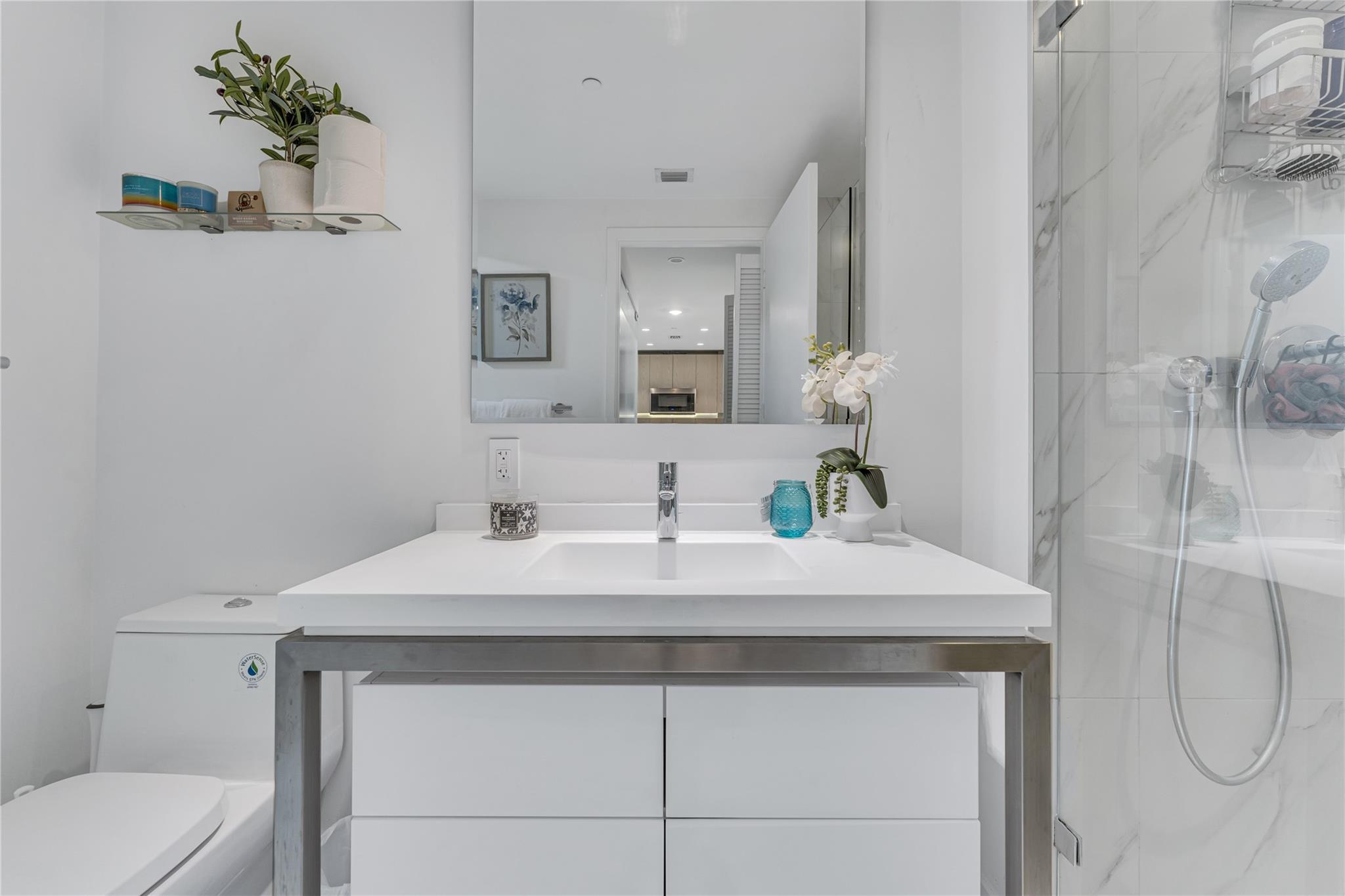 Experience a new level of luxury. This apartment features 2/2 with a DEN contemporary open living spaces equipped with stainless steel appliances & Hangsrohe fixtures , Italian cabinets, white quartz countertops, panoramic floor to ceiling glass impact windows, porcelain floor throughout. Resort inspired amenities include state-of-the-art fitness center by Technogym, spa, sauna & steam room, business center, kids playroom, theatre room, party room, indoor club room with bar, lounge, kitchen, event/party space, guest suite, inifity edge pool, jacuzzi, BBq area, 2 full size tennis courts, pet spa & 24 hr security & valet NOTE: CLOSED IN DEN BEING USED AS AN ADDITIONAL BEDROOM MAKING IT A 3/2 with full price willing to remove glass!