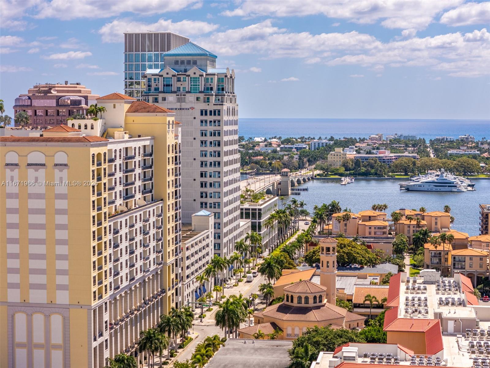 Large & light-filled South-facing unit with elegant foyer entry and open views. 2 Bedrooms + large Den and 3 Full Bathrooms with polished marble flooring throughout. The oversized Den could be utilized as a 3rd bedroom. Motorized shades on all windows. 2 Assigned parking spaces just steps from the unit - plus storage located on the same floor. One City Plaza offers a rooftop pool with jaw-dropping views of Palm Beach island, 24-hour security, 24-hour front desk staff, fitness center, steam room, sauna and more. Palm Beach County Tax Roll shows this unit as a 3 bedroom/3 bathroom with 1,692 SF Living Area / 1,790 SF Building Area.