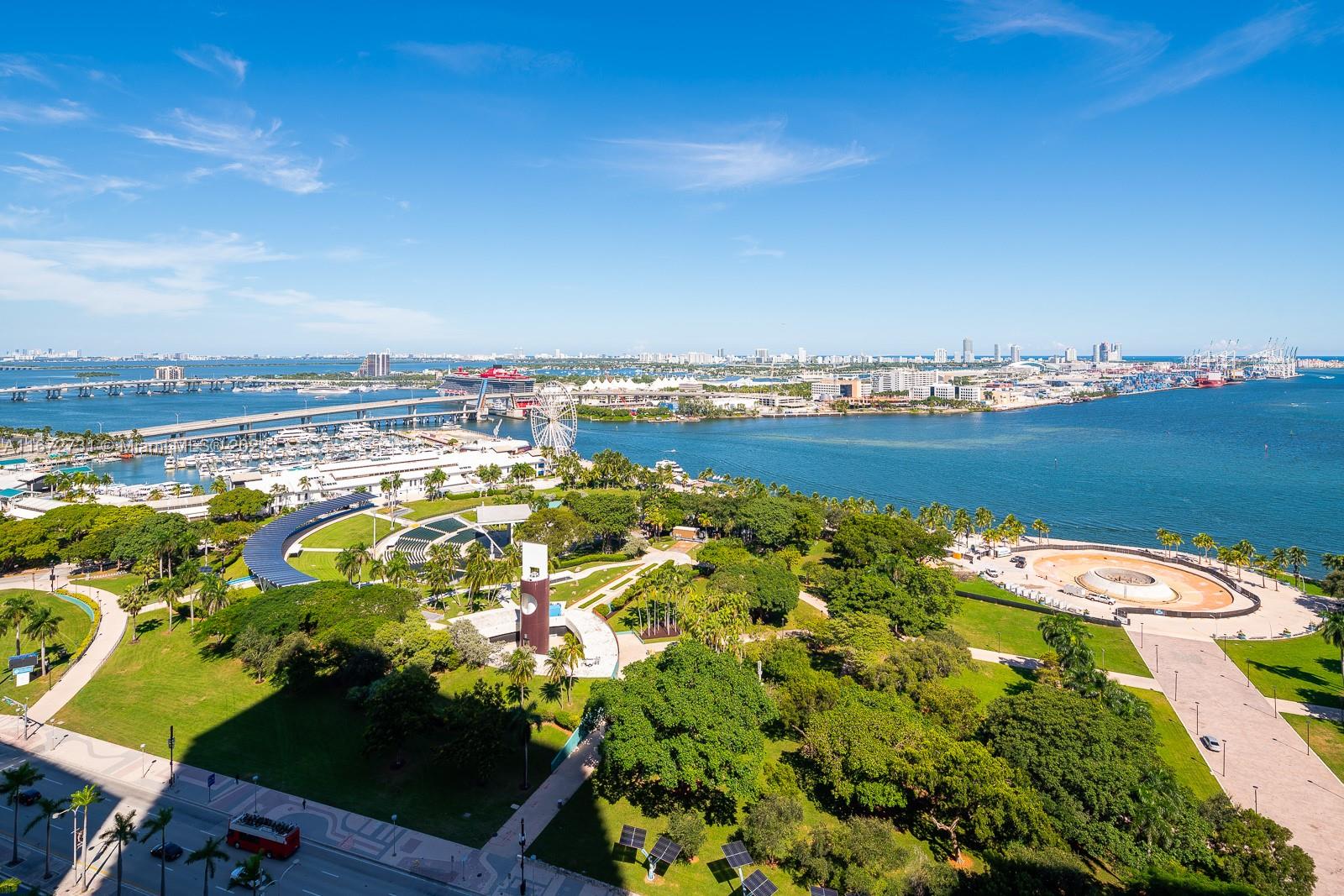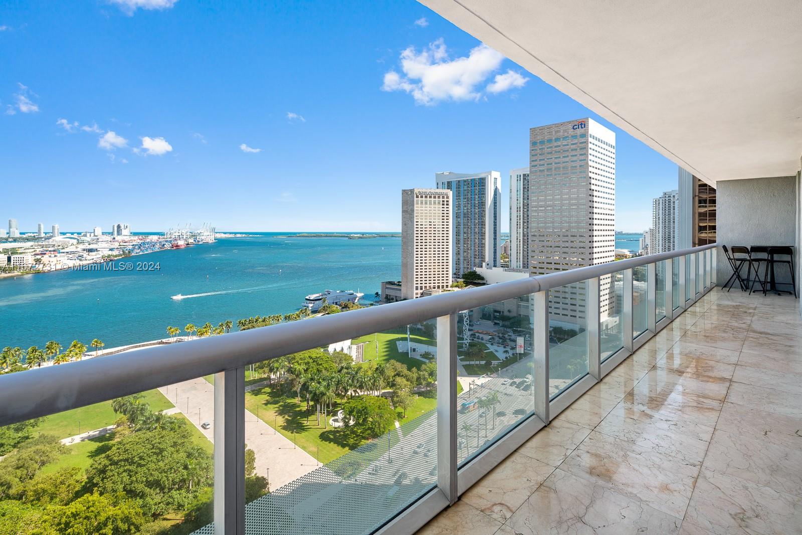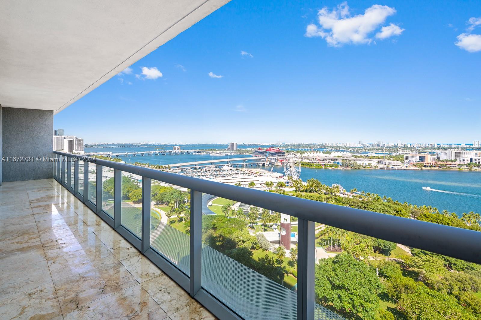 Direct and unobstructed endless views of the Biscayne Bay, Ocean, and South Beach from this upgraded 2 Bed + enclosed Den at 50 Biscayne. This unit's den has been outfitted with custom cabinetry throughout, converting into a 3rd room for guests or family via its foldable murphy bed system. Custom built-out closets, electronic window treatments, and marble flooring throughout are a few additional features that set 2406 apart. 50 Biscayne features a sun-drenched lap pool and jacuzzi, BBQ area and cabanas, fitness center with bay views, pilates and yoga room, sauna/steam rooms, and a business center. Located in the heart of Downtown Miami, 50 Biscayne is a quick walk to Whole Foods, adjacent to the rejuvanated Flagler Street, Julia & Henry's foodhall, Miami Worldcenter, Brickell, and more.
