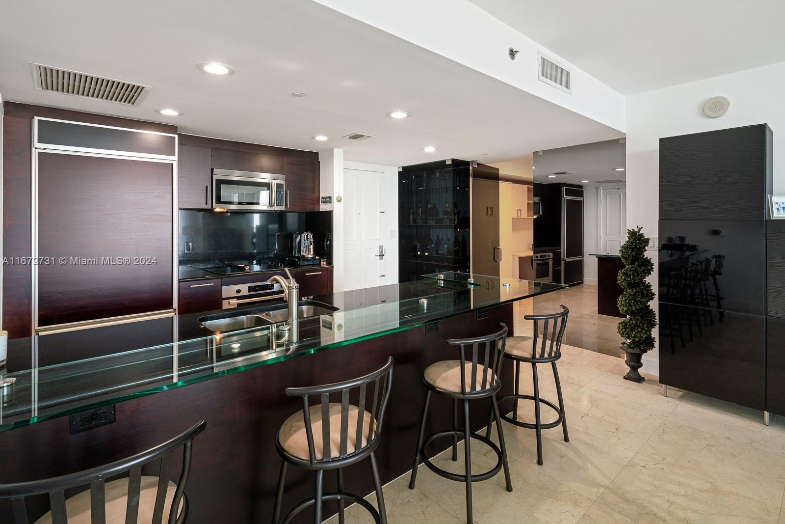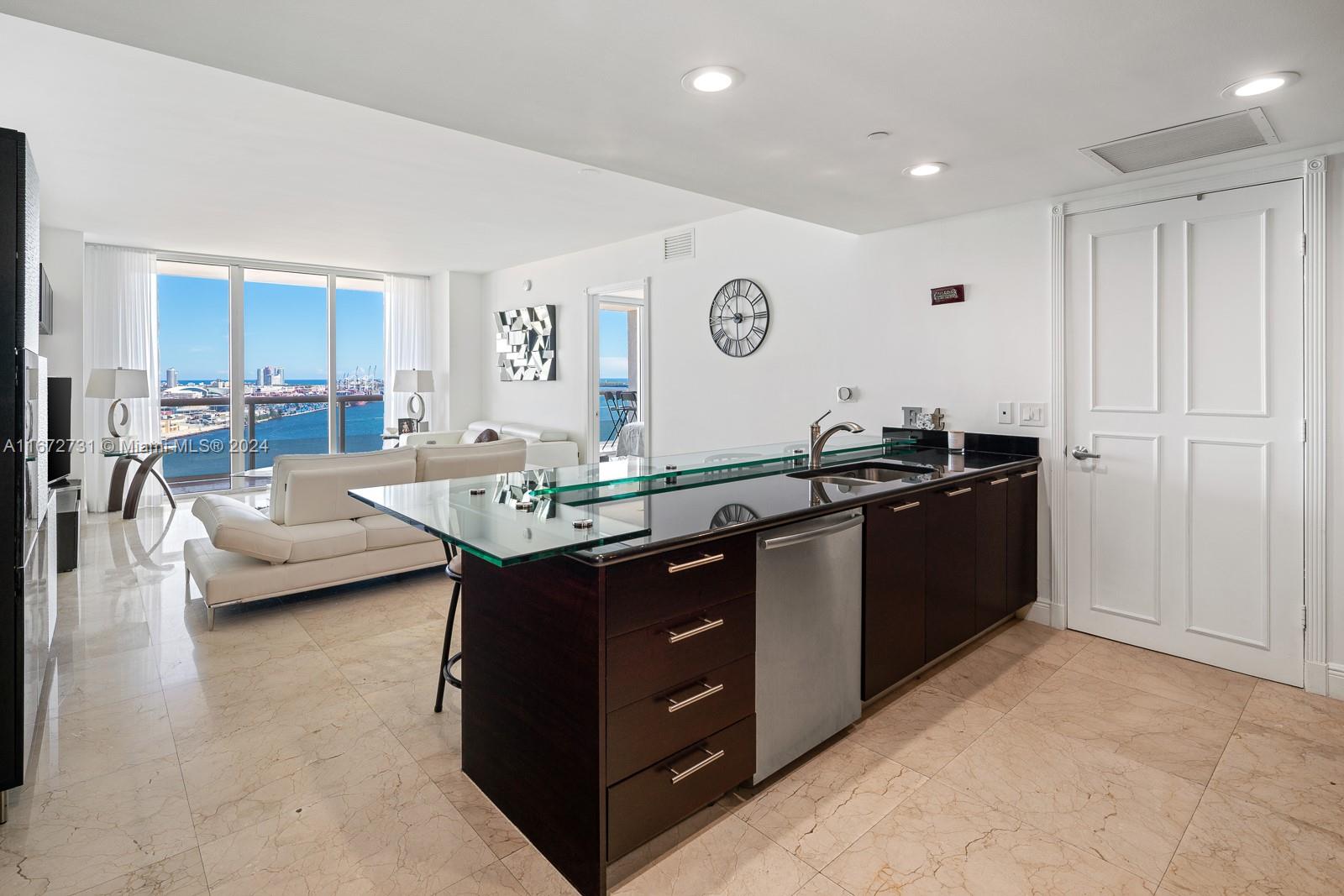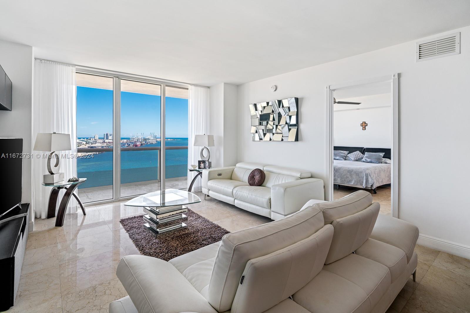 Direct and unobstructed endless views of the Biscayne Bay, Ocean, and South Beach from this upgraded 2 Bed + enclosed Den at 50 Biscayne. This unit's den has been outfitted with custom cabinetry throughout, converting into a 3rd room for guests or family via its foldable murphy bed system. Custom built-out closets, electronic window treatments, and marble flooring throughout are a few additional features that set 2406 apart. 50 Biscayne features a sun-drenched lap pool and jacuzzi, BBQ area and cabanas, fitness center with bay views, pilates and yoga room, sauna/steam rooms, and a business center. Located in the heart of Downtown Miami, 50 Biscayne is a quick walk to Whole Foods, adjacent to the rejuvanated Flagler Street, Julia & Henry's foodhall, Miami Worldcenter, Brickell, and more.