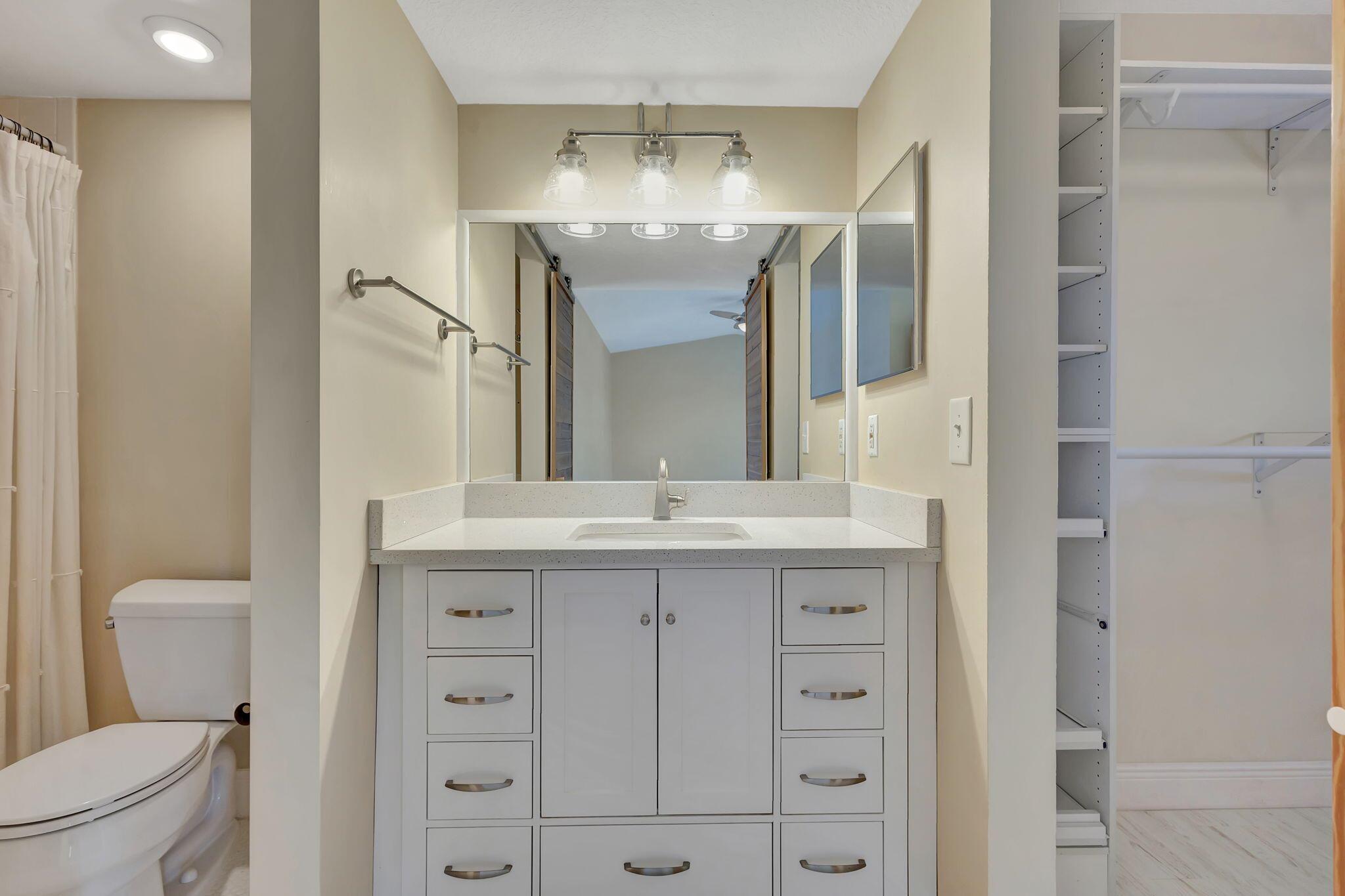 Discover this bright and inviting 2-bedroom, 2-bathroom condo, ideally located in the prestigious gated community of Bay Reach! The main level boasts a modern kitchen with stylish white cabinets, quartz countertops, and stainless steel appliances, which opens up to a bright dining area and spacious family room. This level also includes a guest bedroom and bathroom, along with a private balcony offering breathtaking Intracoastal views.Upstairs, the master suite is complete with a comfortable sitting area, a luxurious ensuite bathroom, and a large walk-in closet. The property is conveniently located close to the clubhouse and pool, providing beautiful views of the water.