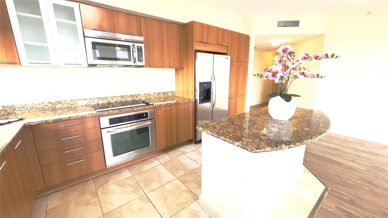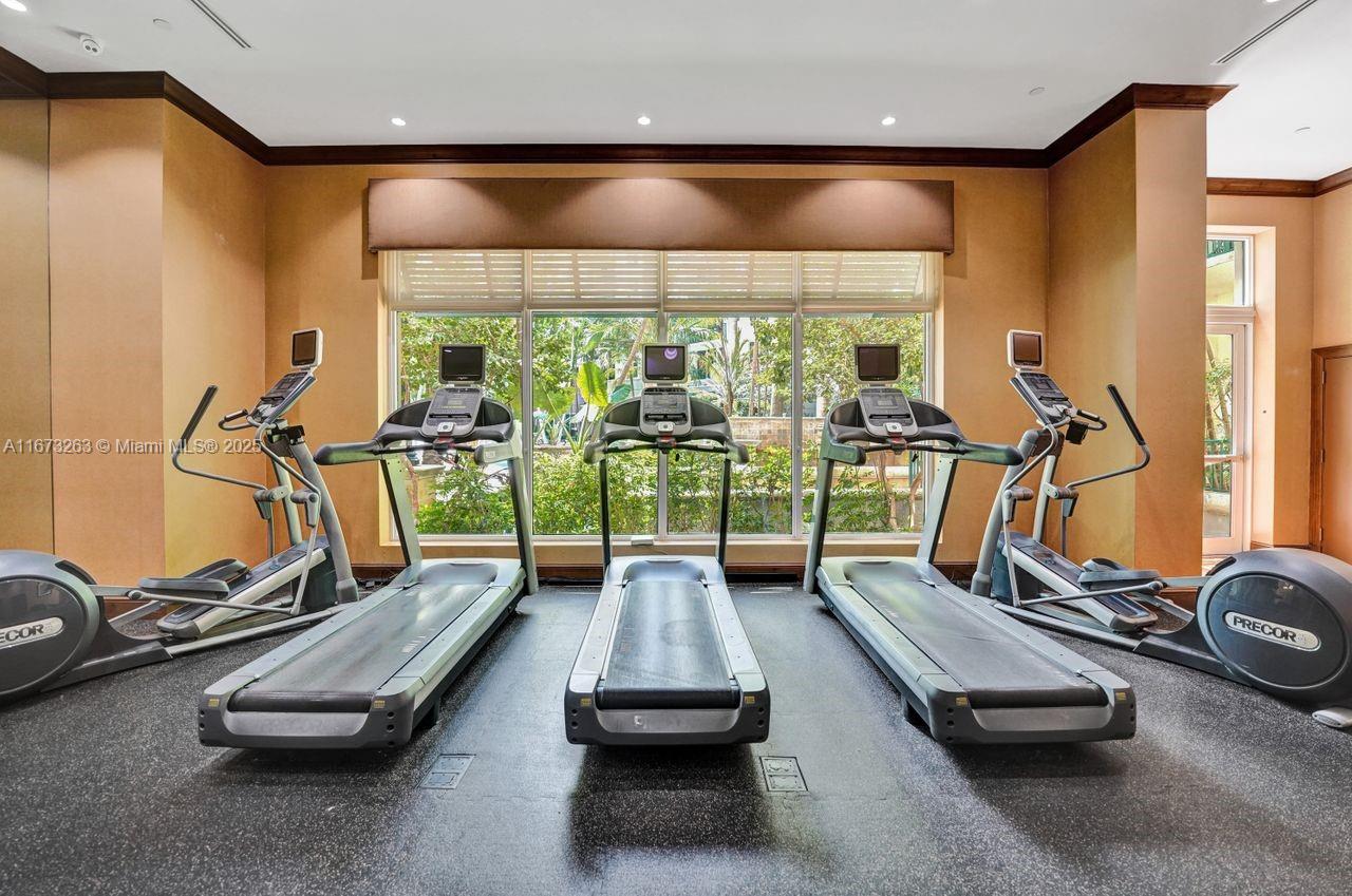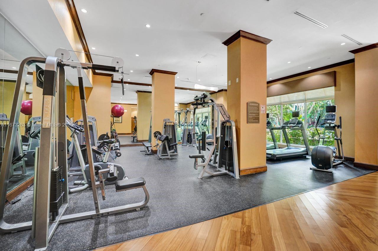 ELEGANT 2/2 Corner condo with elegantly appointed lobby, 2 parking spots, "NEW LAMINATE FLOORS THROUGHOUT". **Resort-style tropical pool, and Jacuzzi, 24-Hour manned security at front desk, high-tech security system, state-of-the-art fitness center, dry sauna, club room, four floors of assigned secure and covered parking Unit Features: Large CORNER Balcony, granite counter top in kitchen, stainless steel kitchen appliances, European cabinetry, marble shower and soaking bathtub in the bathroom, smart key fob entry into building washer and dryer in unit.