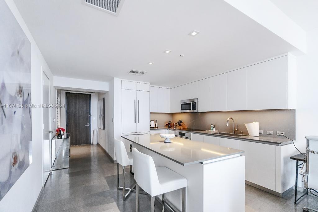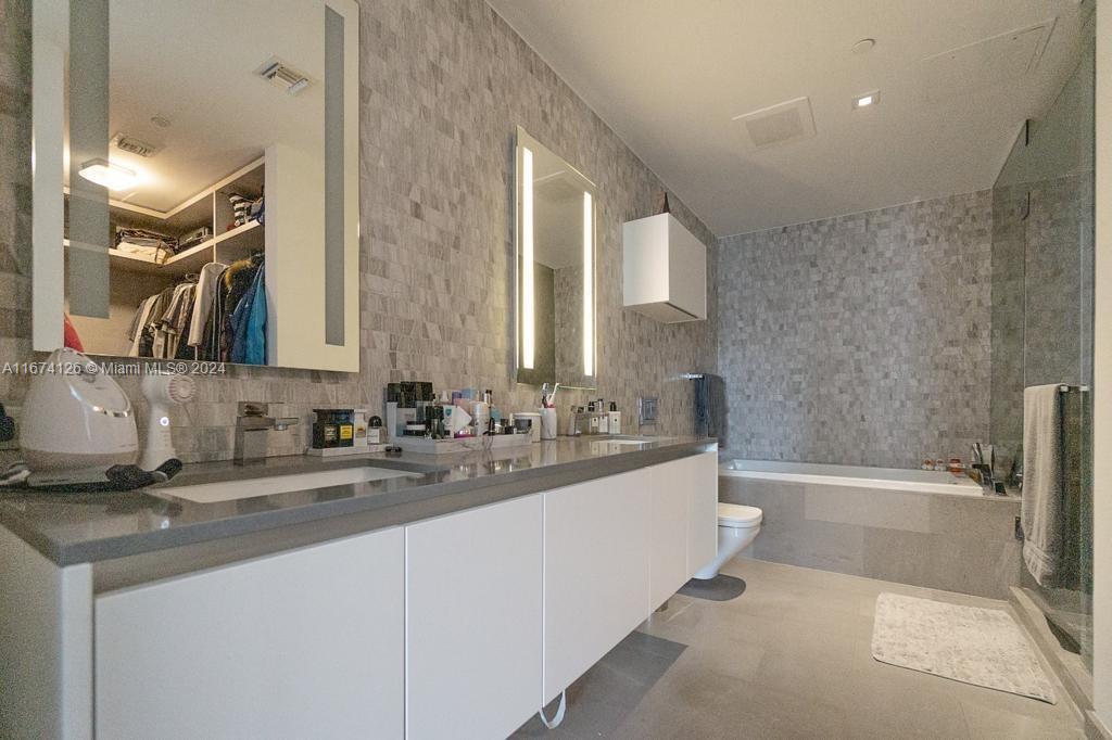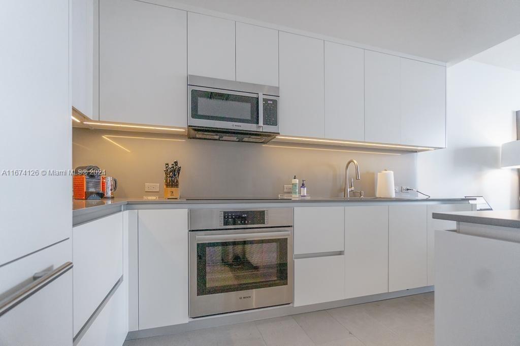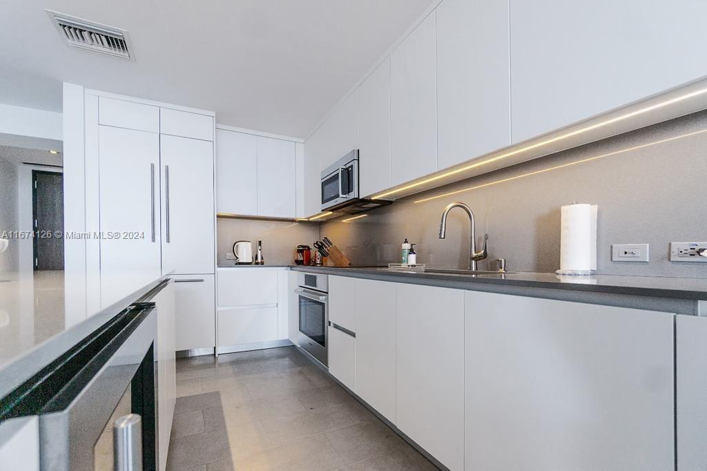 Enjoy living in exclusive Reach at Brickell City Center! Modern spacious 1 bedrooms 1.5 baths unit, large balcony with panoramic city skyline view, 11 feet ceilings, natural stone floors throughout, Italian kitchen cabinets, top of the line appliances, quartz countertops, wine bottle storage, elegant bathrooms with soaking tubs and frameless glass enclosed showers, impact doors and windows. 5 stars building amenities include full gym & SPA, heated pool, Jacuzzis, BBQ area, children play area, business center, 24-hours concierge, valet service.