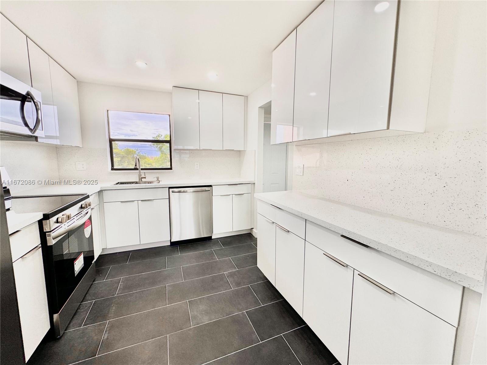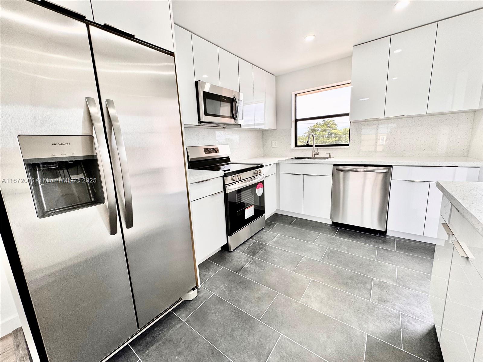 Beautifully renovated, 2-bed, 1.5-bath condo in Sunrise Lakes Phase IV offers stylish living in this desirable 55+ community. Located on the 4th floor with serene lake views, this Fannie Mae–approved unit features a sleek modern kitchen with quartz countertops, soft-close cabinetry, and brand-new stainless steel appliances & WASHER/DRYER COMBO. Freshly painted with smooth ceilings (no popcorn!), upgraded LED lighting (hidden wires), and a mix of LVP and tile flooring throughout. Relax on your private balcony or enjoy resort-style amenities—heated pools, sauna, golf, tennis, pickleball, racquetball, gym, billiards, live shows, and endless social activities. HOA includes water, cable, and Wi-Fi. Close to Sawgrass Mall and BB&T Center! Easy to show! New roof & elevators=40yrInspection Passed!